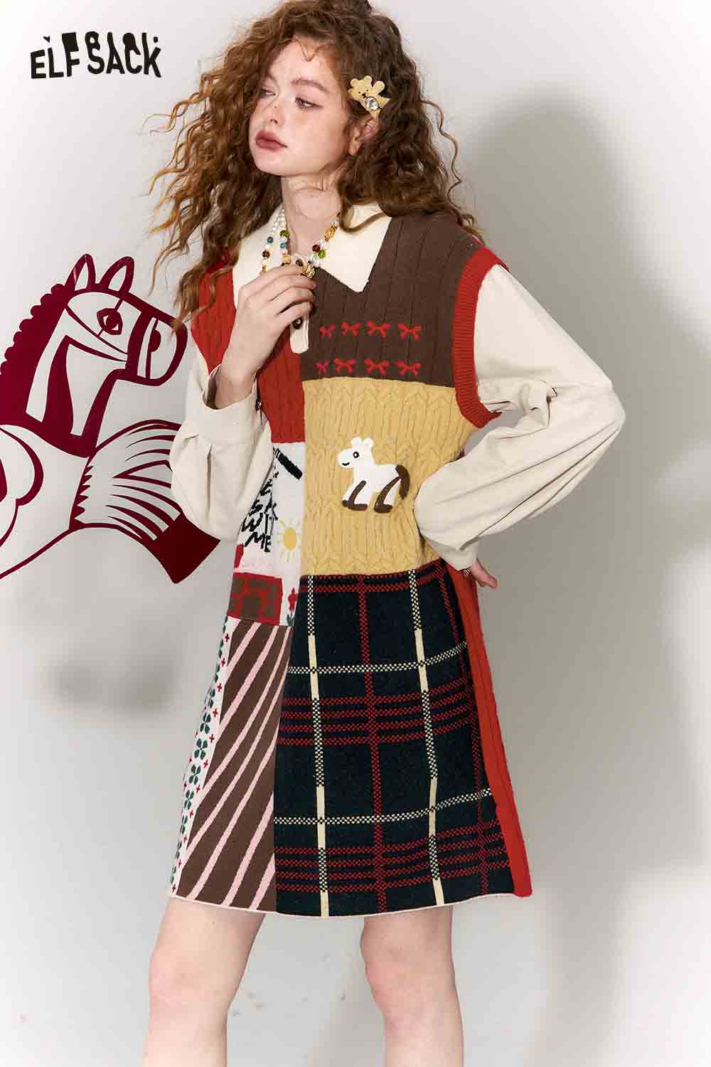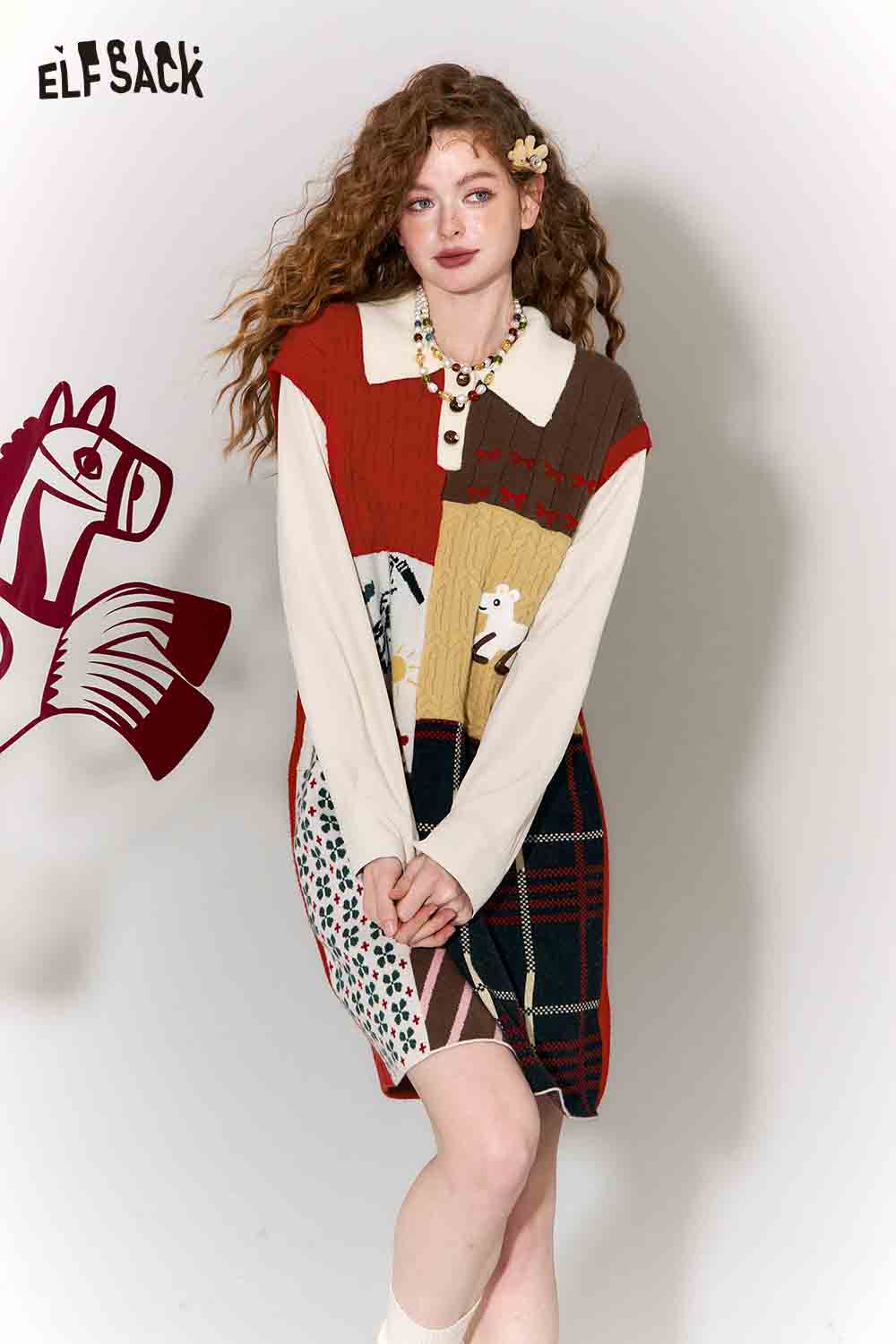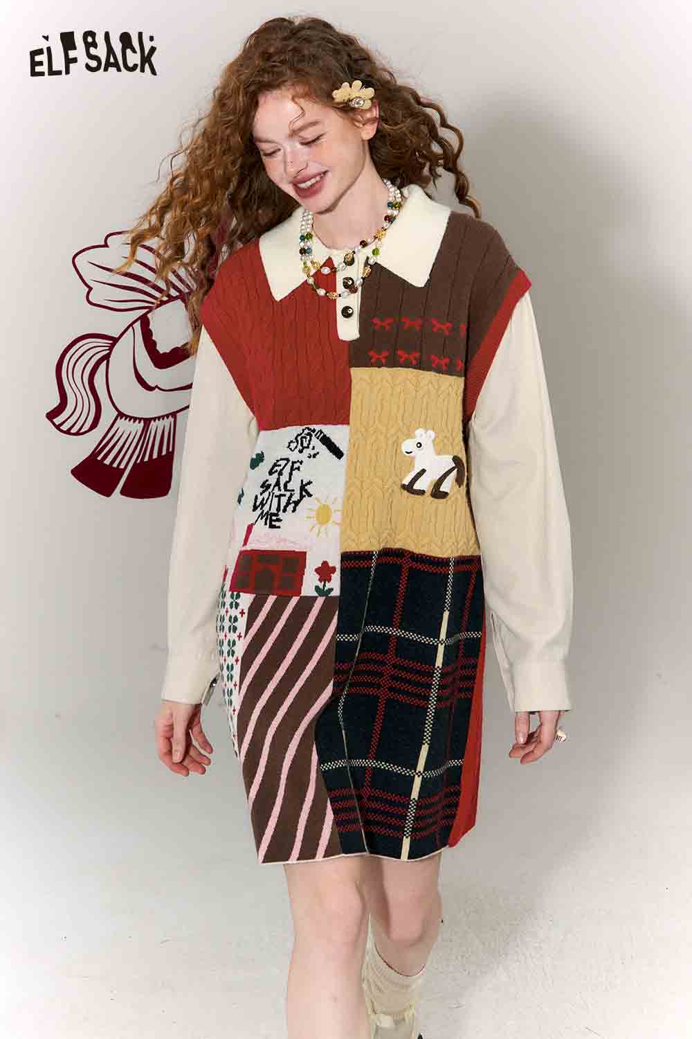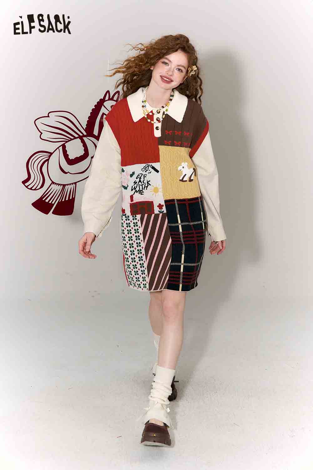Casual Preppy Polo Collar Loose Patchwork Color Block Dress