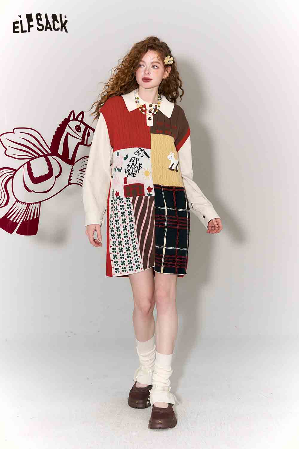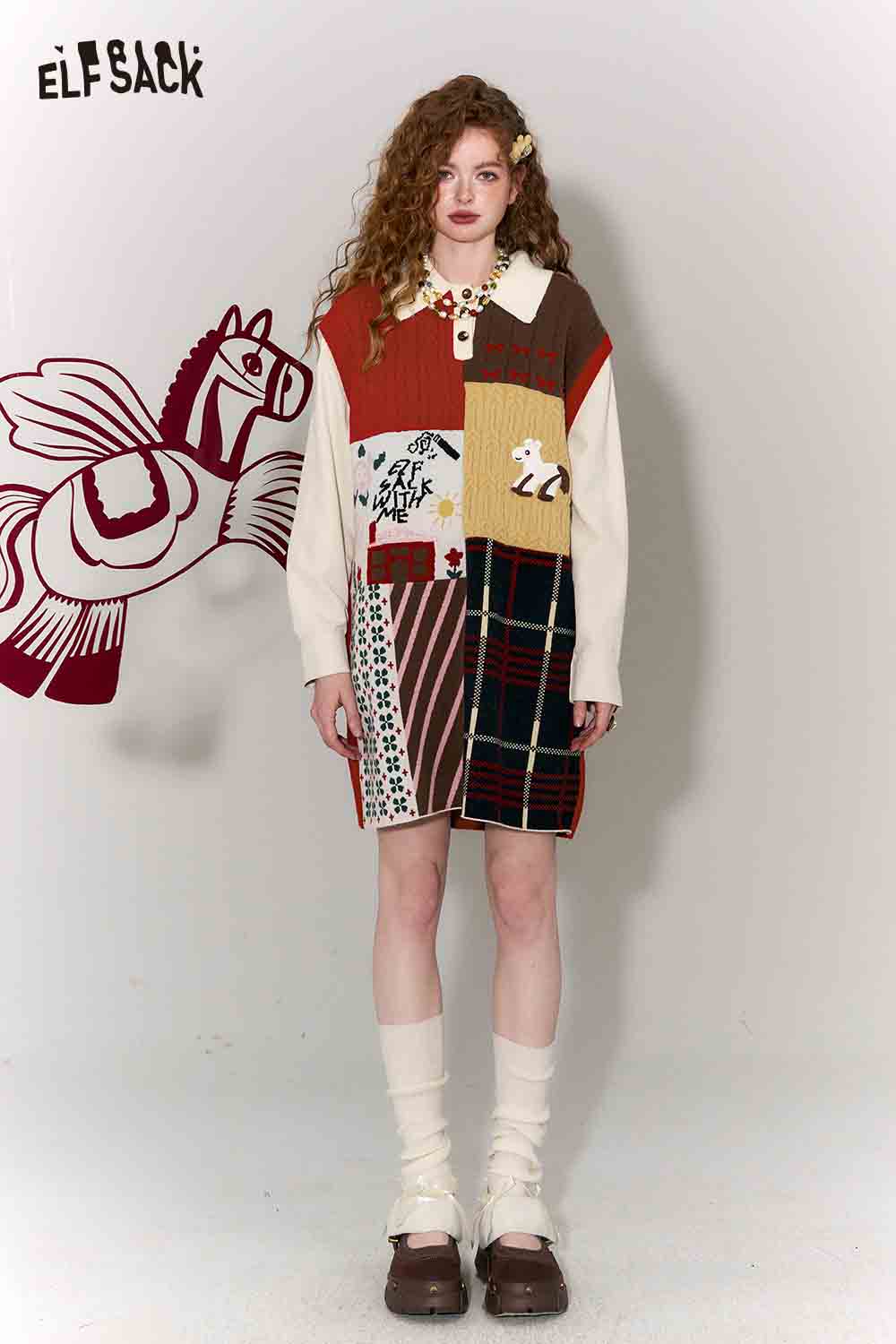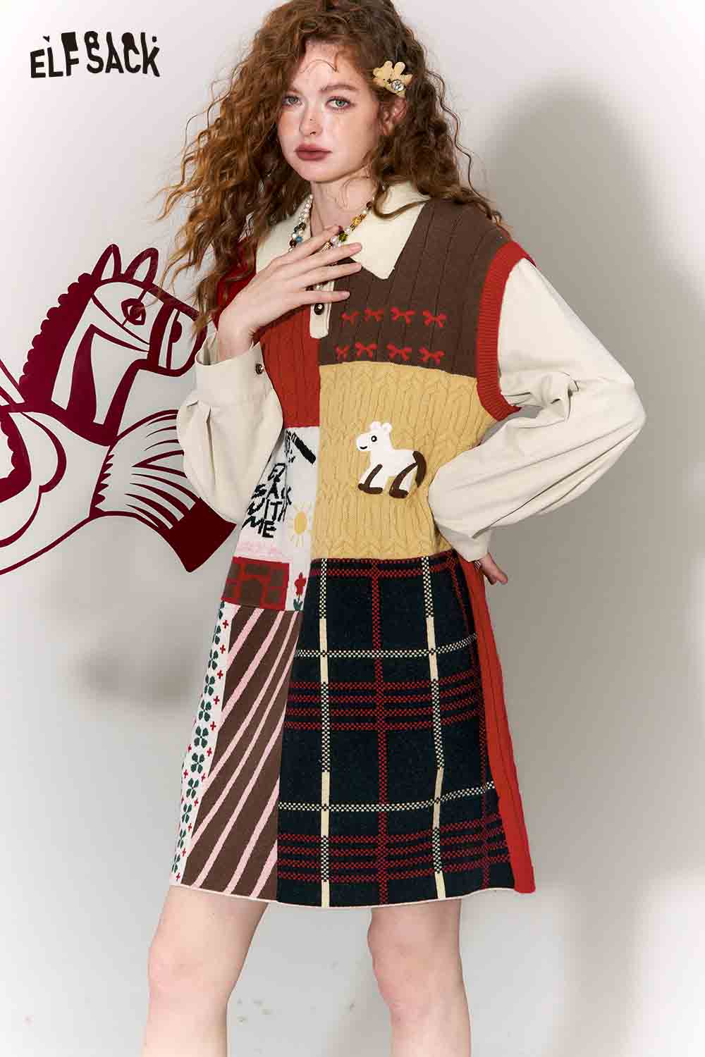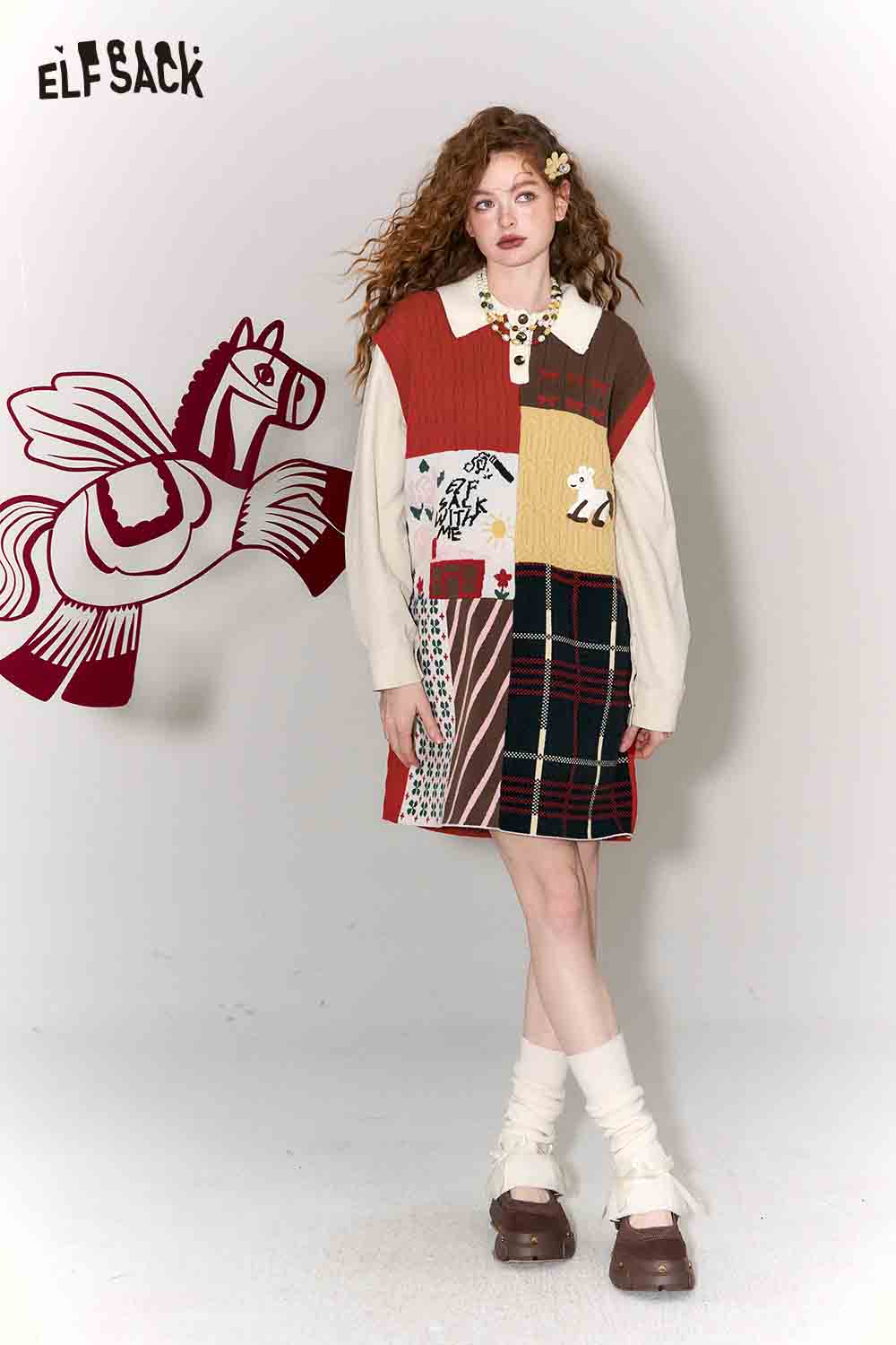 Casual Preppy Polo Collar Loose Patchwork Color Block Dress