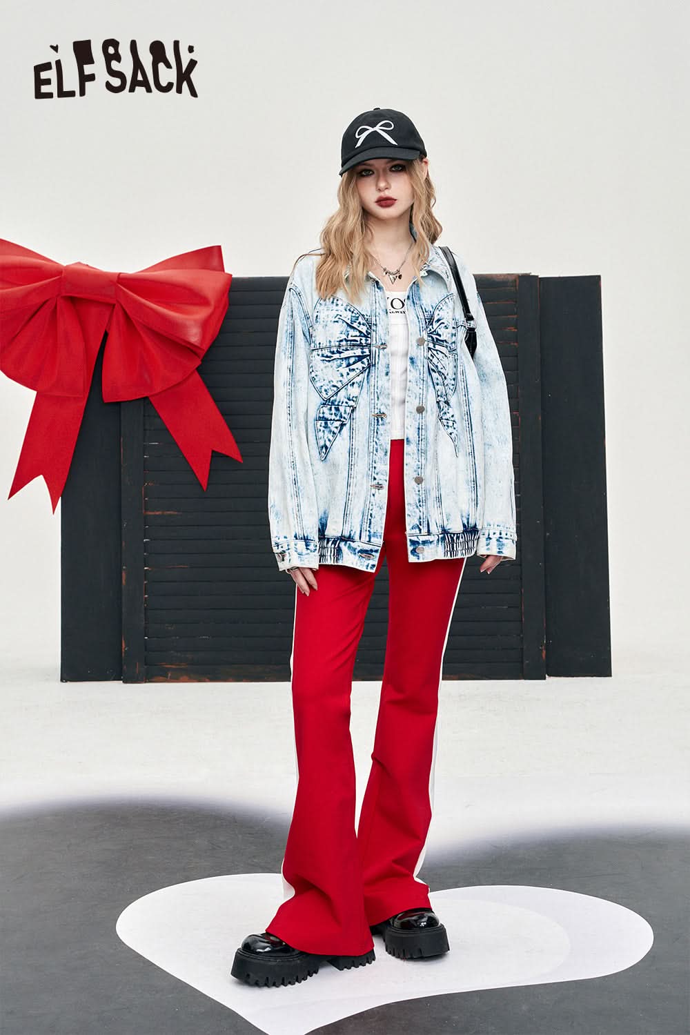 color block sports women's pants spring wide-leg casual cool bow alphabet printing pants