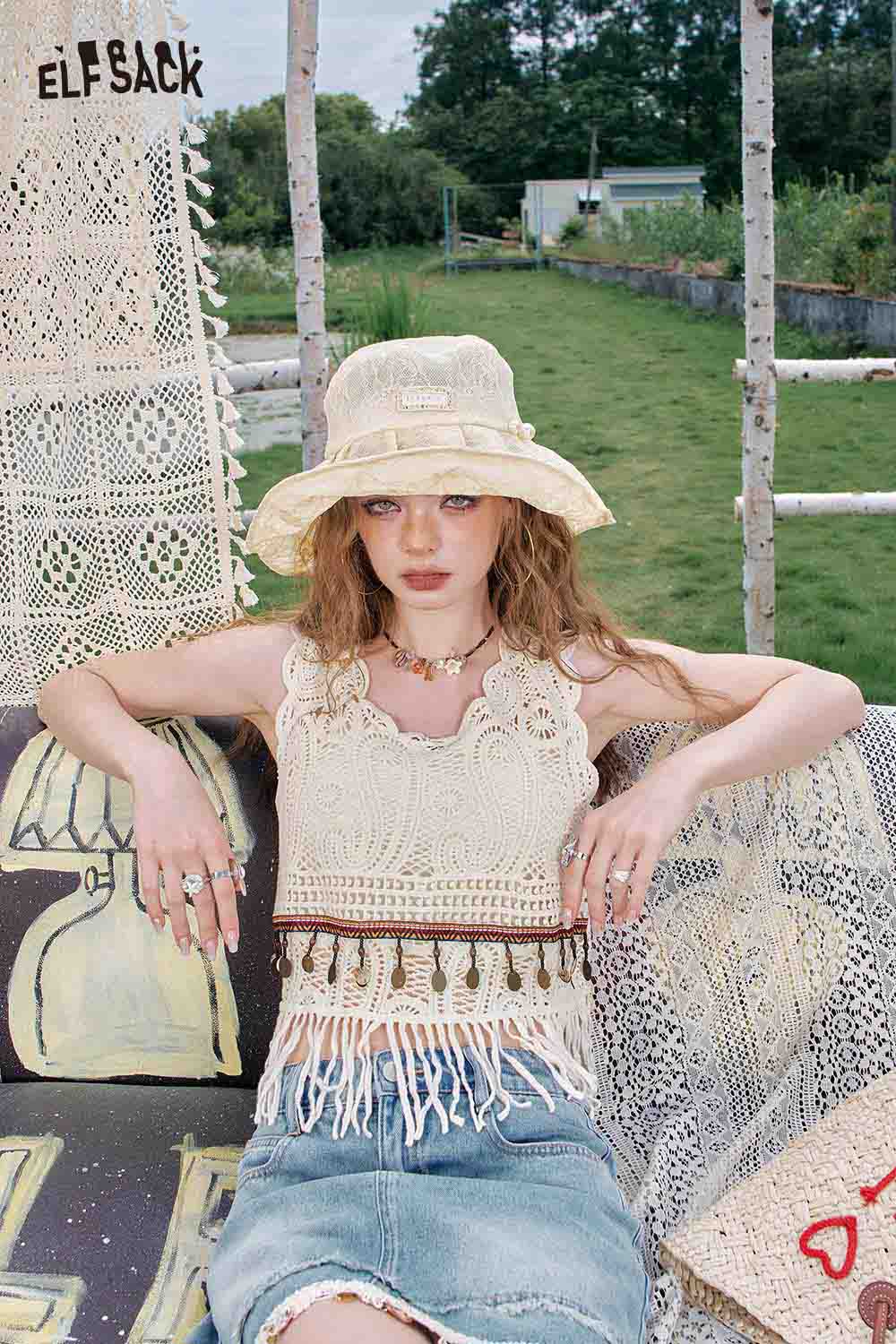 French Lace Fisherman Hat Wide Brim Sun Protection Summer