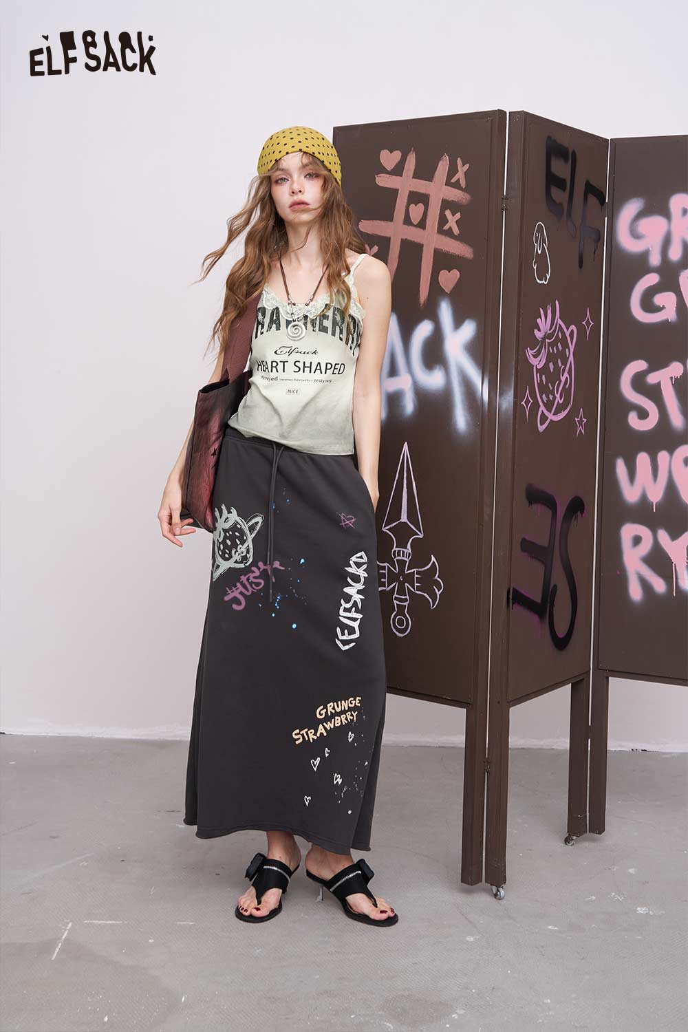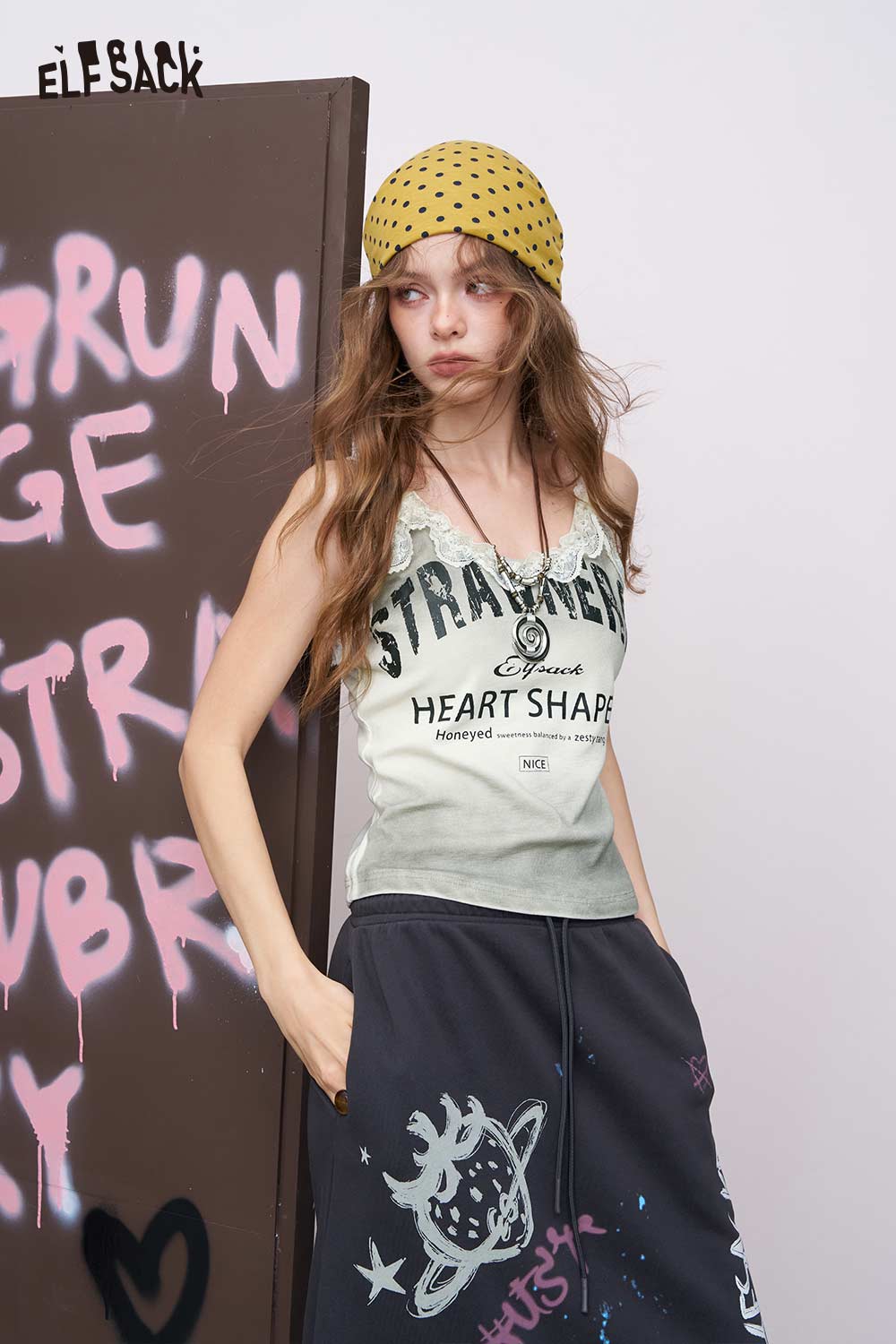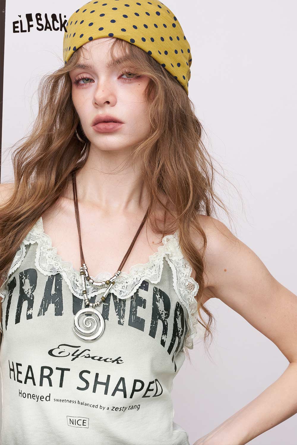 Fit Lace Patchwork Letter Printed Fit V-Neck Sleeveless Camisole