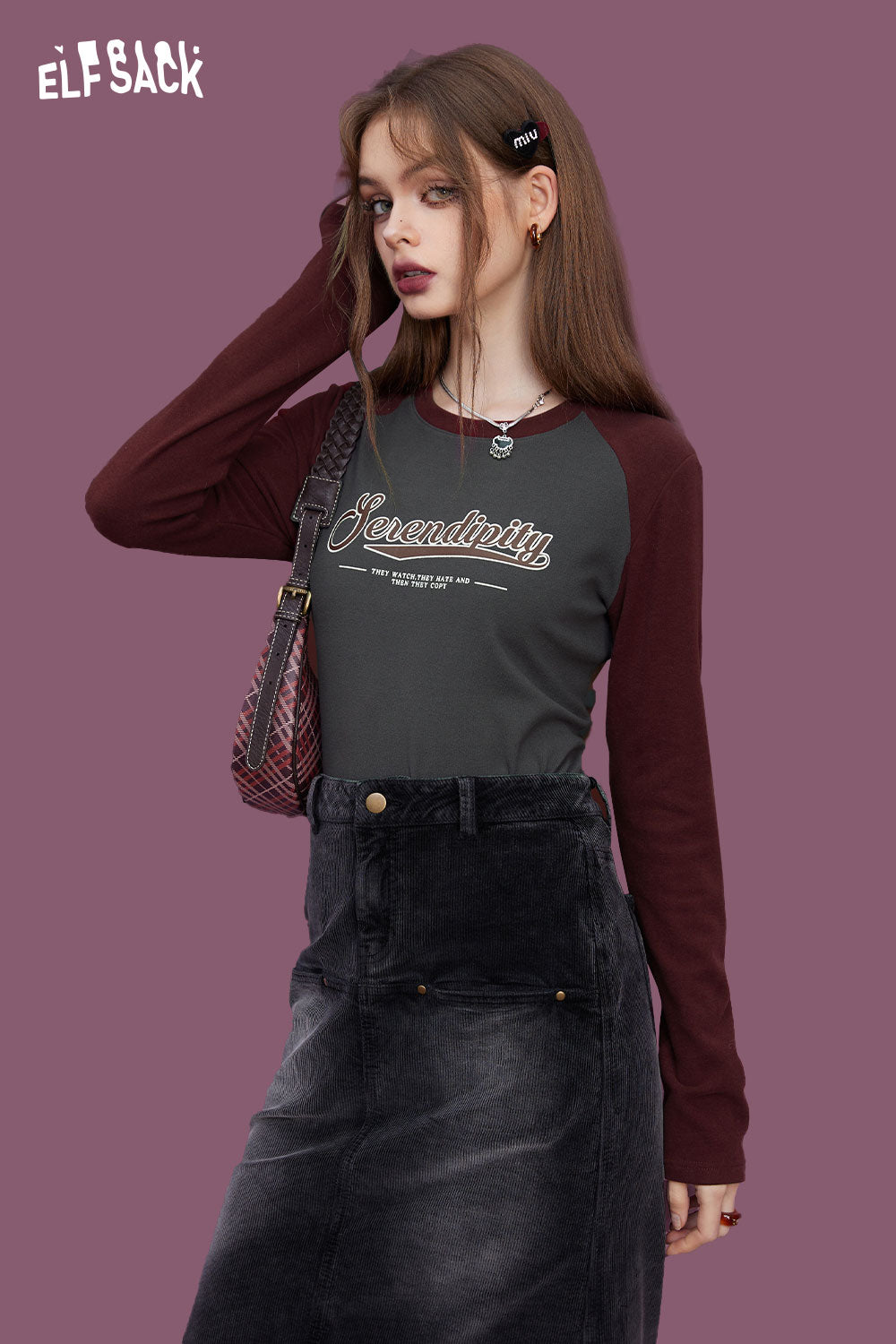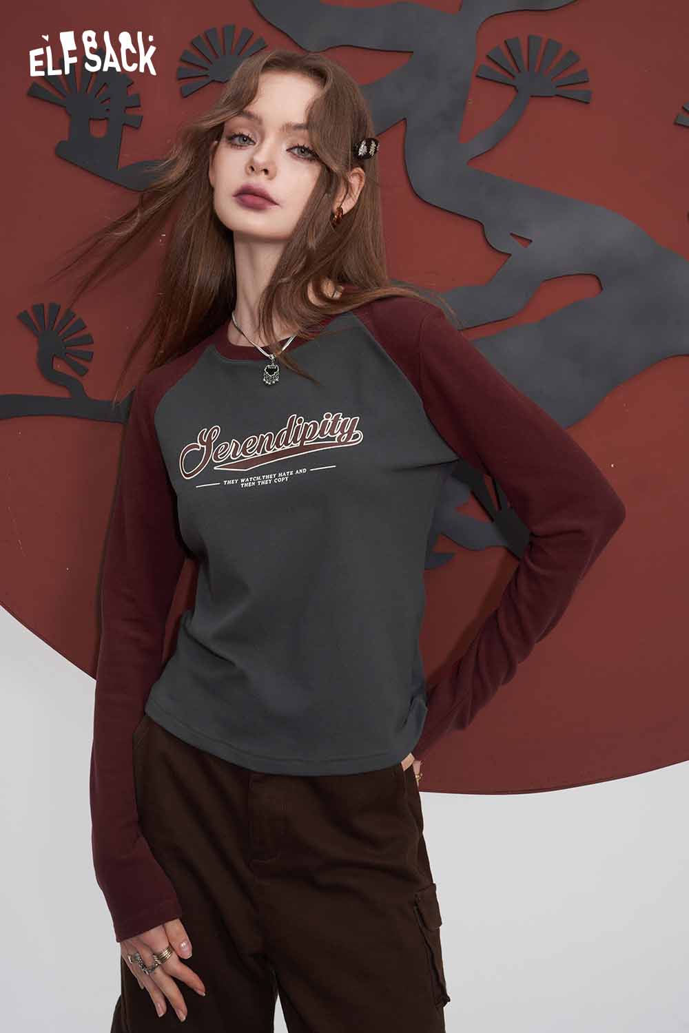 Minimalist Color Block Patchwork Raglan Long Sleeve Tshirt