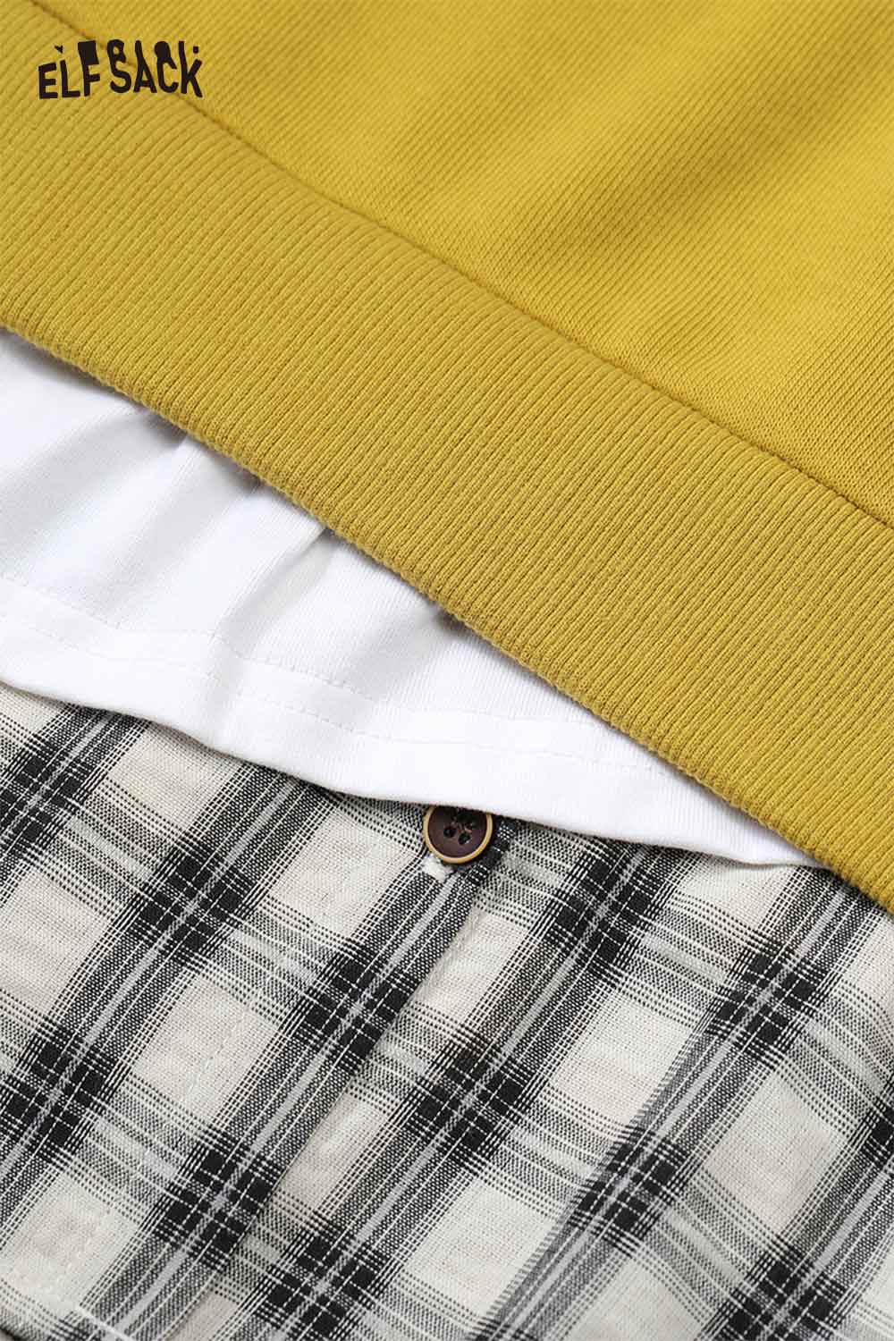 ELFSACK oversized plaid hoodie with a yellow top layer and checkered fabric underneath for a stylish look