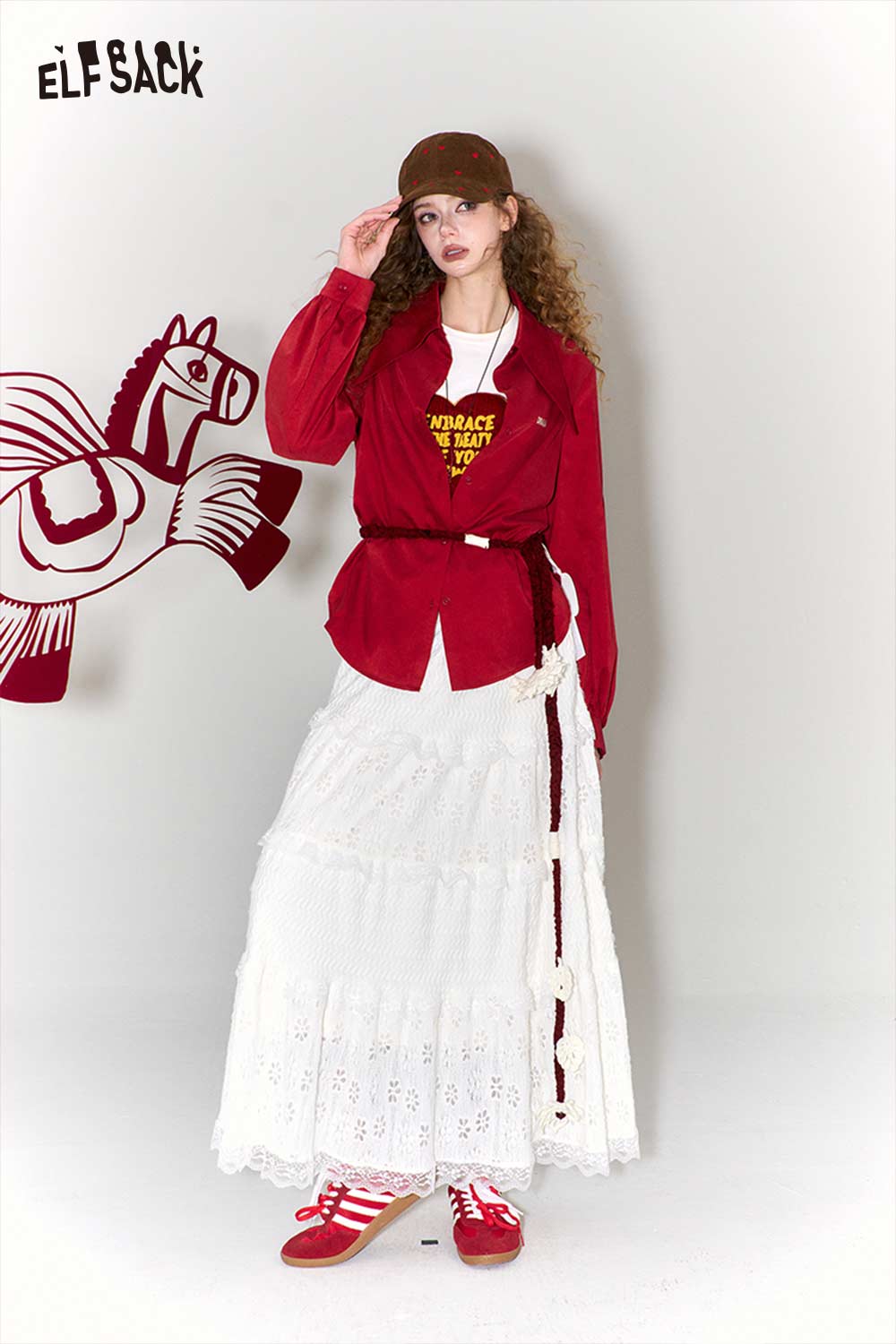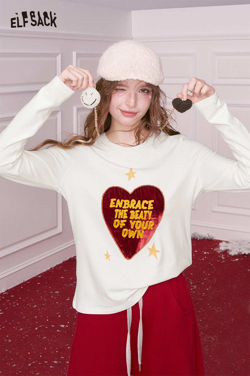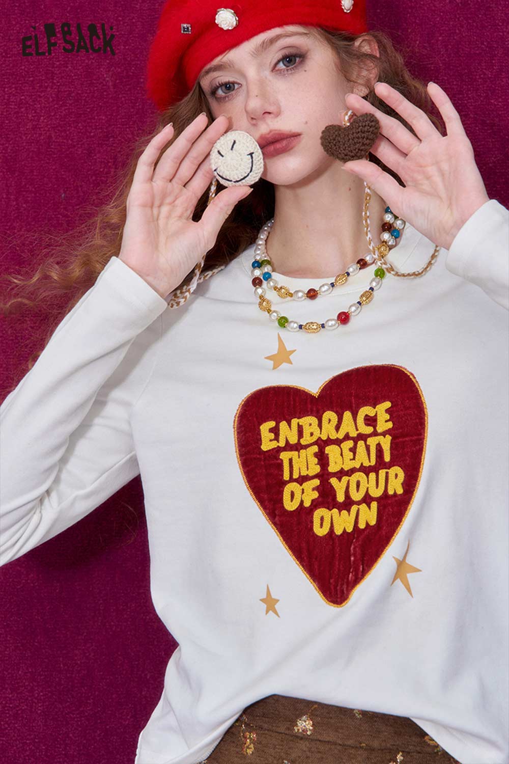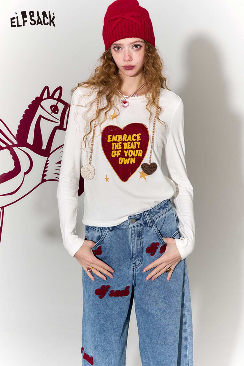 Sweet Cool Heart Print Chain Charm Long Sleeve T-Shirt