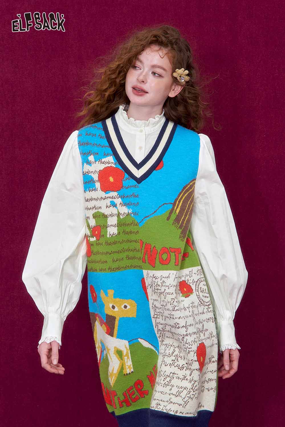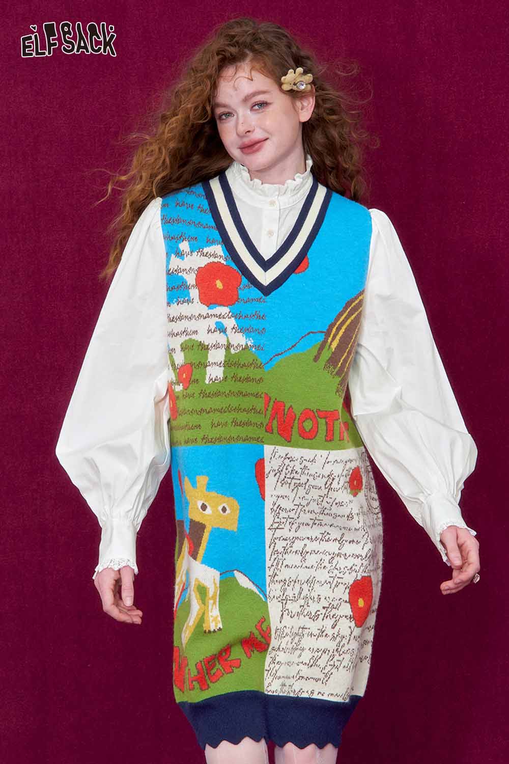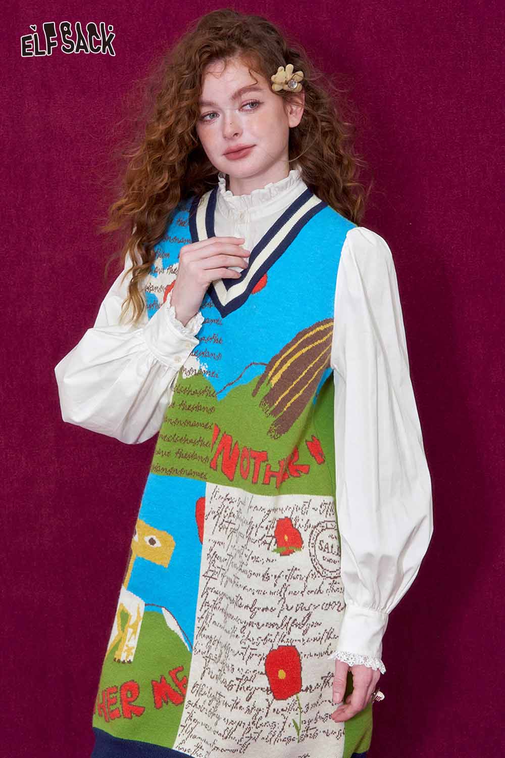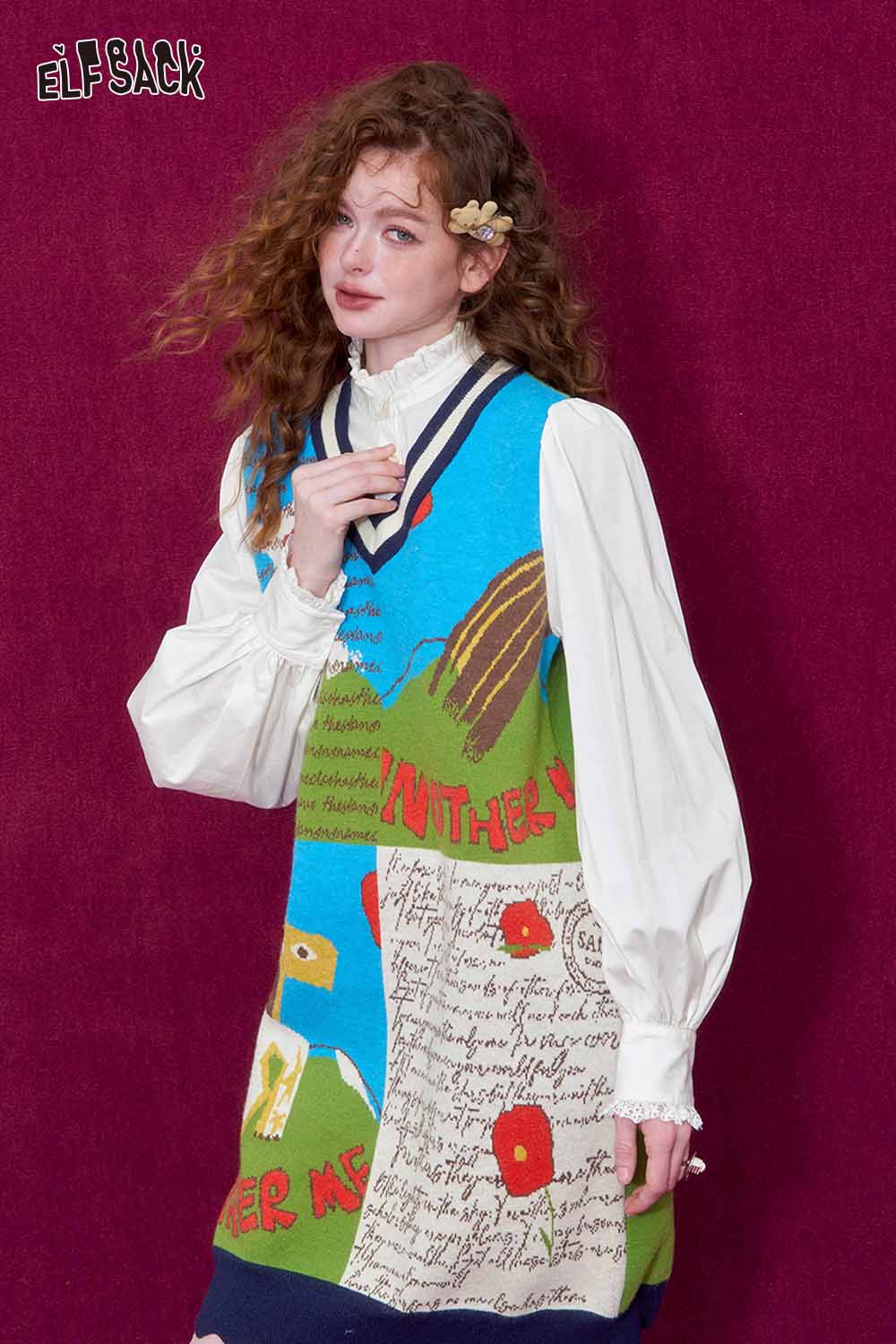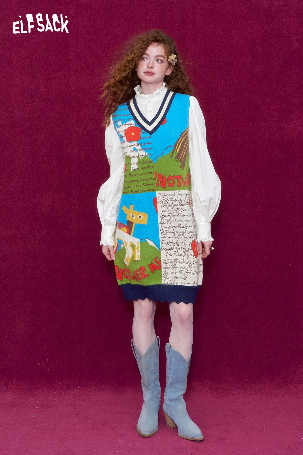 Sweet Fake Two Piece Ruffle Collar Lace Cuff Dress