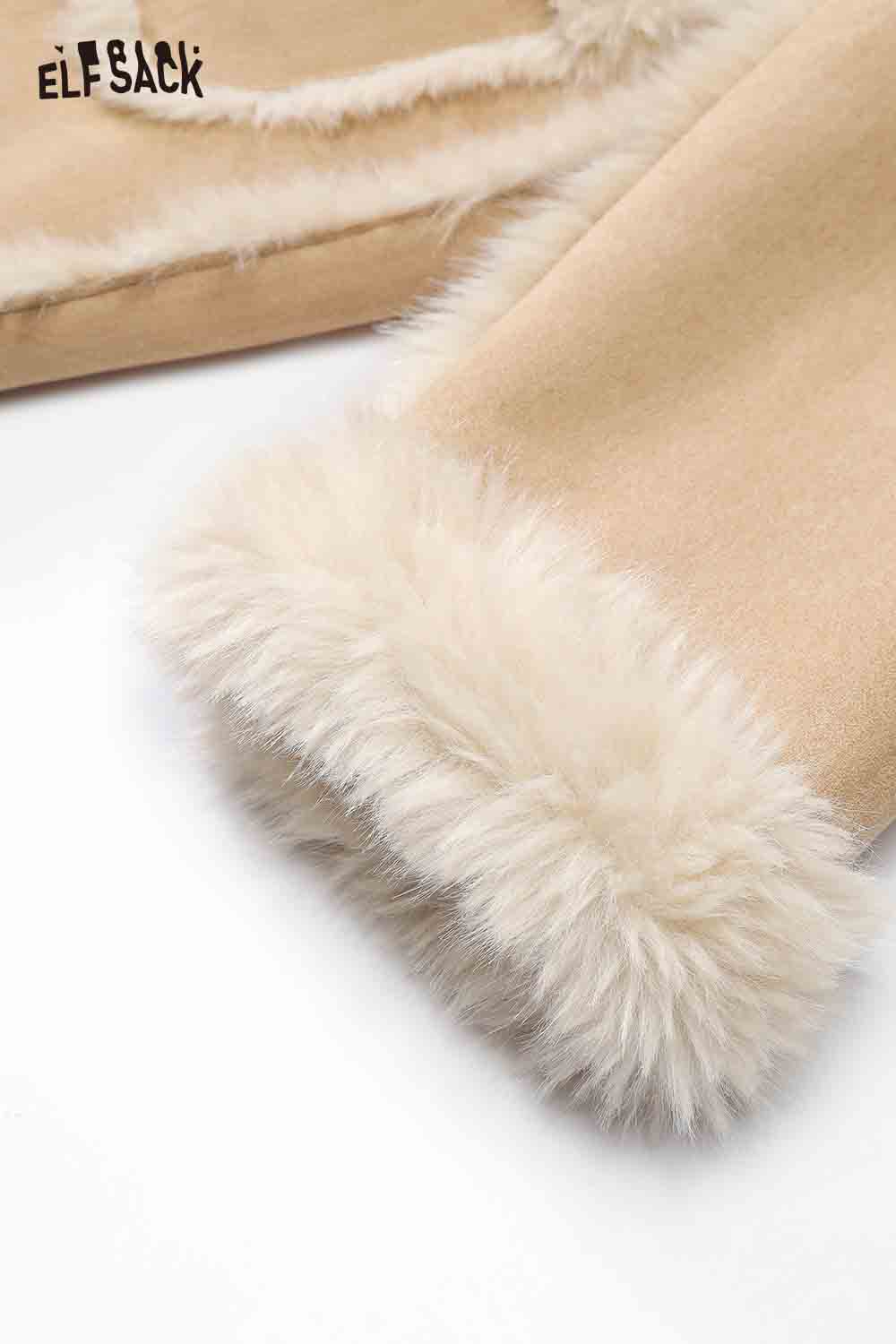 Sweet Solid Bow Plush Lining Long Wool Coat