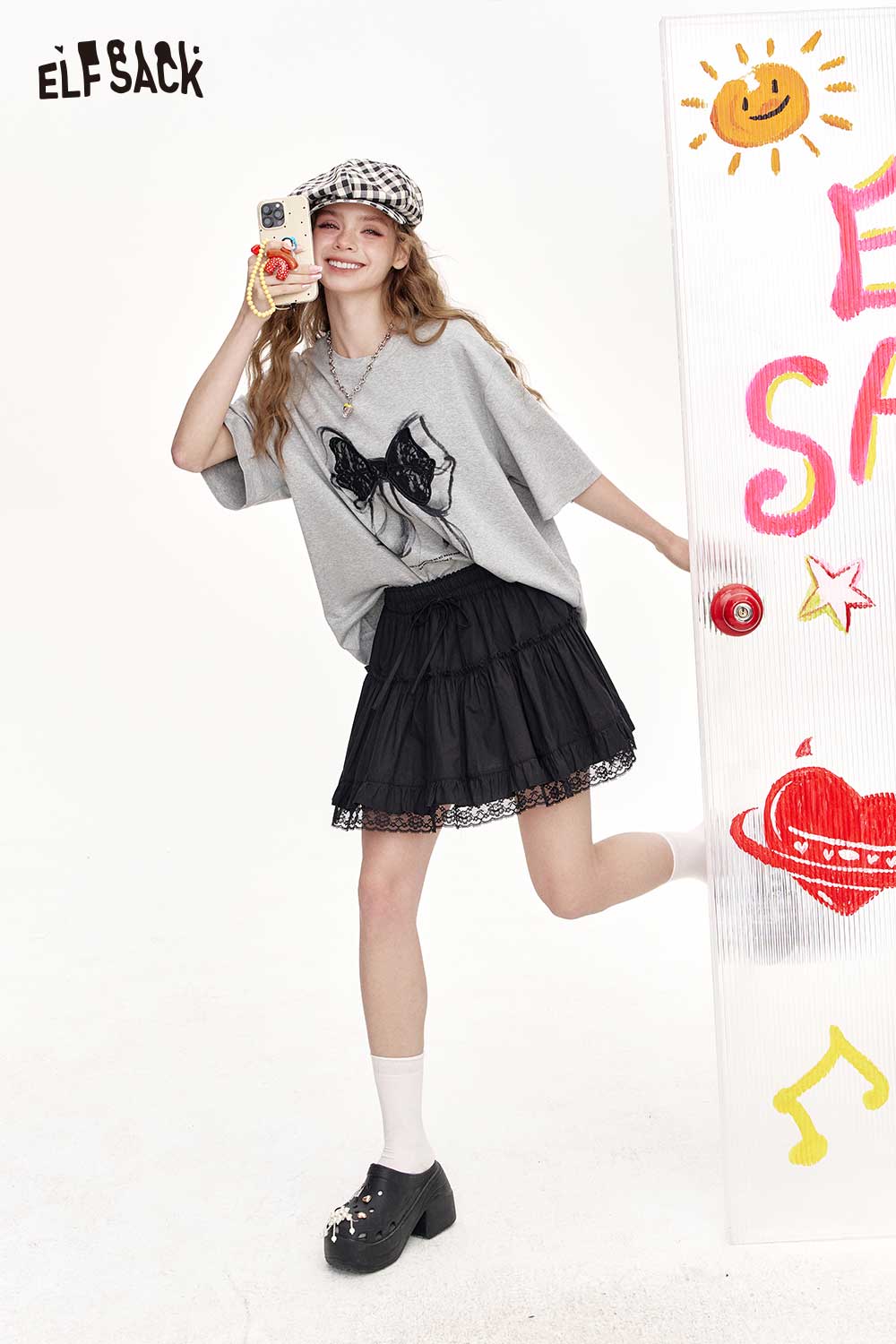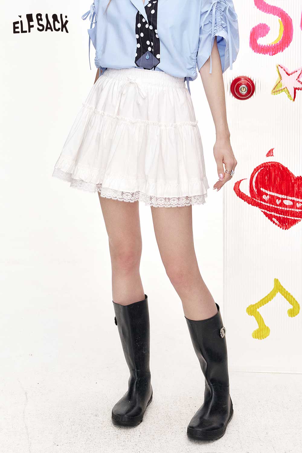 Sweet Tiered Skirt Lace Puff A Line Short Half Skirt