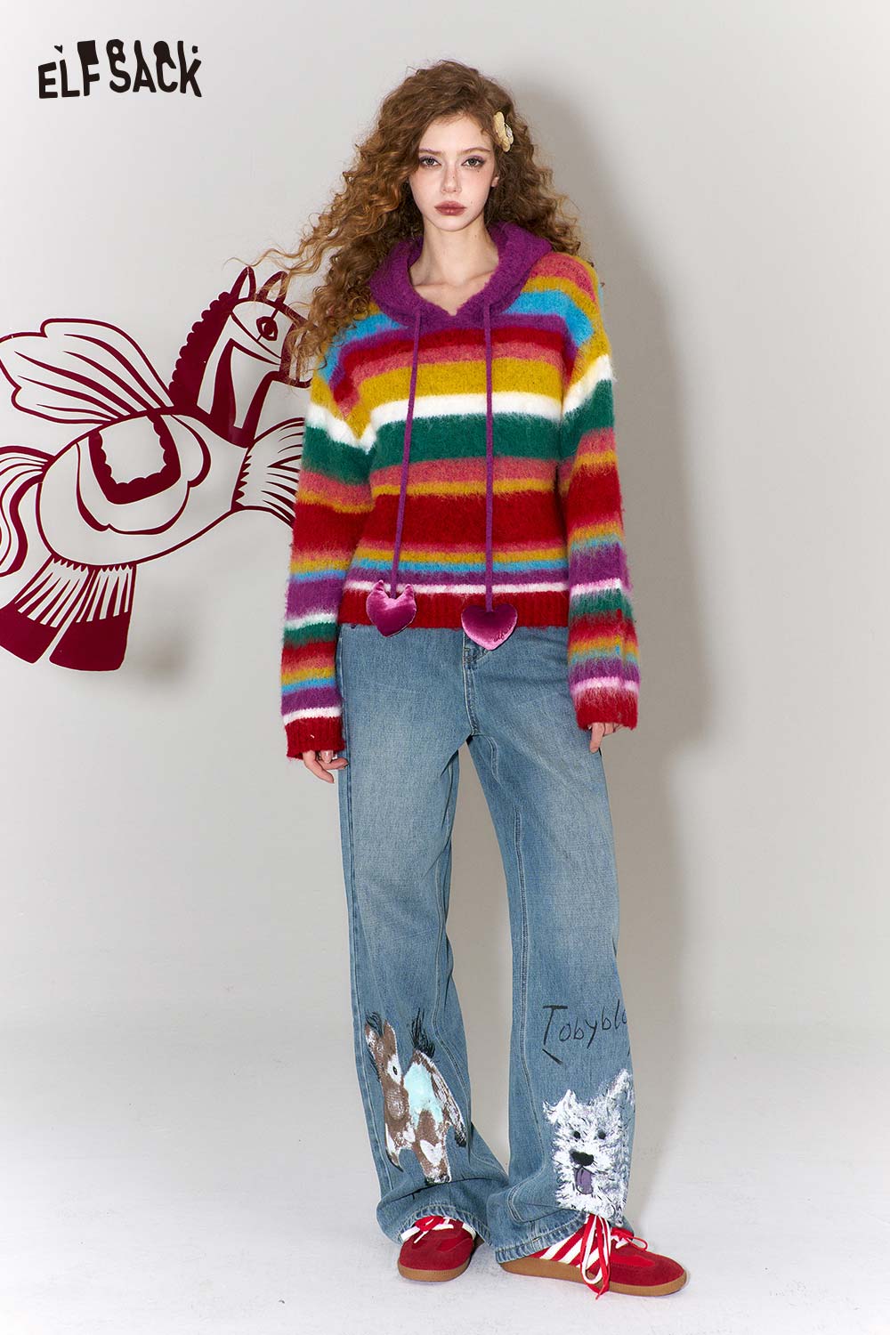 Trendy Graffiti Animal Print Wide Leg Jeans