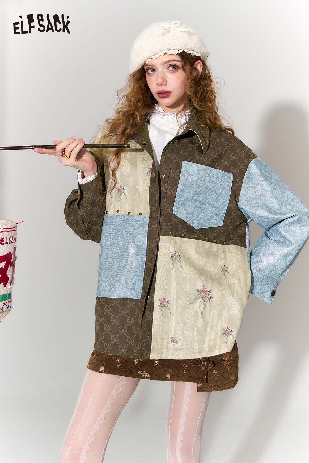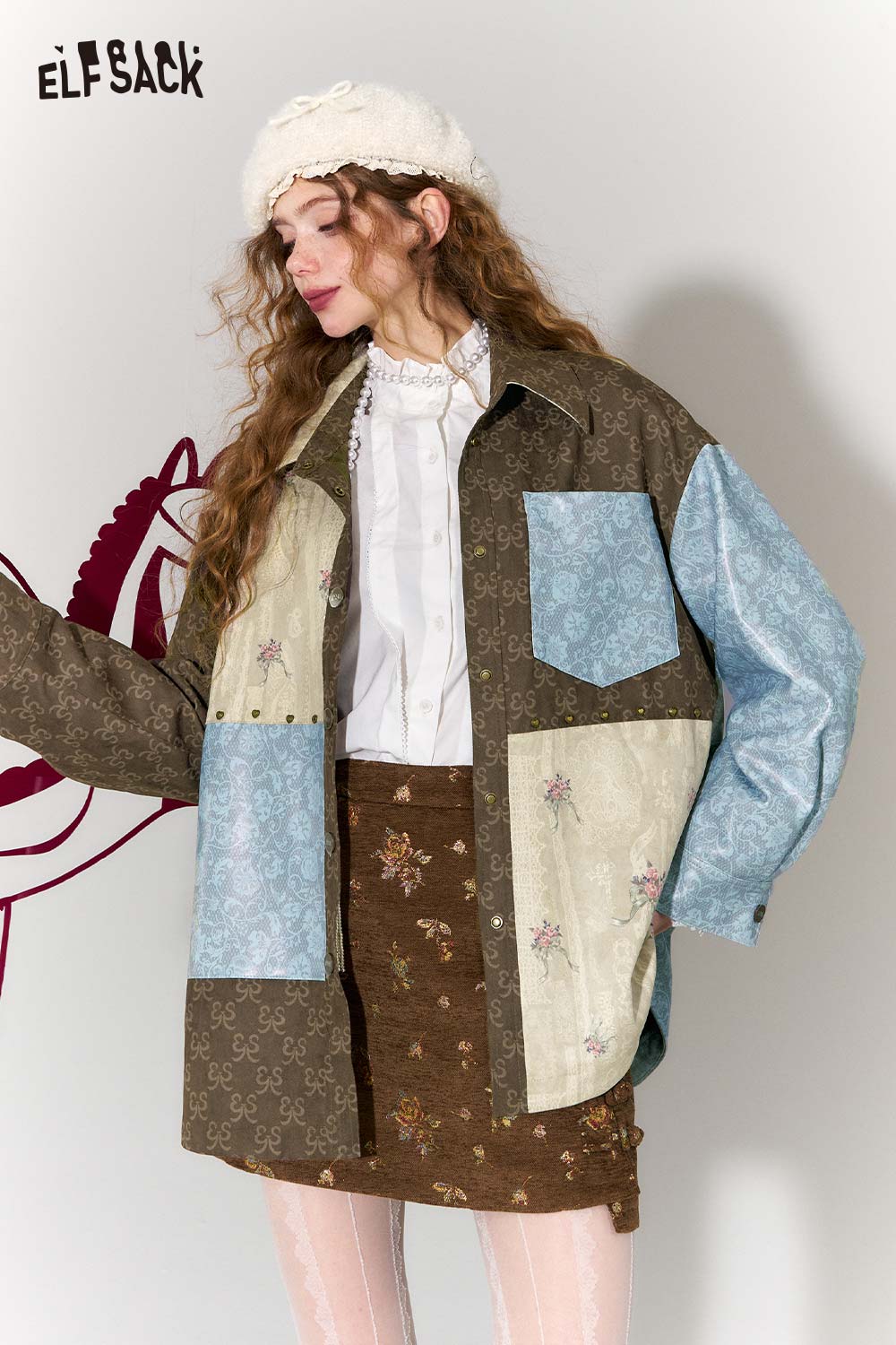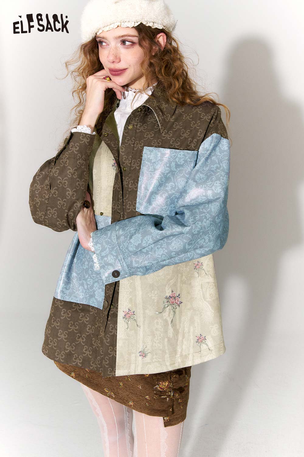 Vintage Collage Floral Jacquard Lapel Cropped Jacket