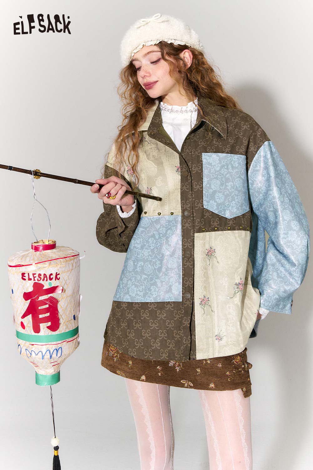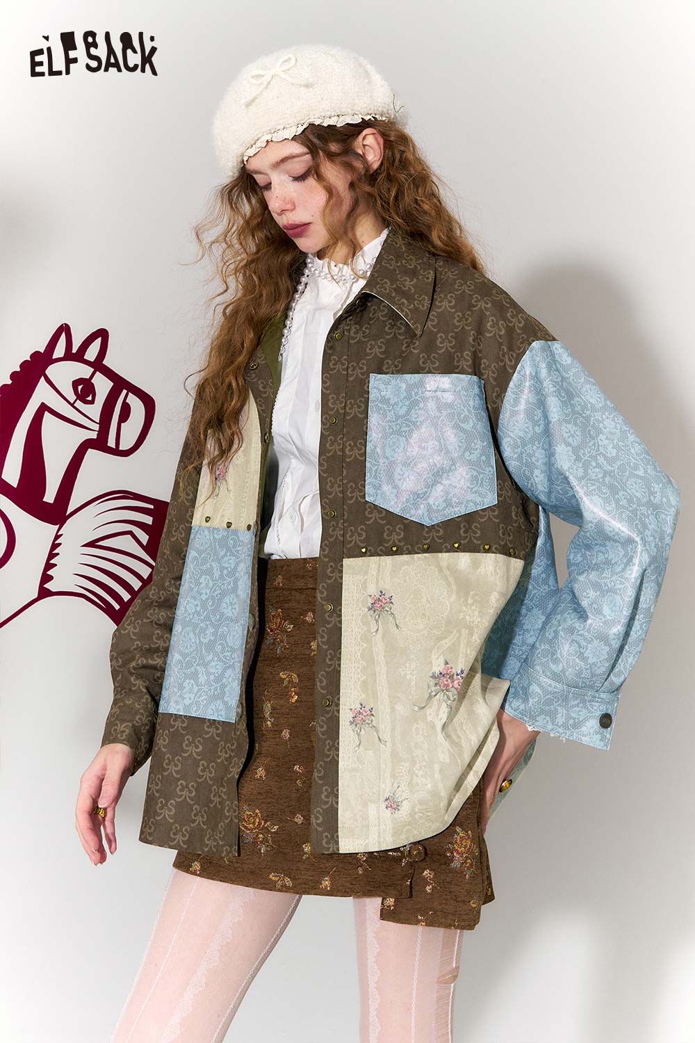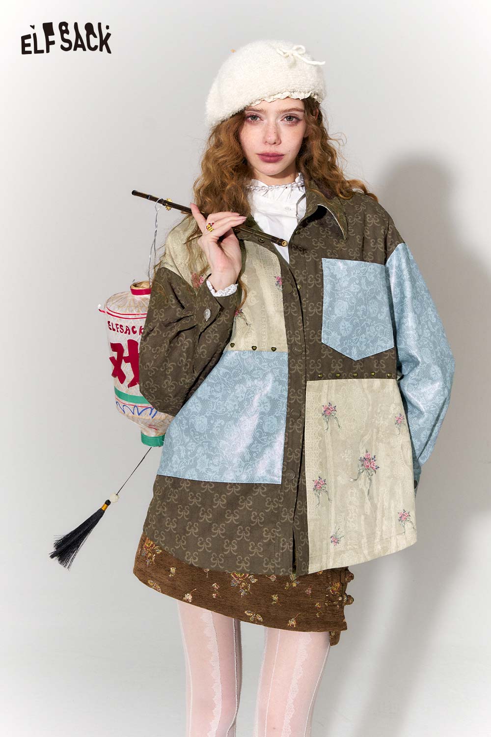 Vintage Collage Floral Jacquard Lapel Cropped Jacket
