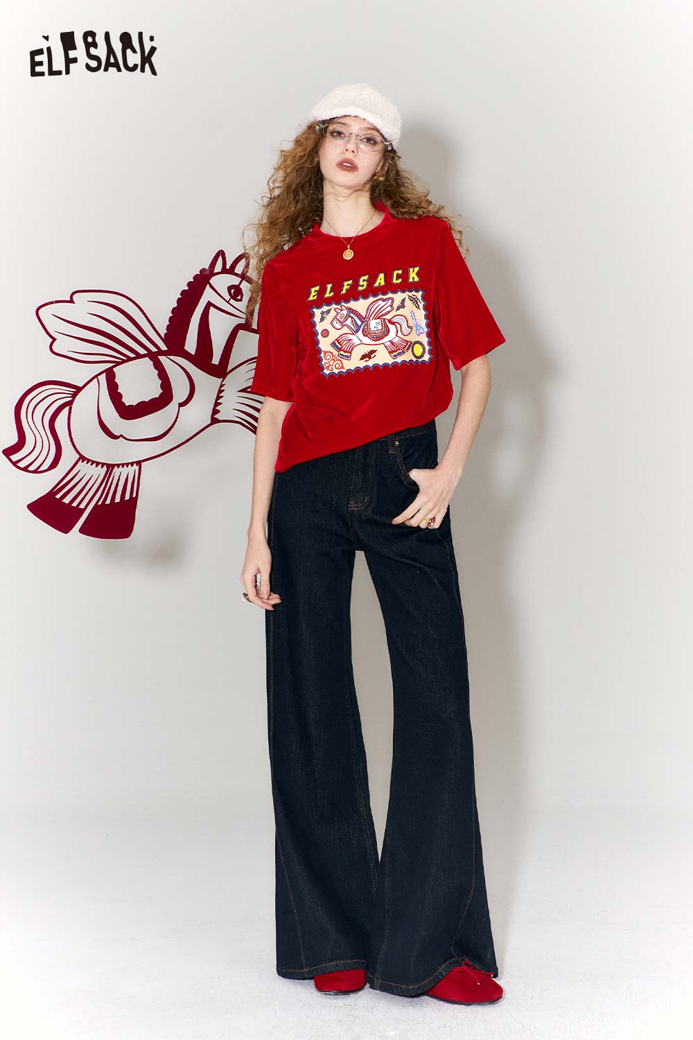 Whimsical Flying Horse Cloud Pattern Print Short Sleeve T-Shirt