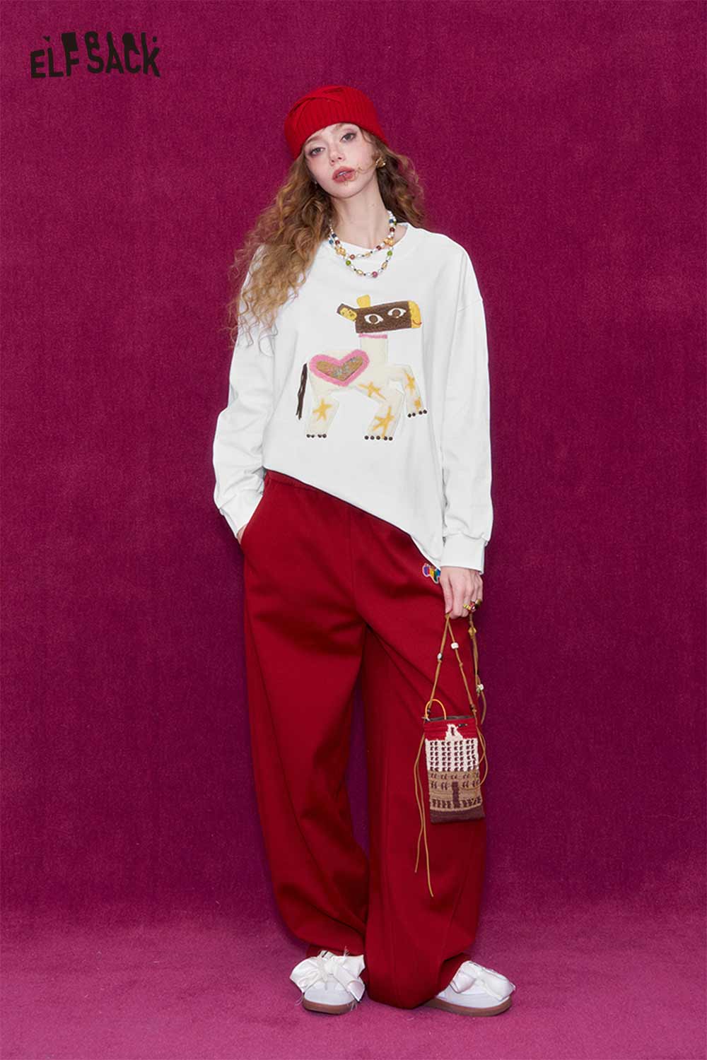 Whimsical Pony Relaxed Fit Round Neck Long Sleeve Sweatshirt