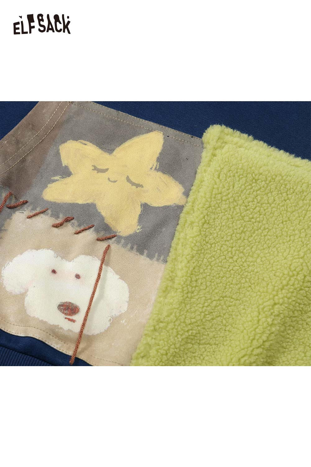 ELFSACK women's color block hooded sweatshirt with unique patch design and cozy fit for winter style