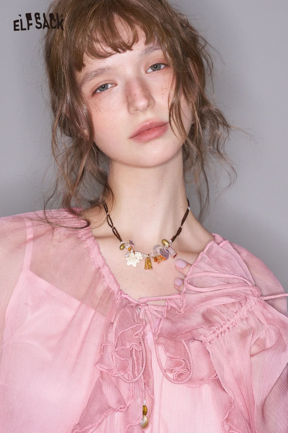 Y2K Ruffle Pink Thin Dress Suspenders Two-piece Set Female