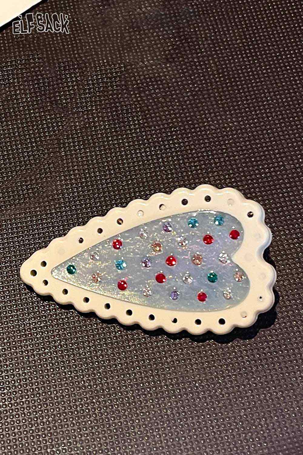 Acrylic Crystal Embellished Cookie Design Heart Shaped Hairpin