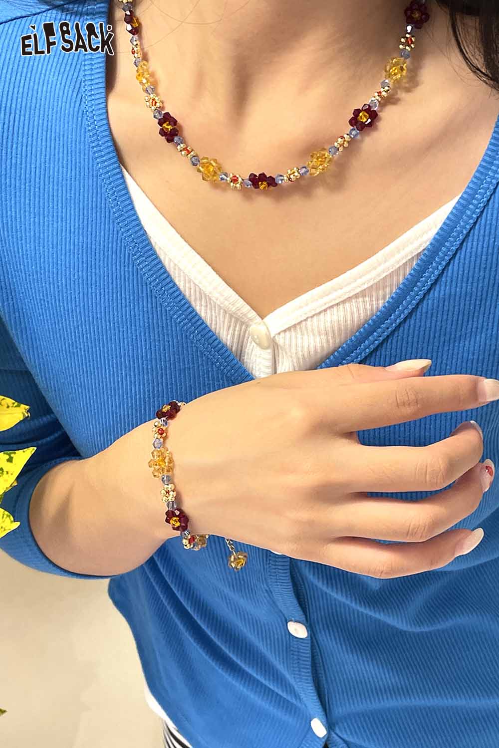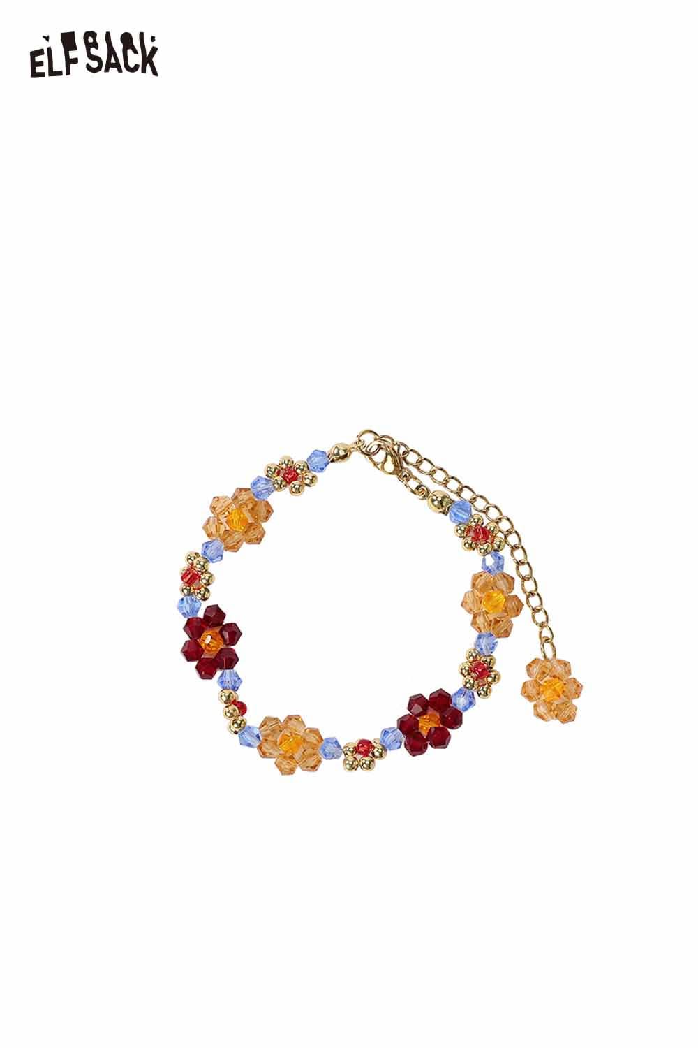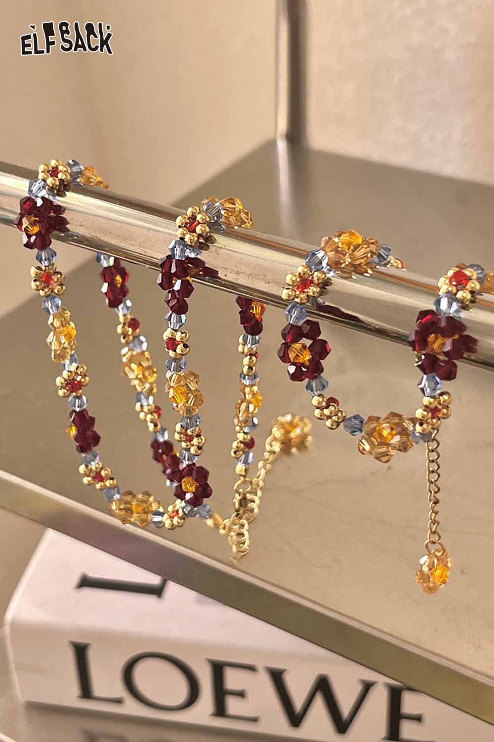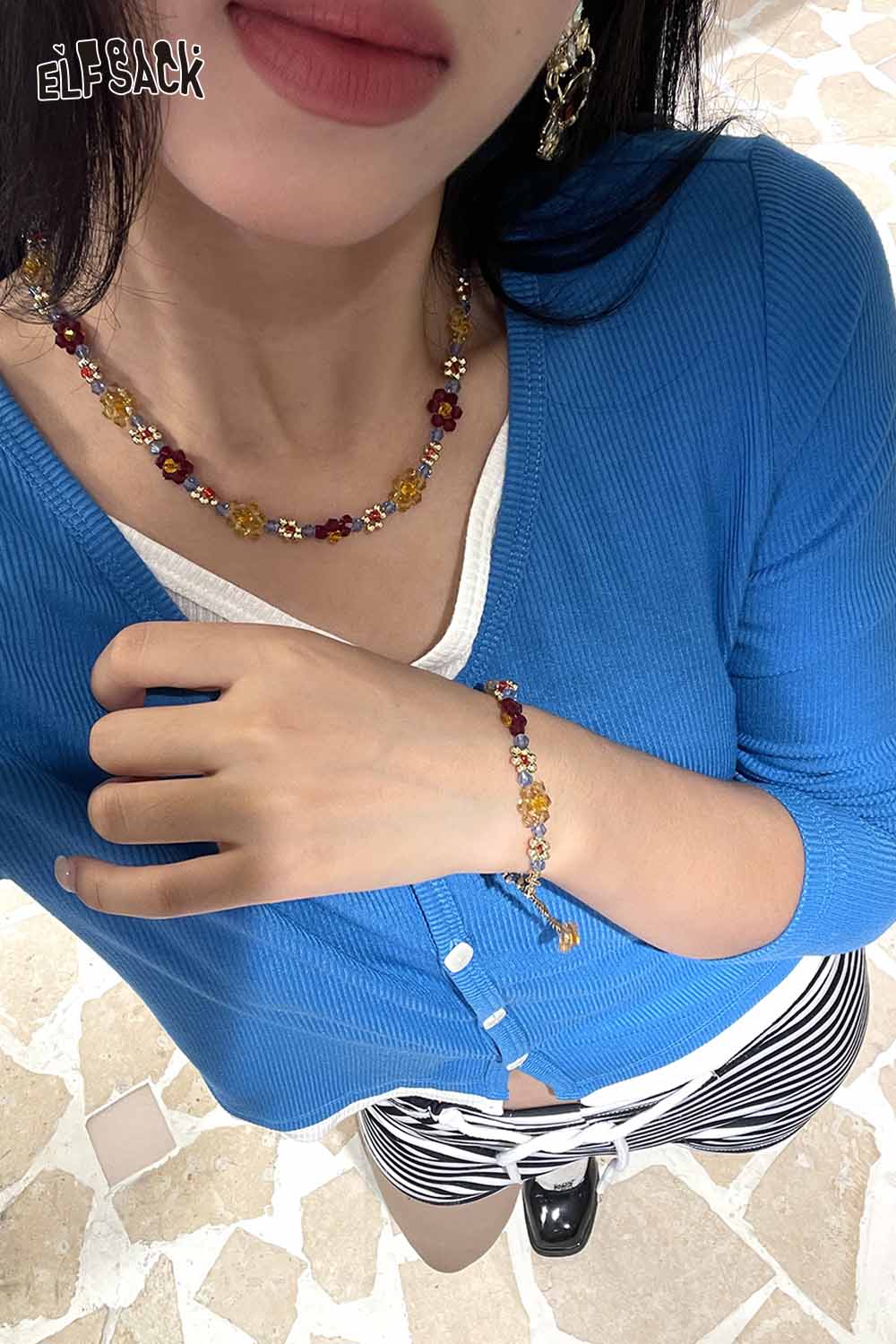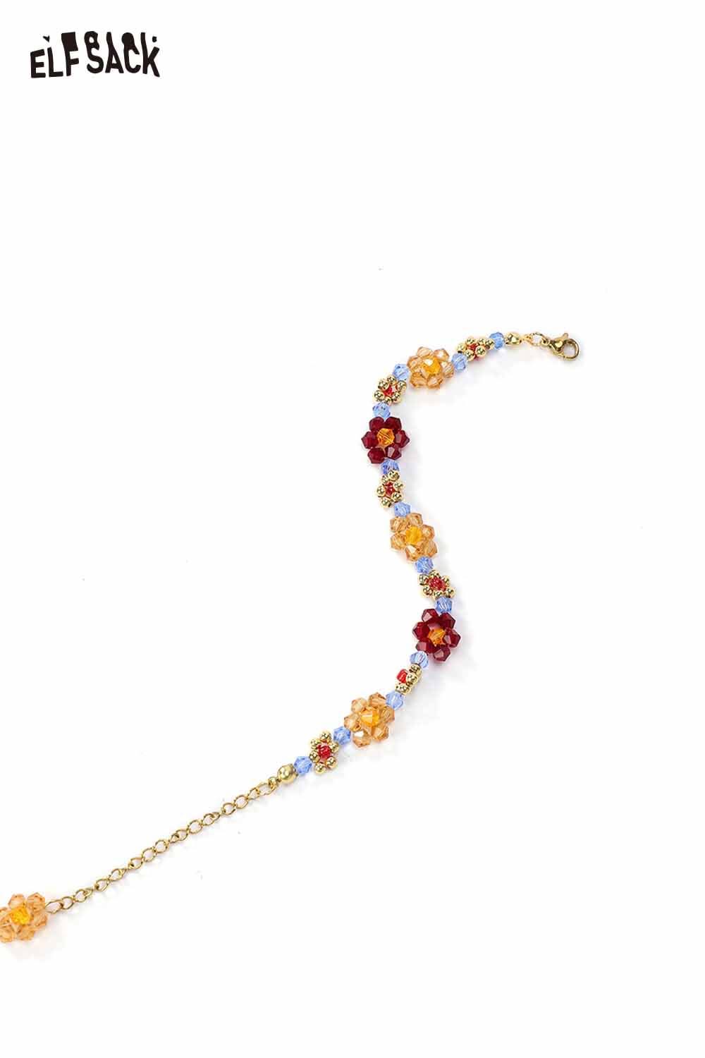 Handstrung Glass Bead Bracelet Floral Motif Gold Plated Clasp