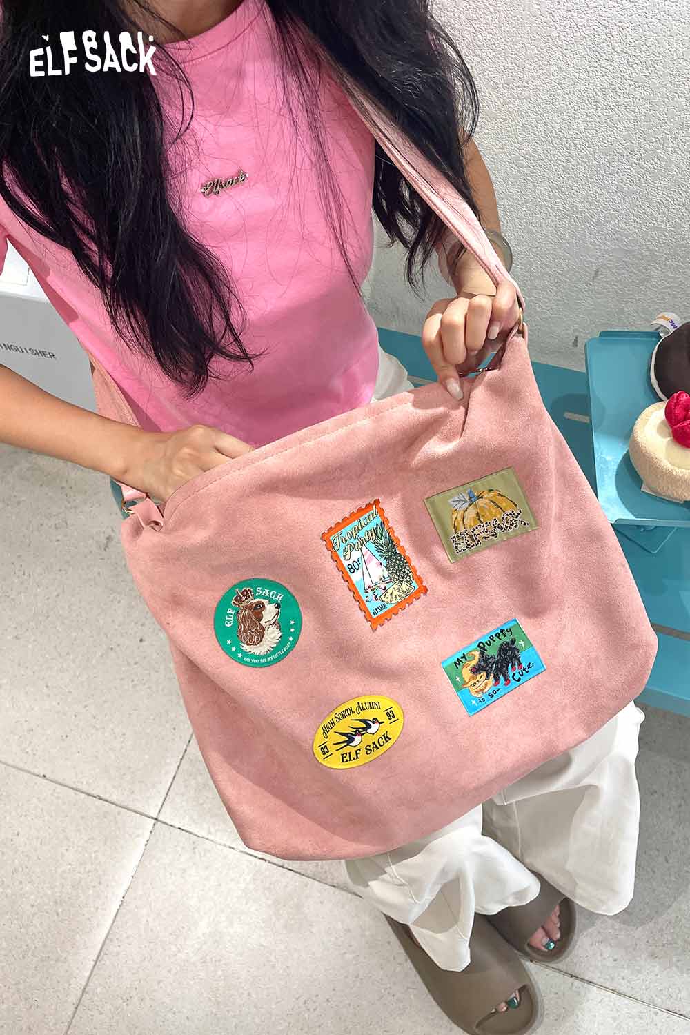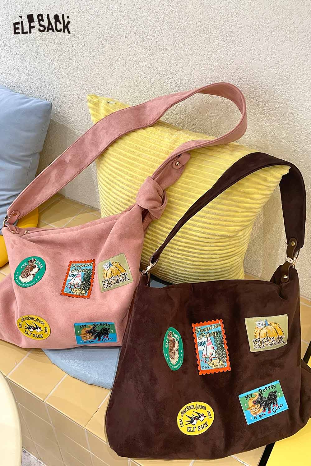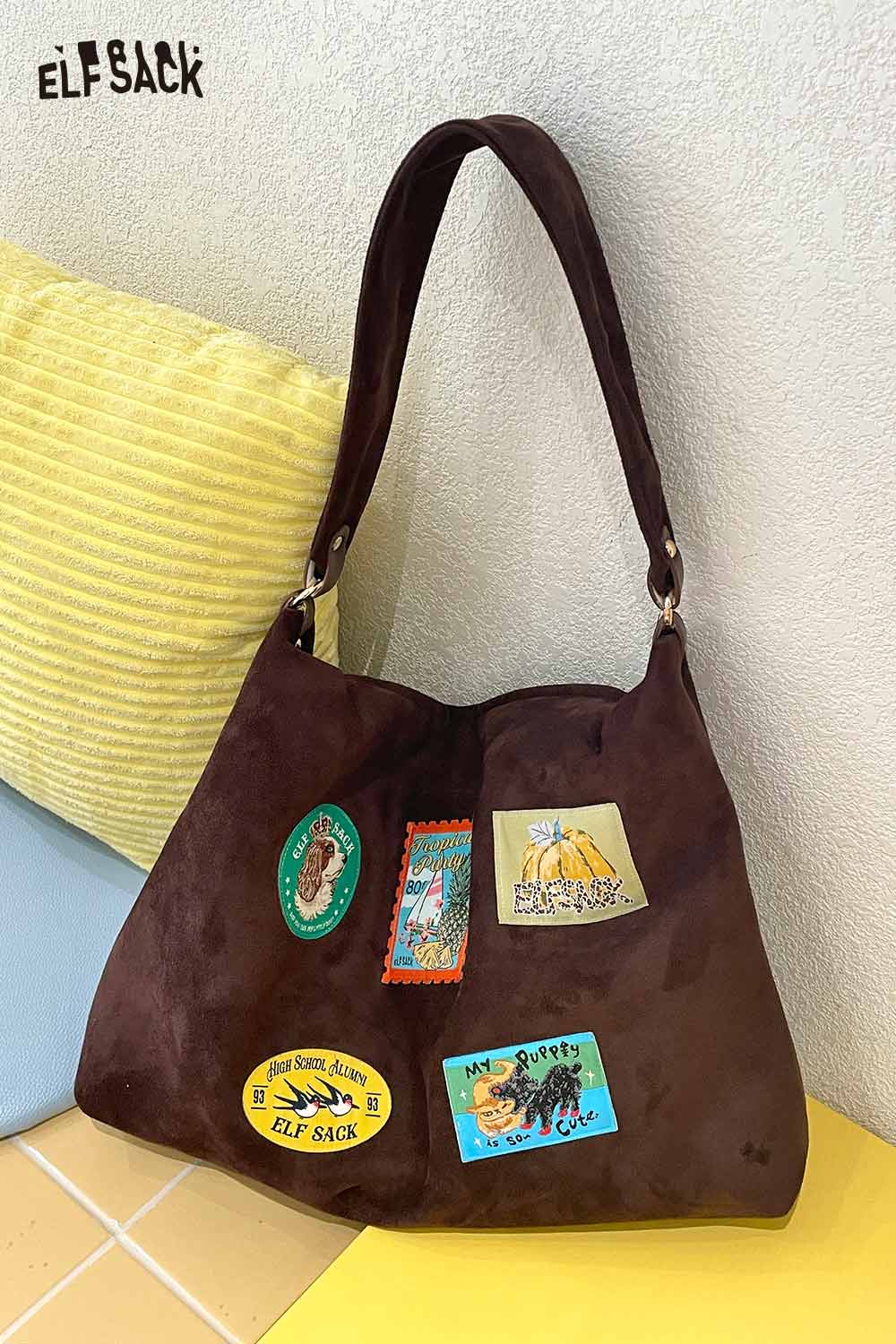 Suede Animal Stamp Embroidery Cute Tote Bag