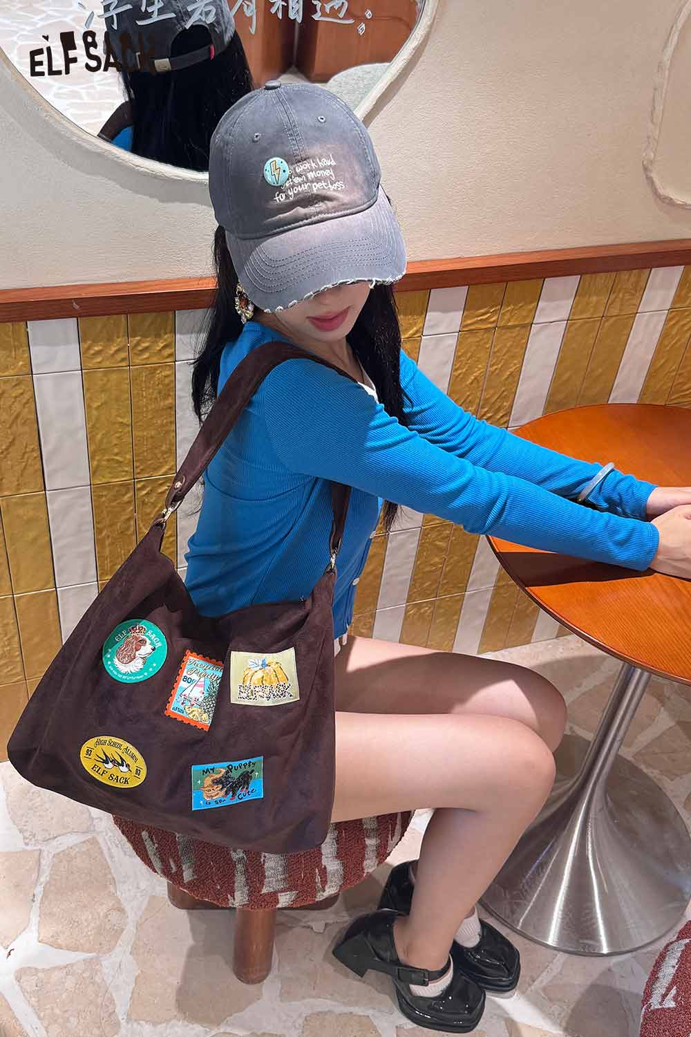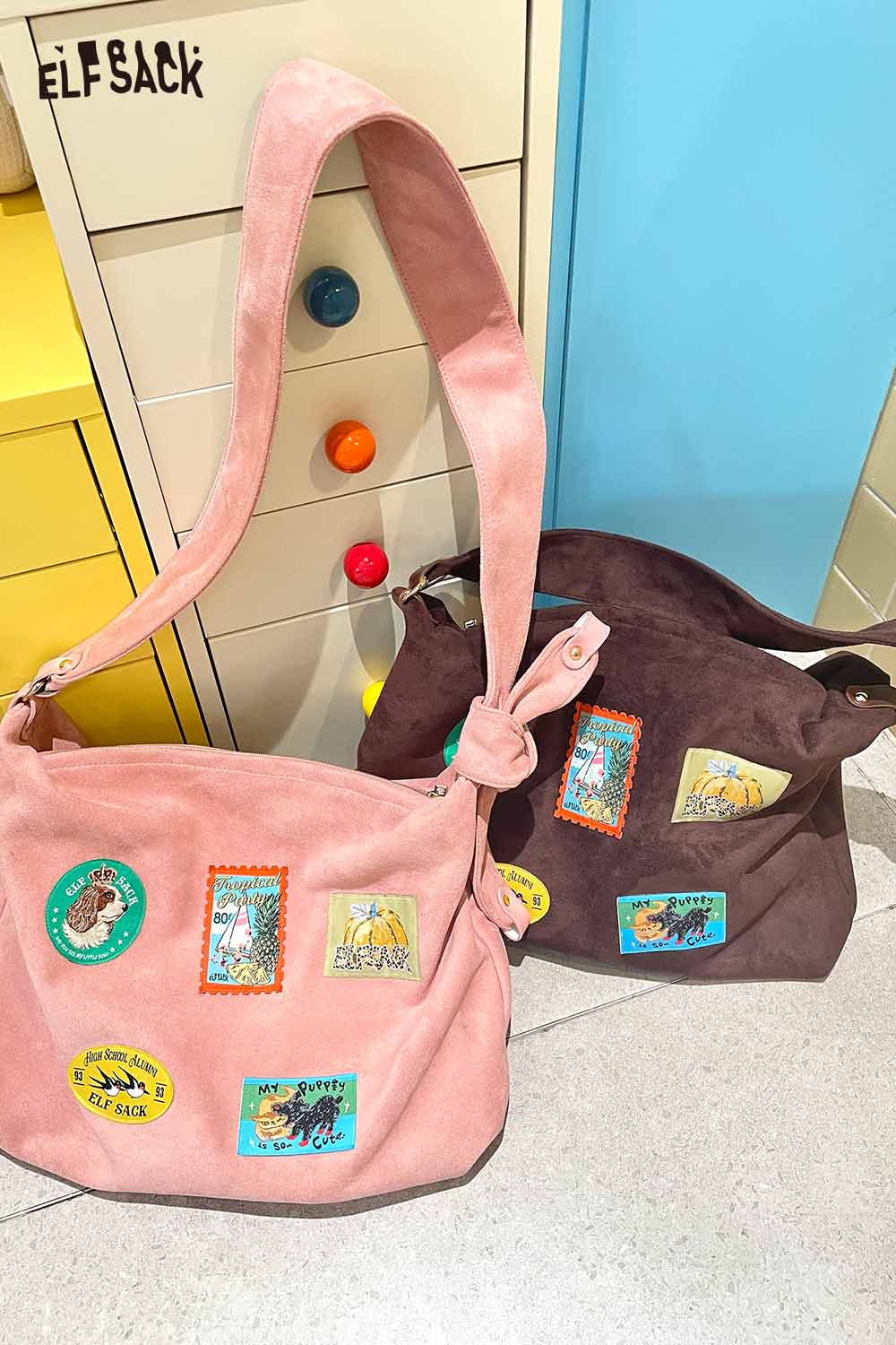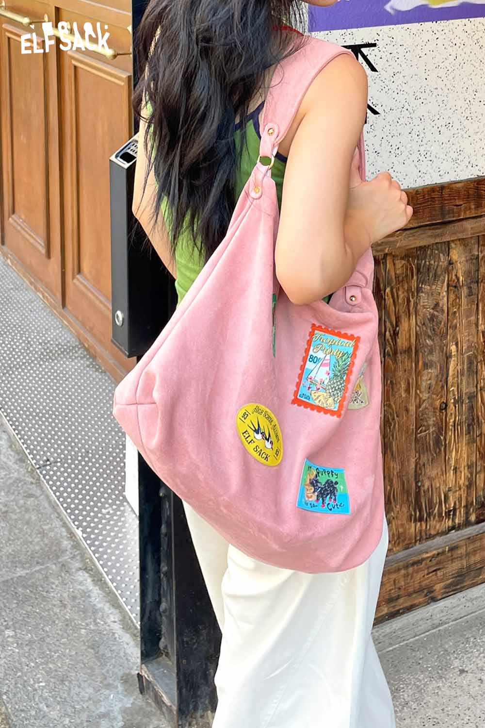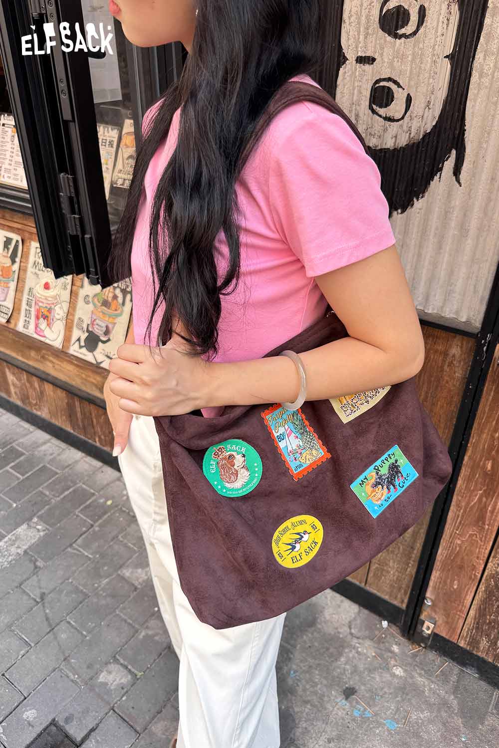 Suede Animal Stamp Embroidery Cute Tote Bag