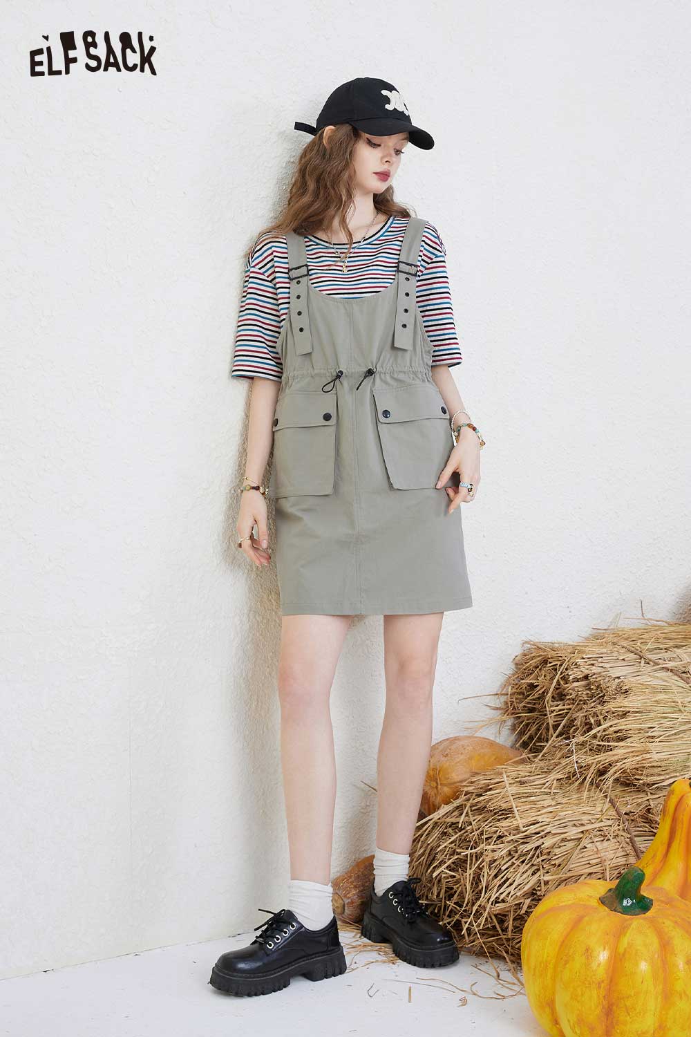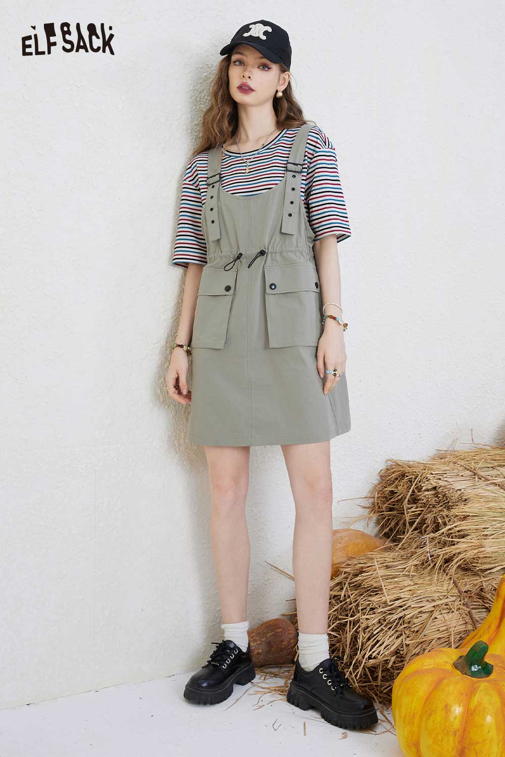 Light Striped Utility Tshirt Suspenders Skirt Set