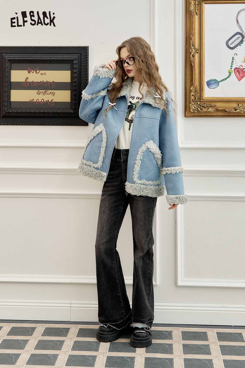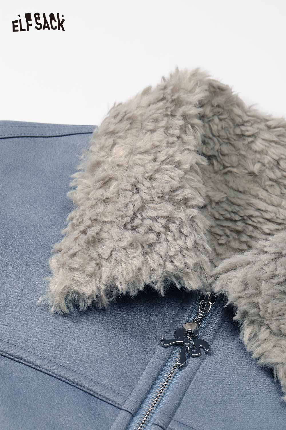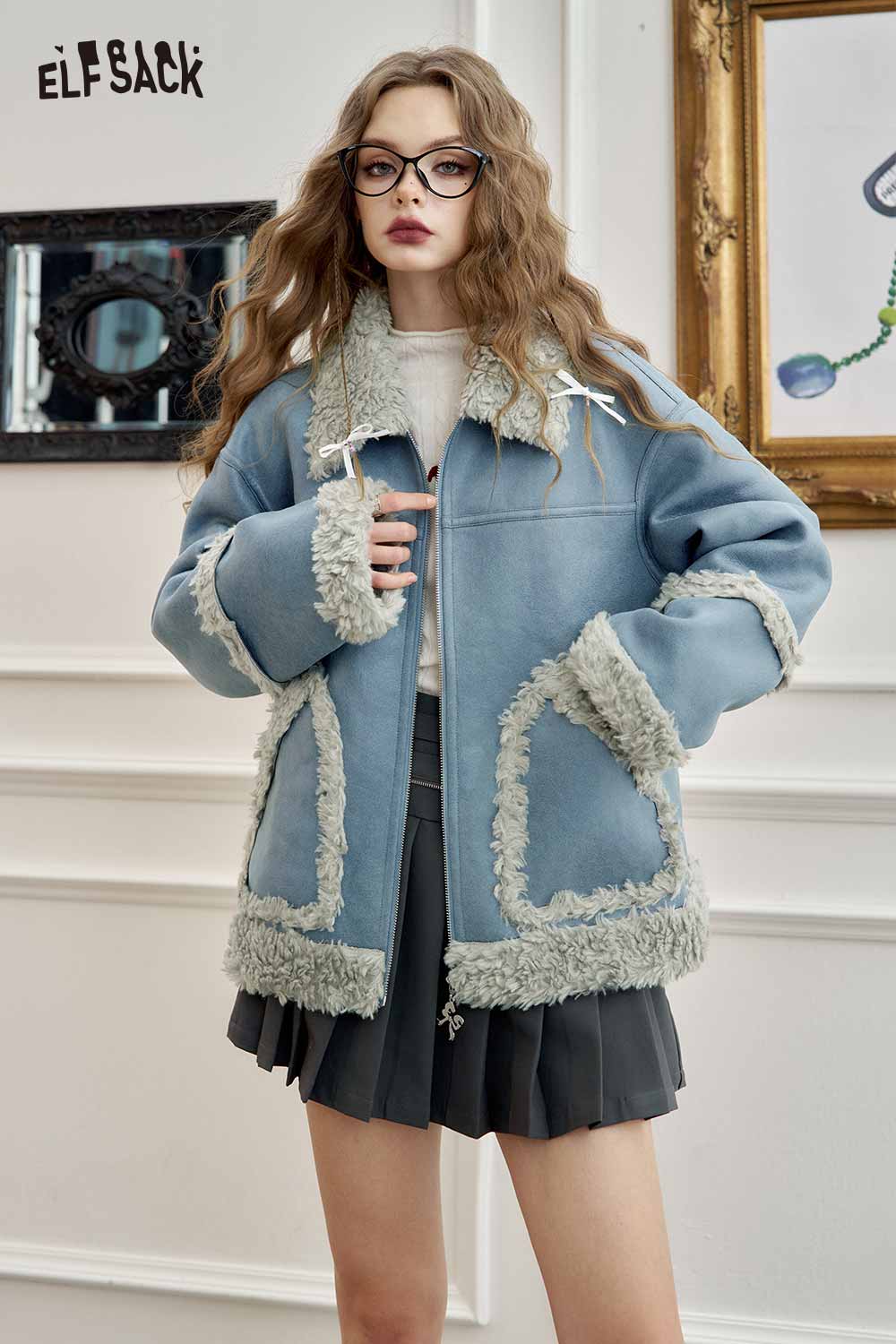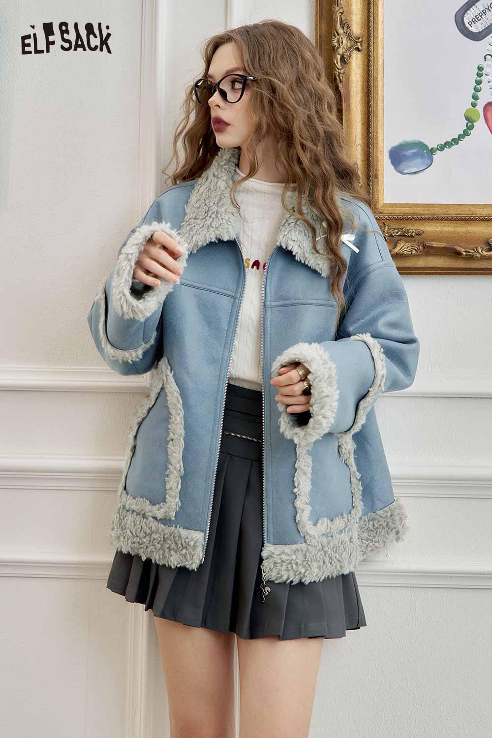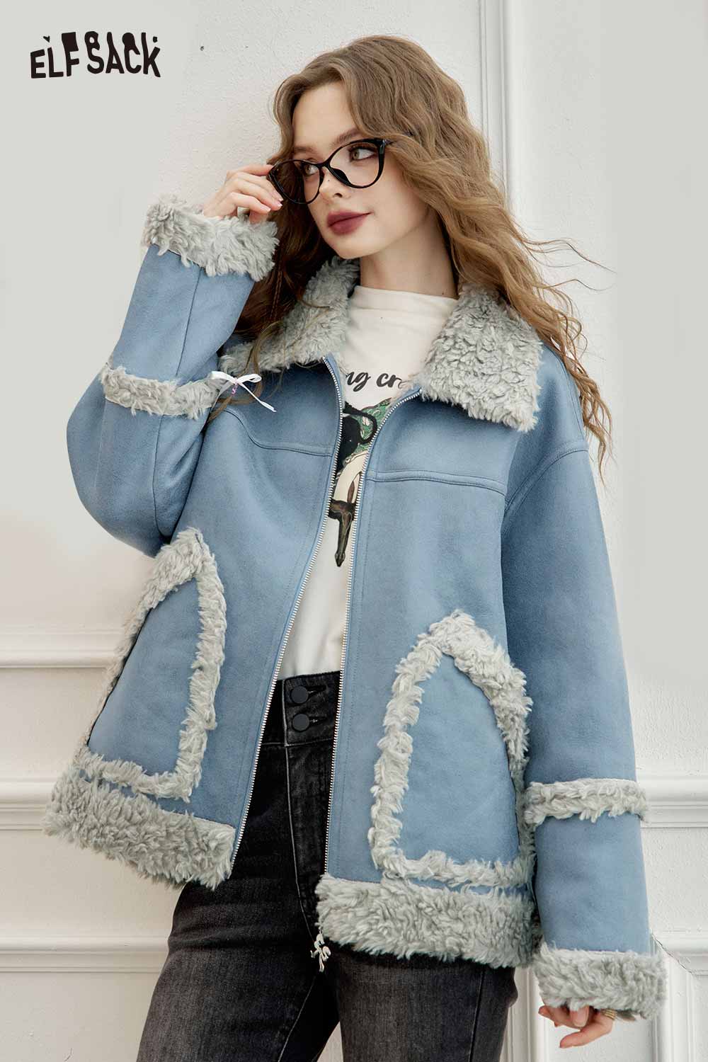 Soft Preppy Blue Faux Shearling Suede Short Coat