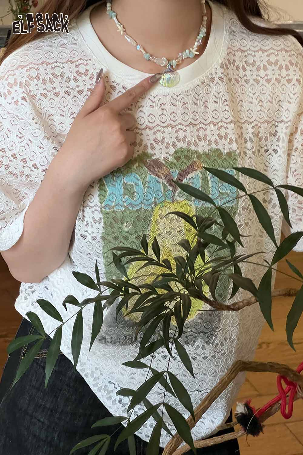 Shell Tassel Print Loose Short Sleeve Chic T-Shirt