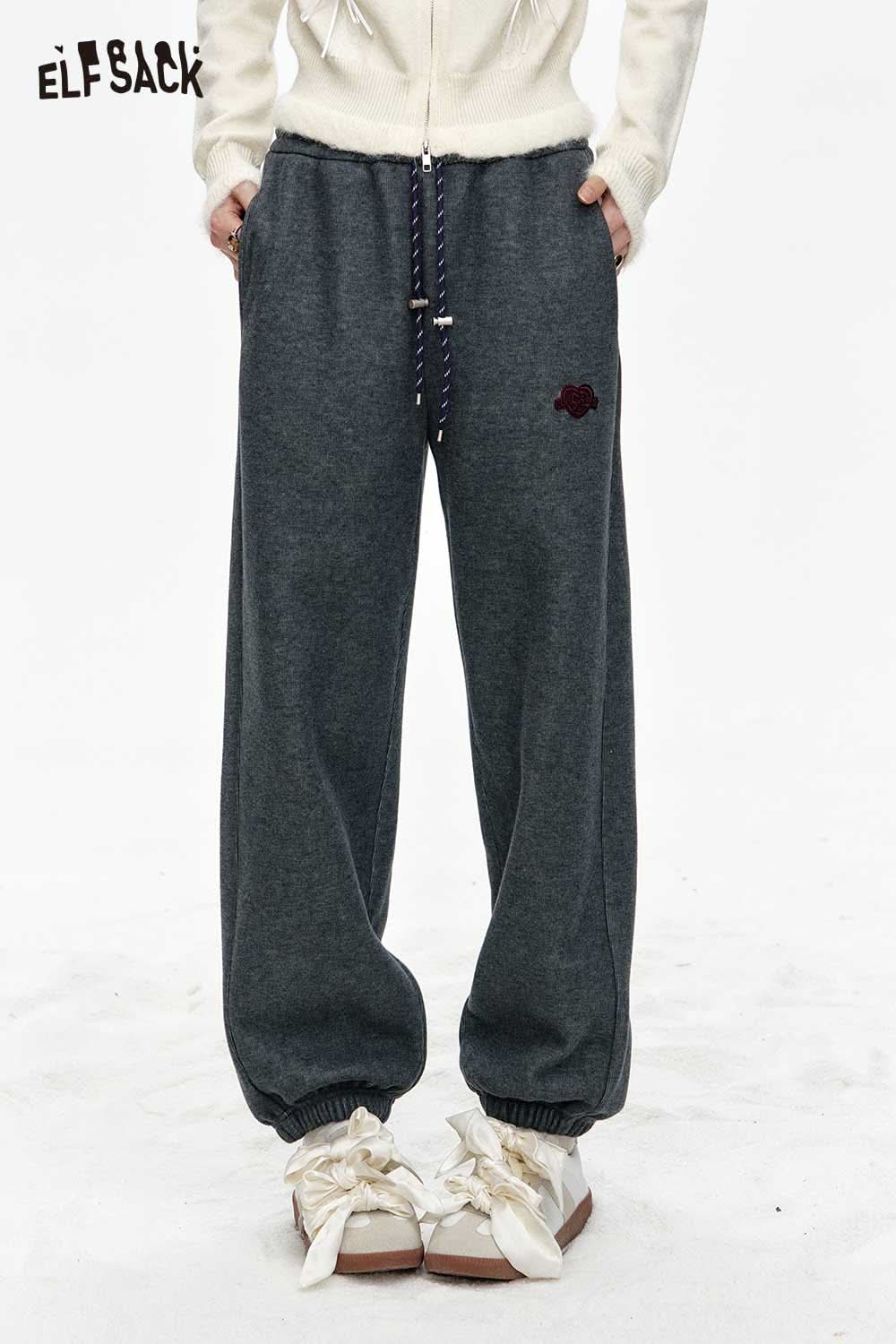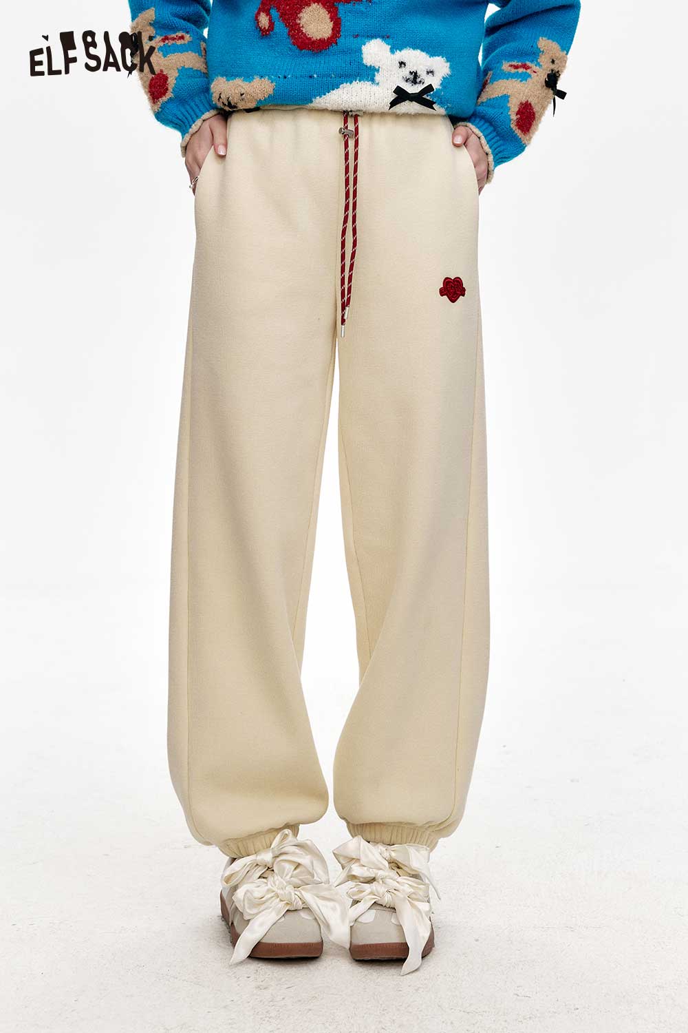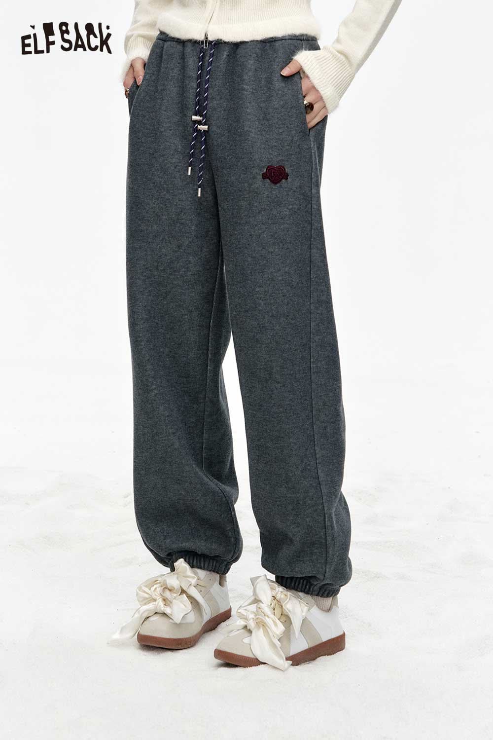 Soft Embroidered Solid Fleece Lined Sport Cuffed Pants