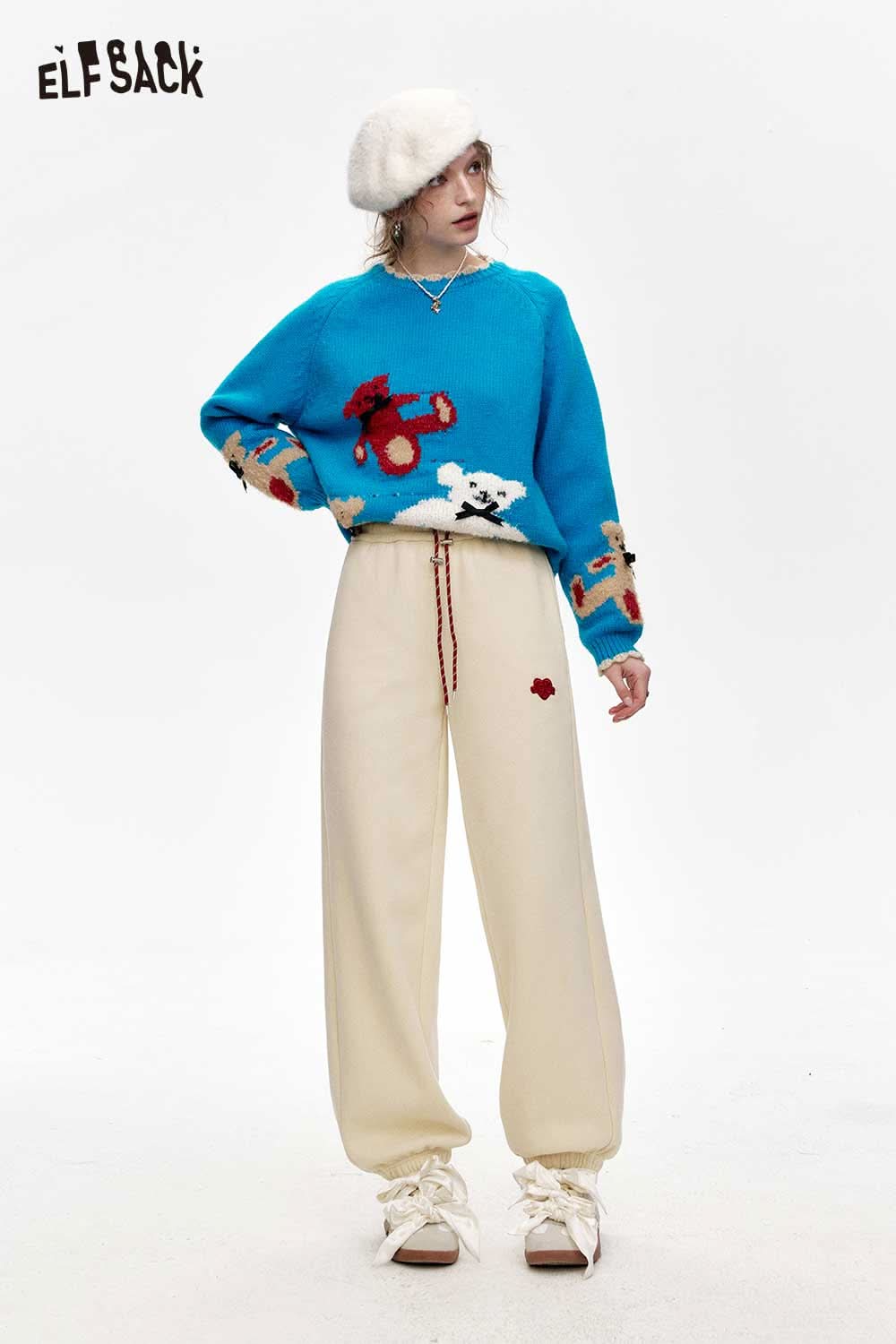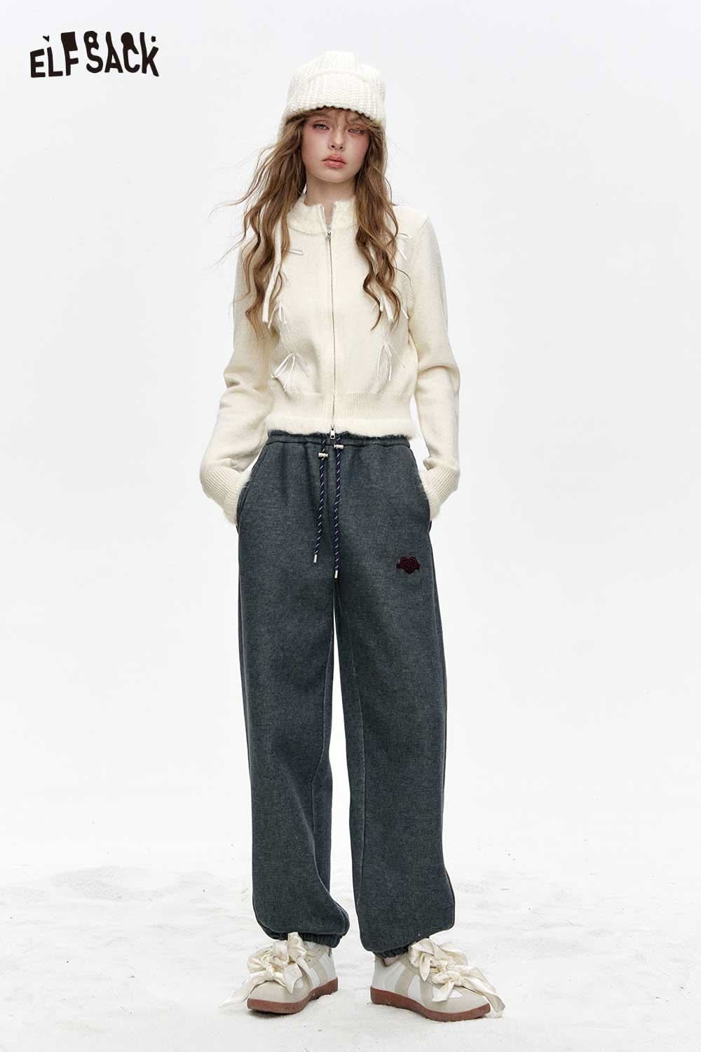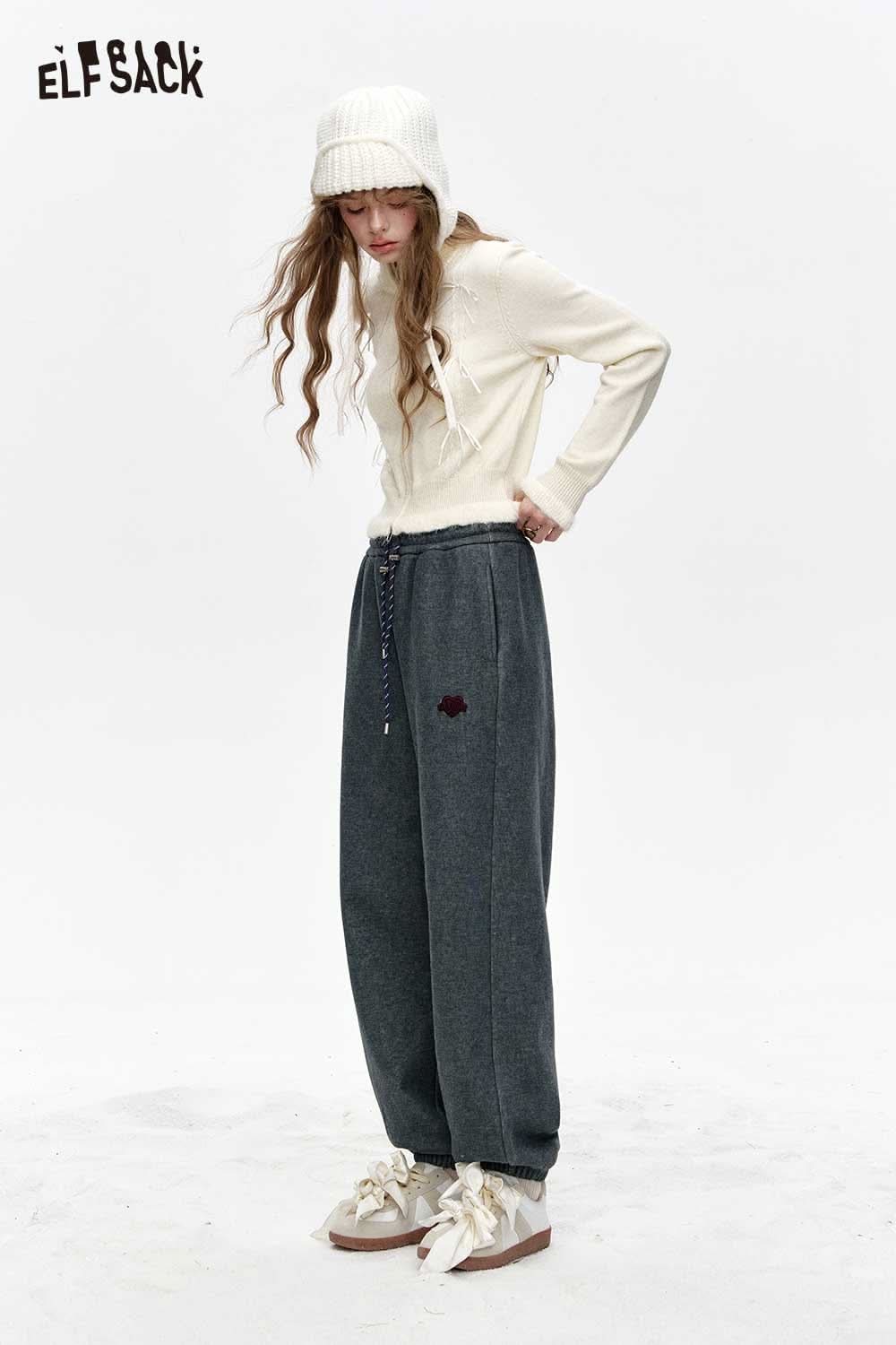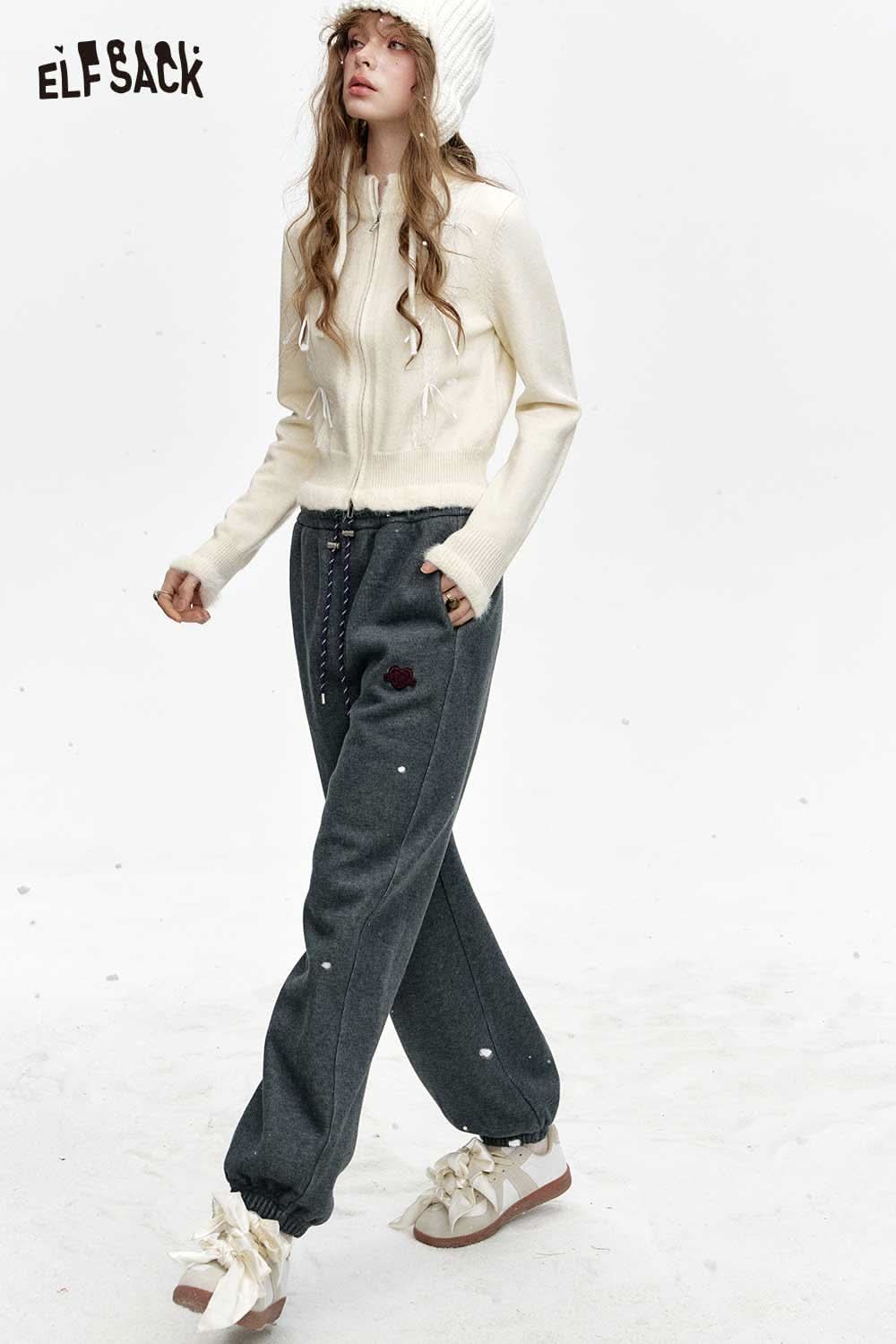 Soft Embroidered Solid Fleece Lined Sport Cuffed Pants