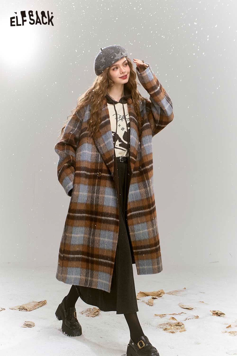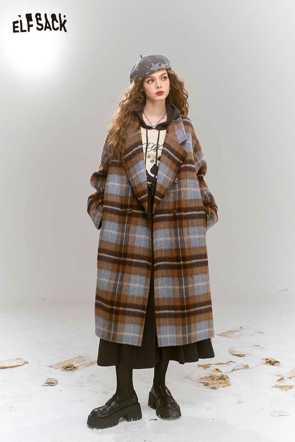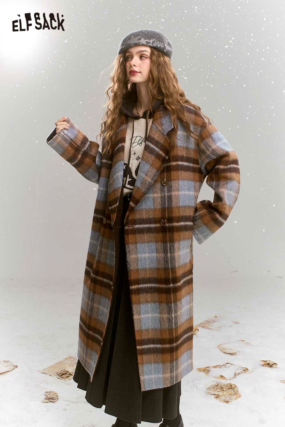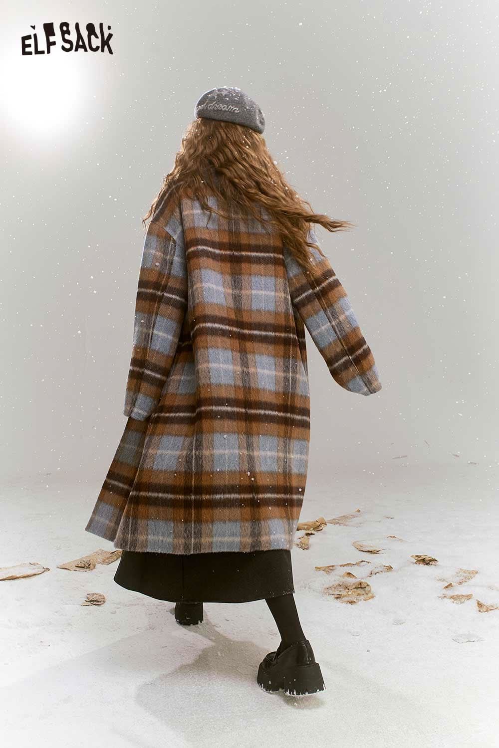 Soft Plaid Mid Length Woolen Coat