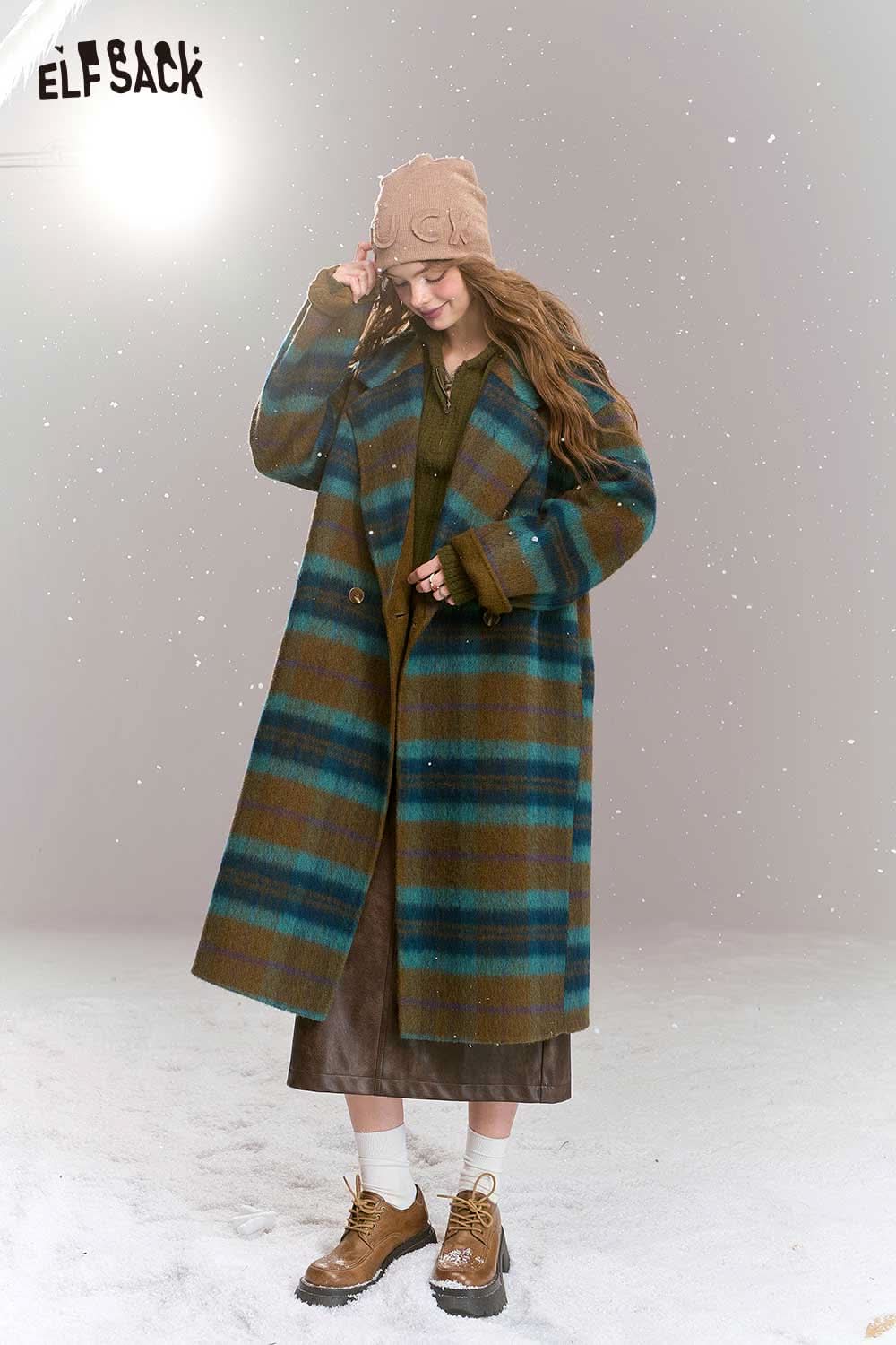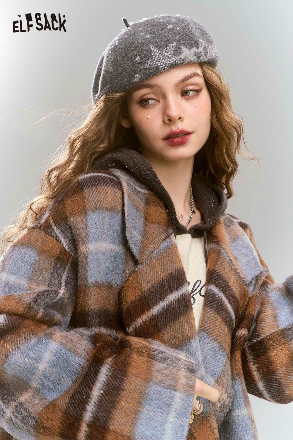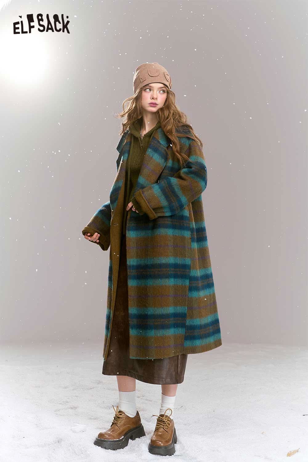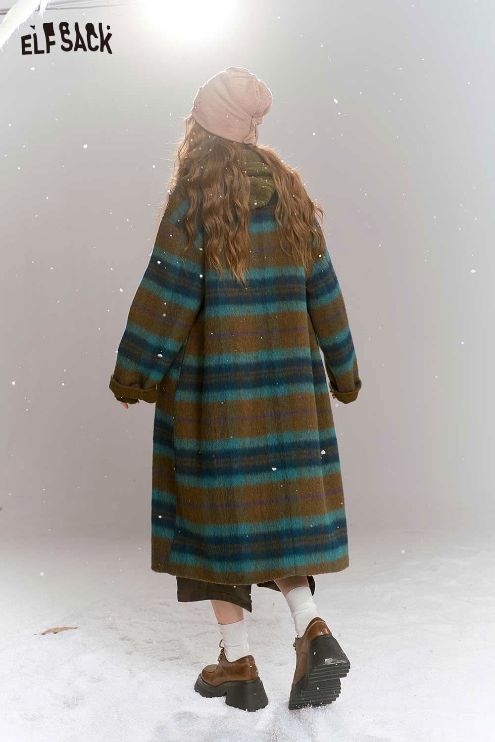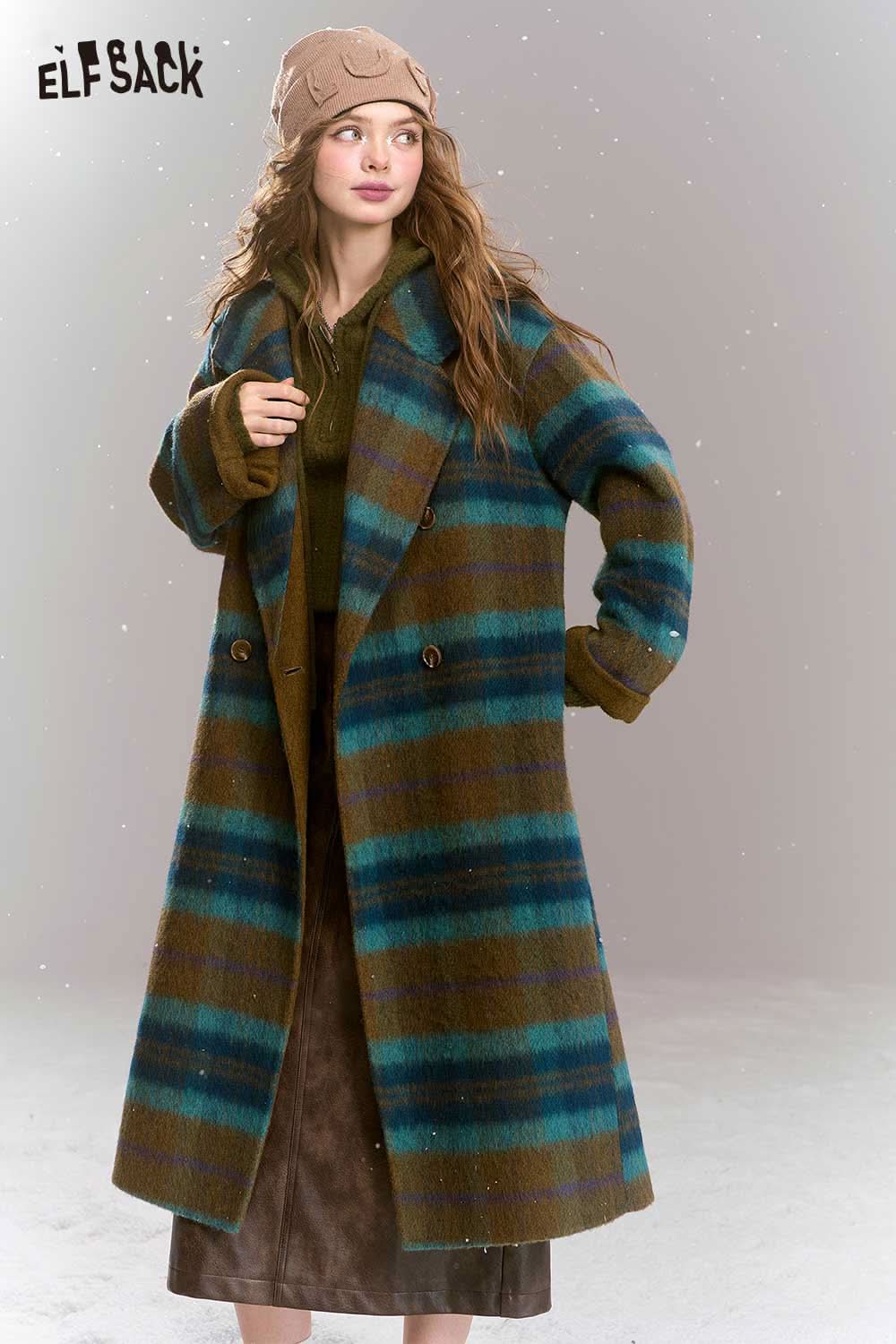 Soft Plaid Mid Length Woolen Coat