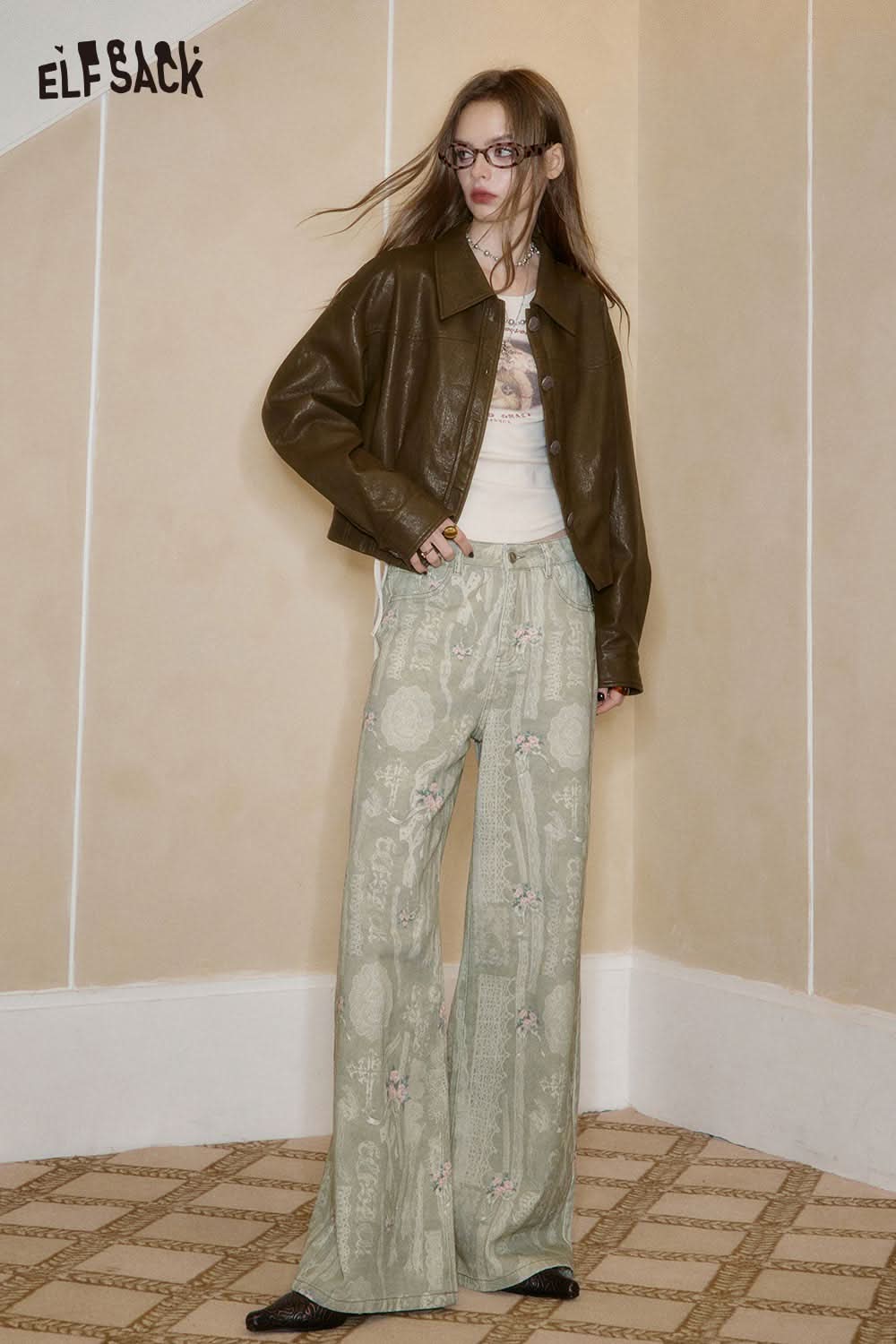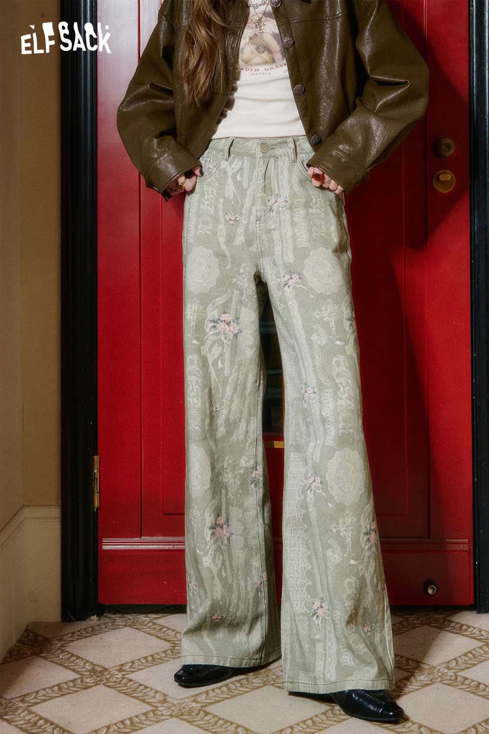 Cotton Allover Jeans Pattern Washed Effect Straight Leg Trousers