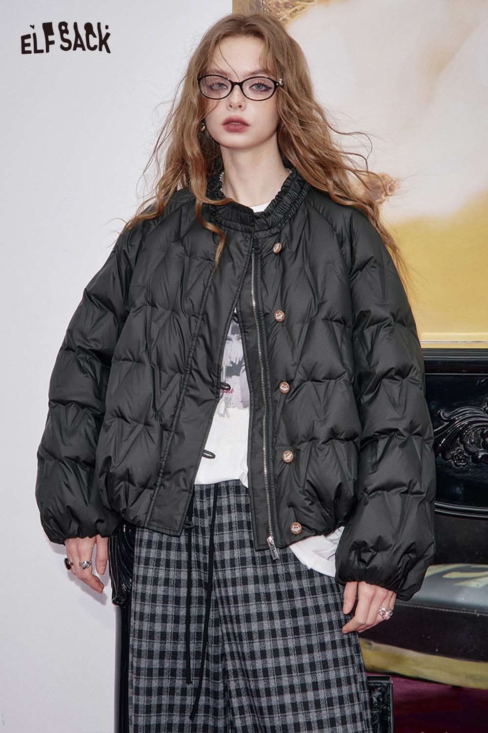 Cotton Blend Loose Fit Diamond Quilted Design Puffer Down Jacket