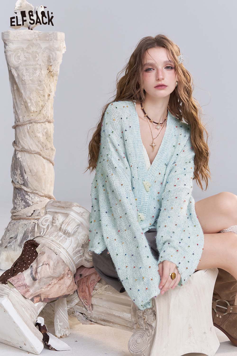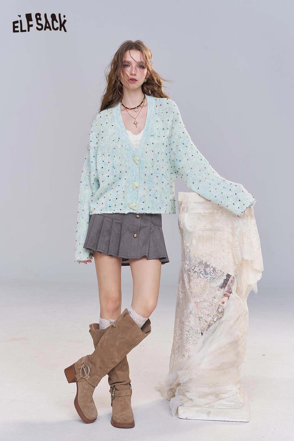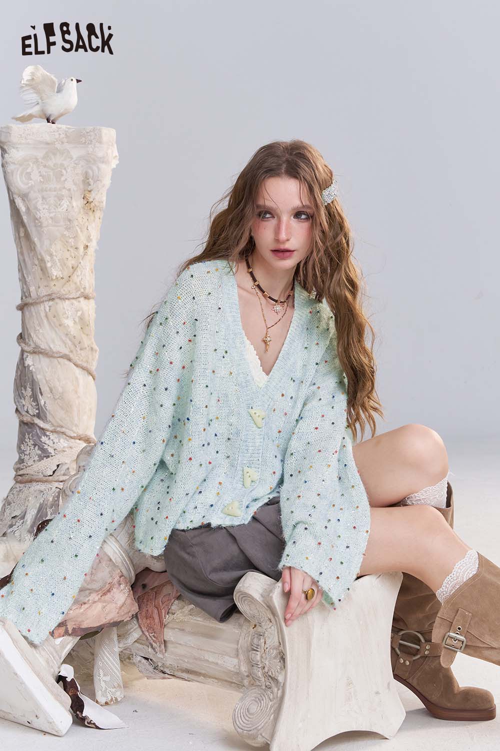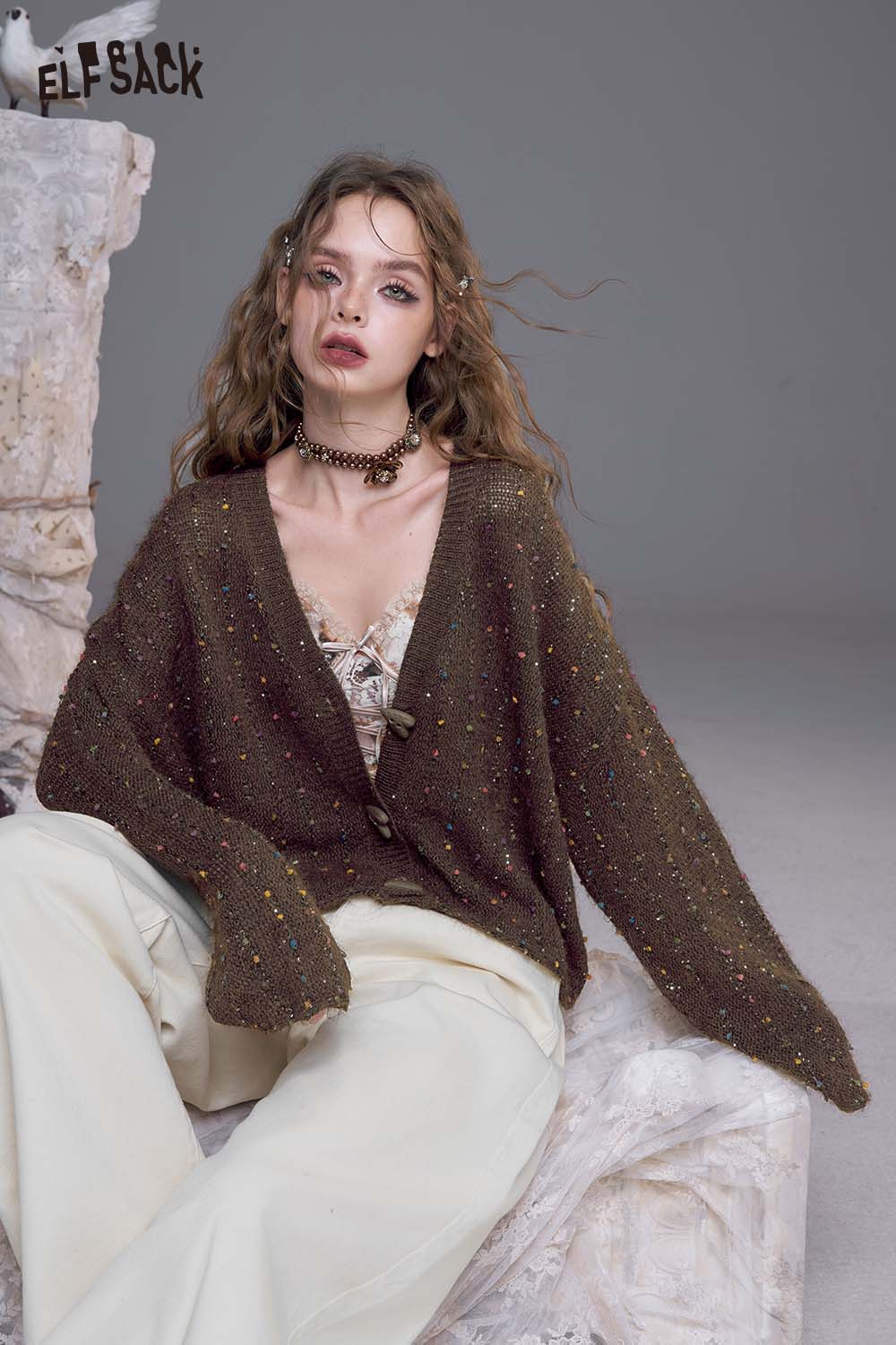 Cotton Blend Colored Stitch Detail Relaxed Fit Open Front Cardigan