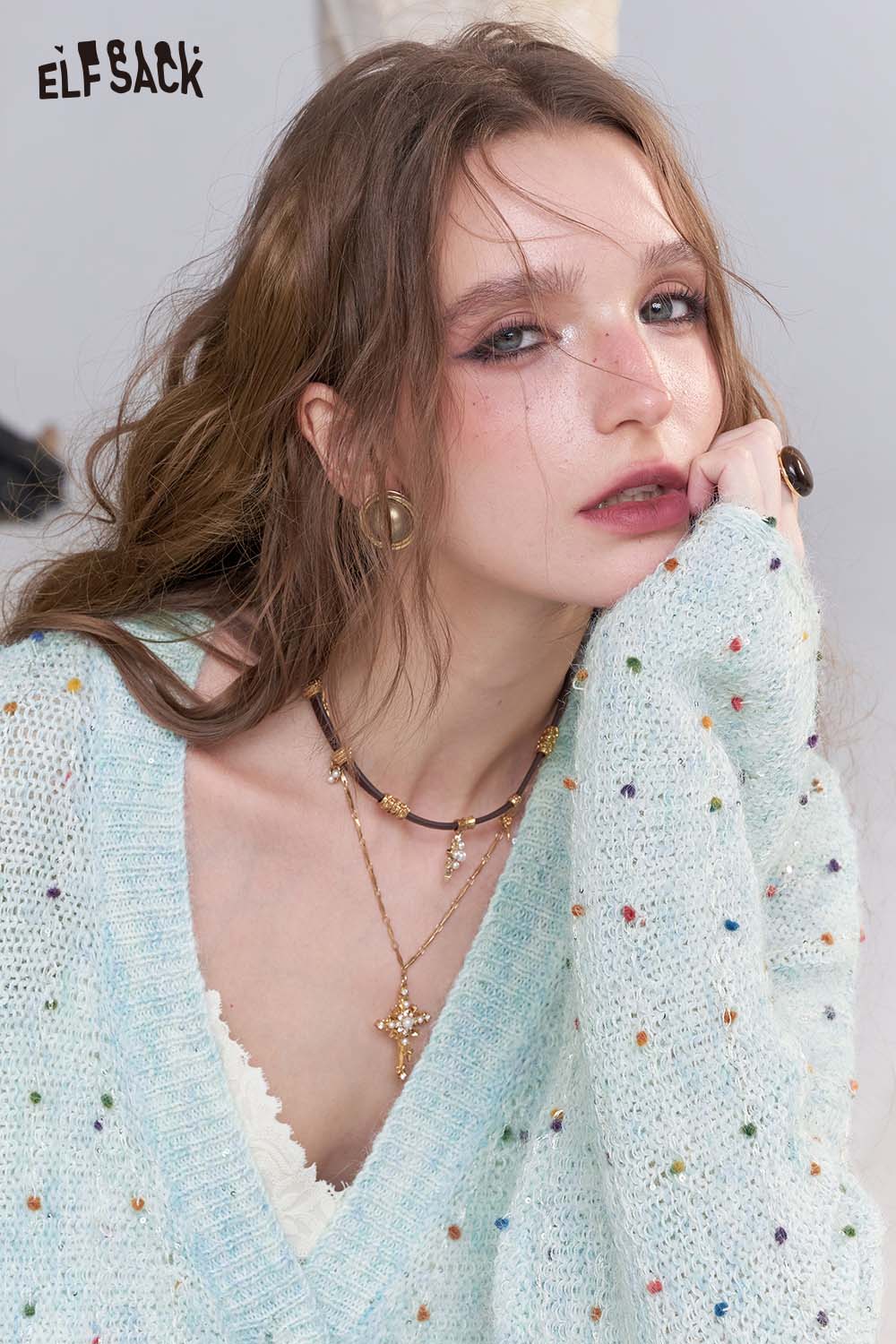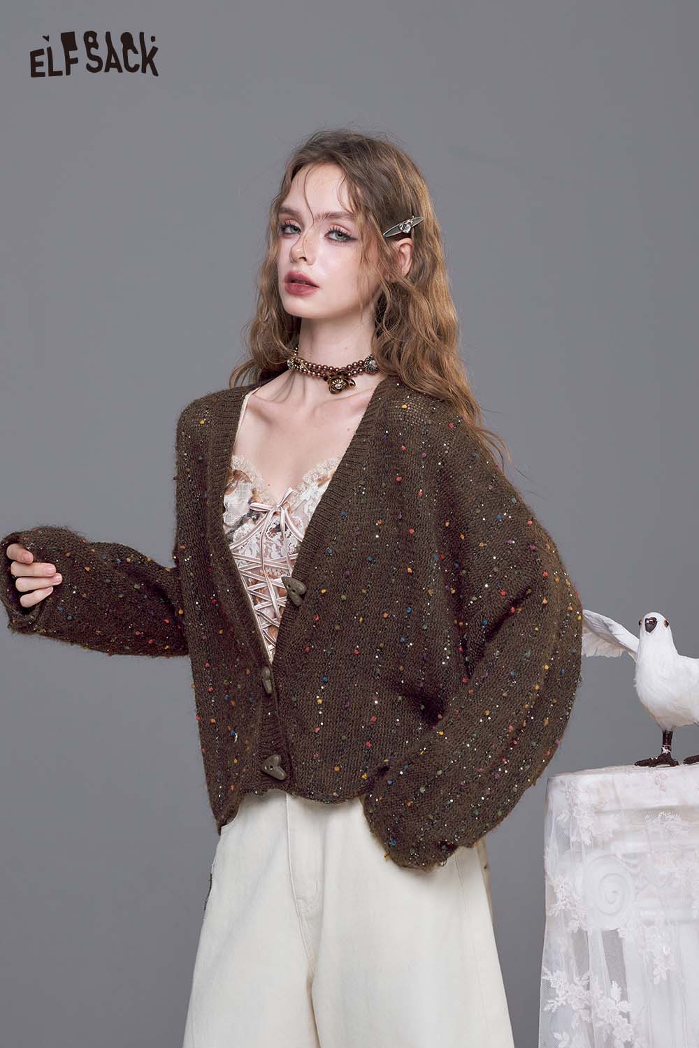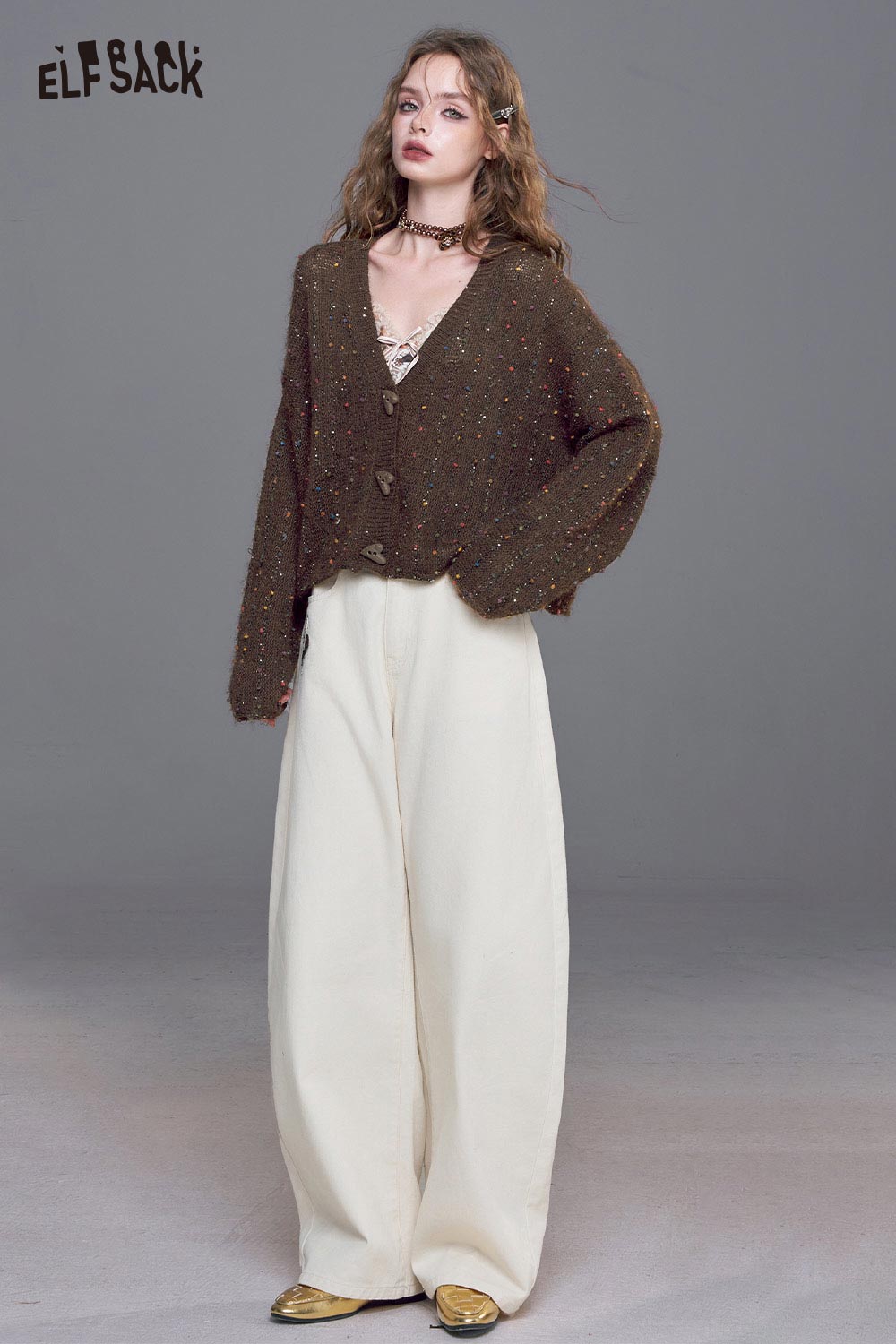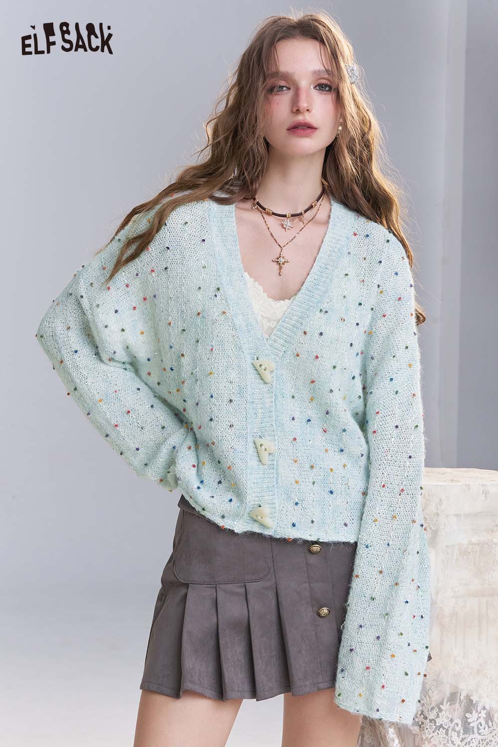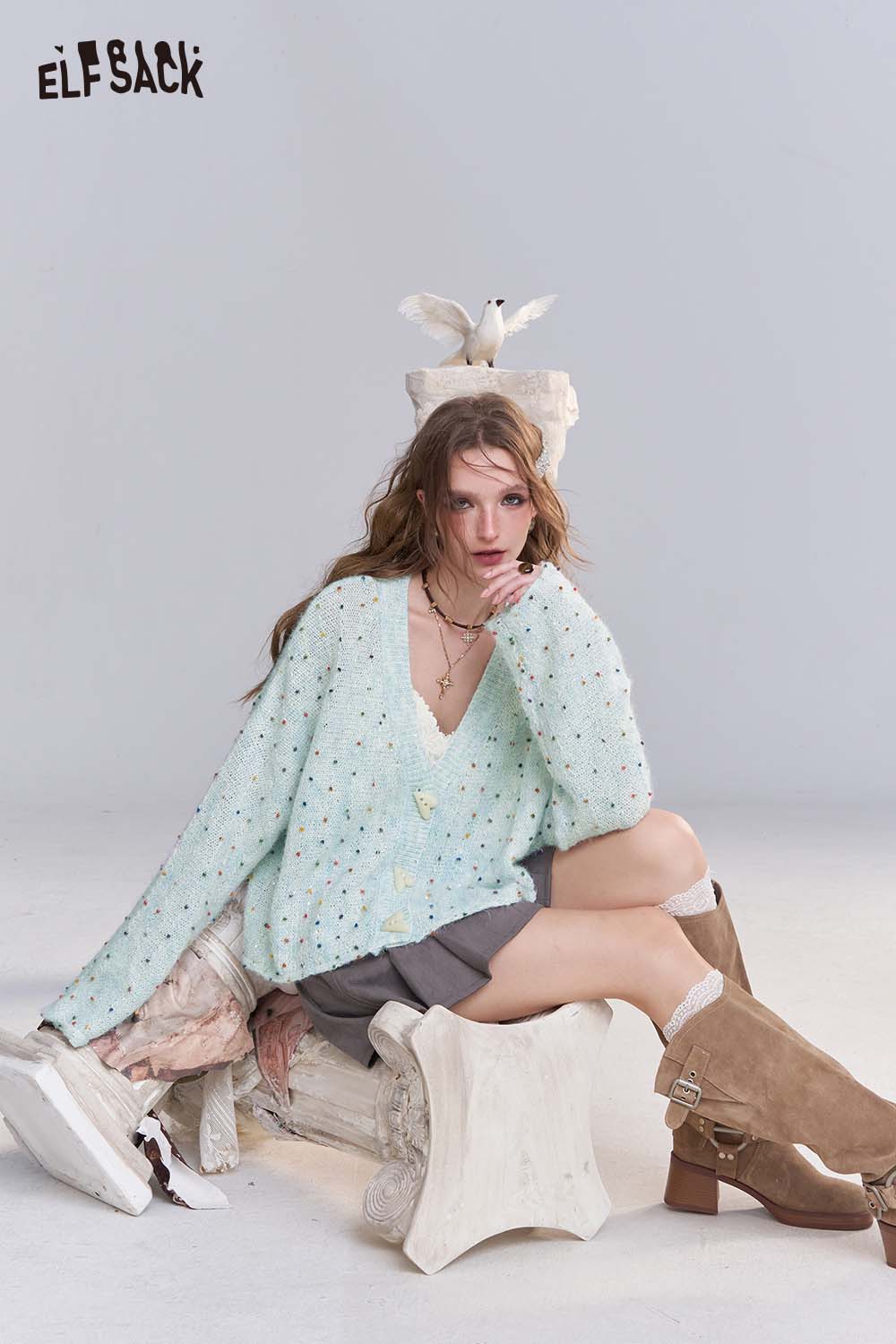 Cotton Blend Colored Stitch Detail Relaxed Fit Open Front Cardigan