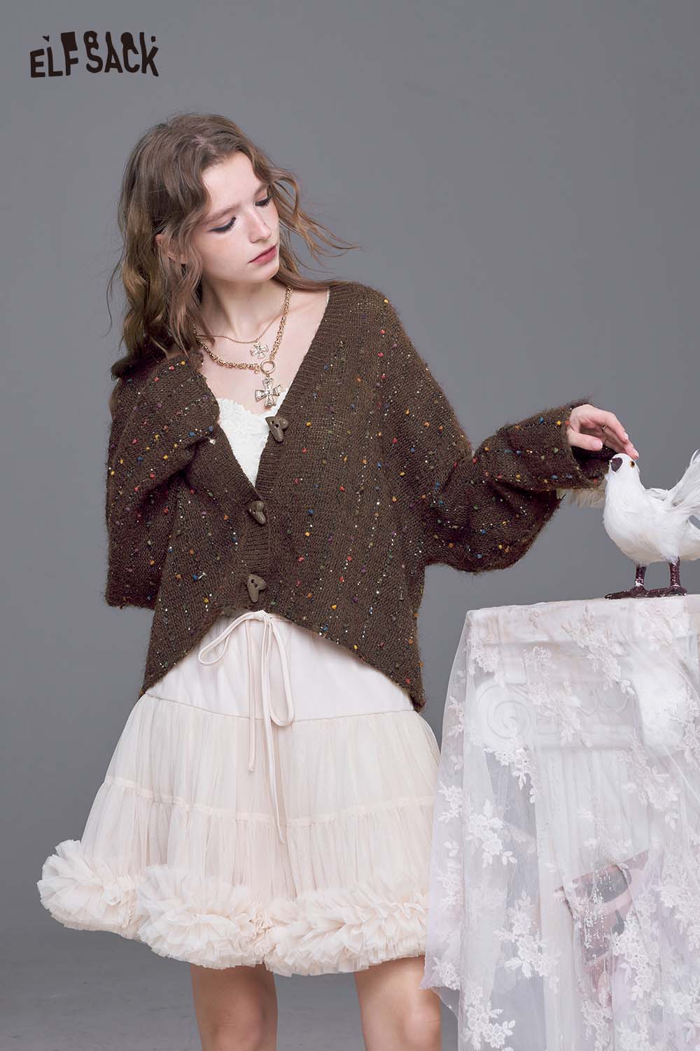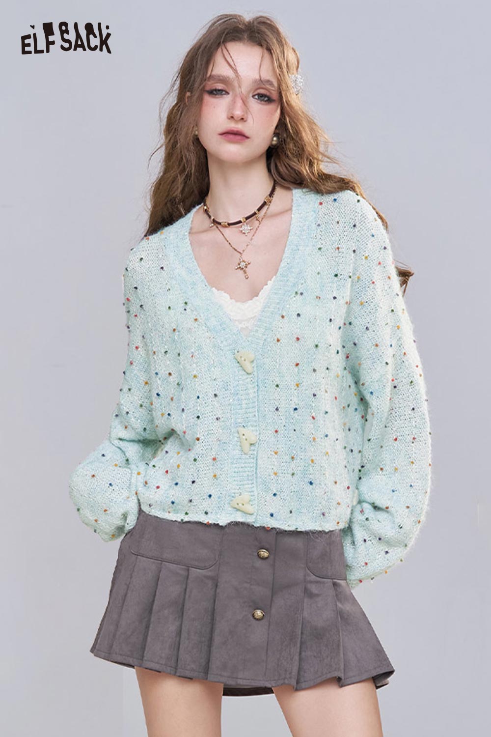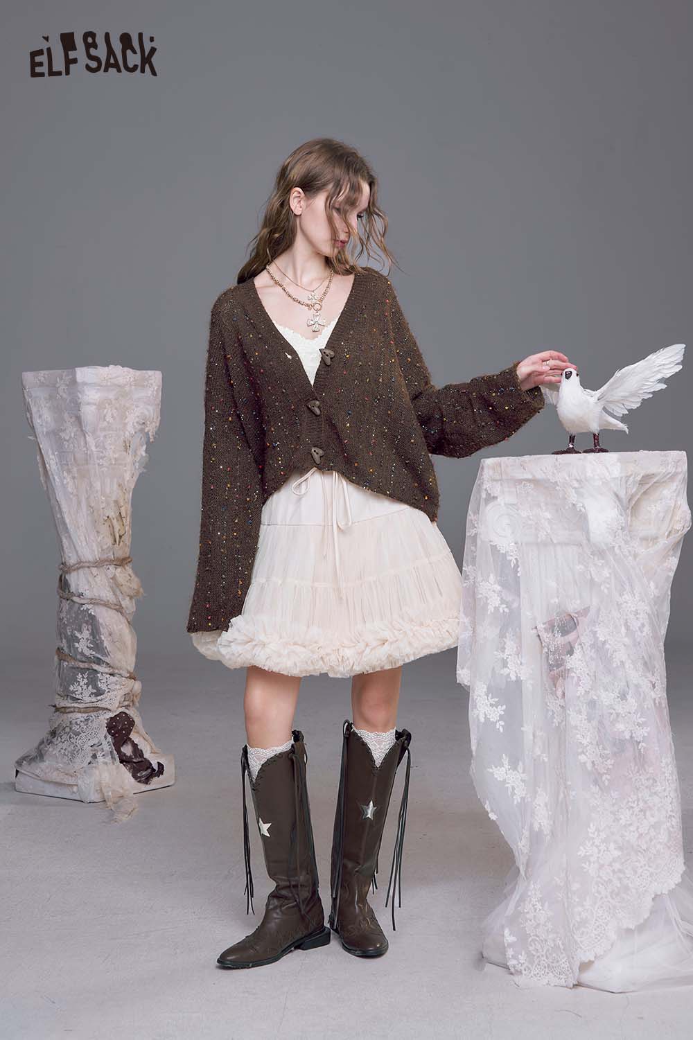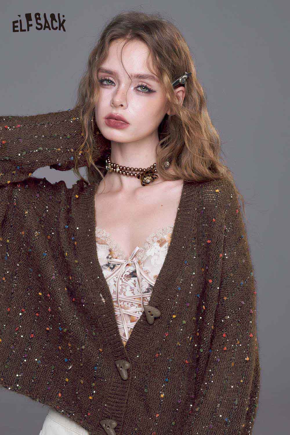 Cotton Blend Colored Stitch Detail Relaxed Fit Open Front Cardigan