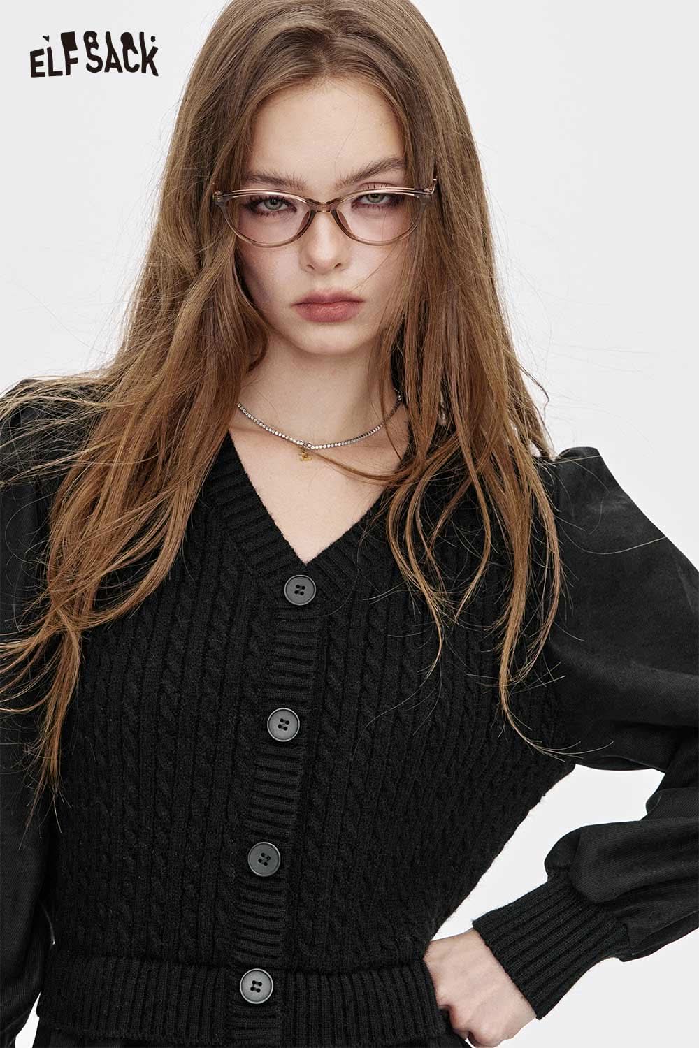Viscose Blend Voluminous Sleeve Minimalist Silhouette V-Neck Dress
