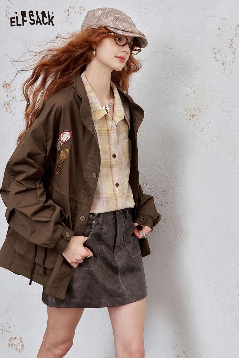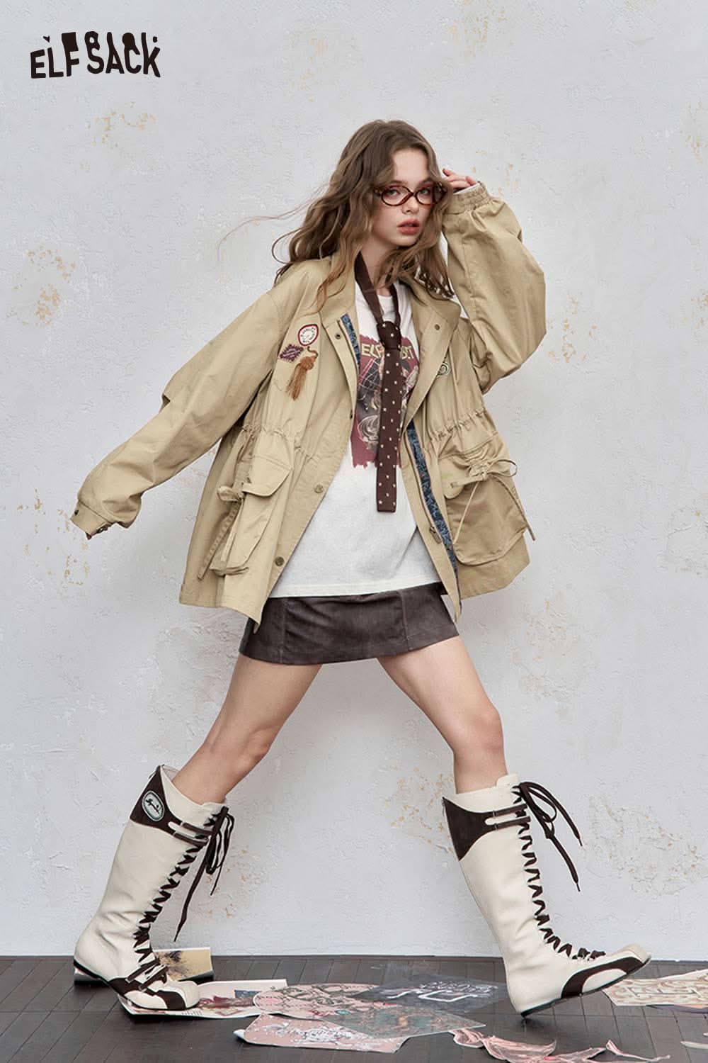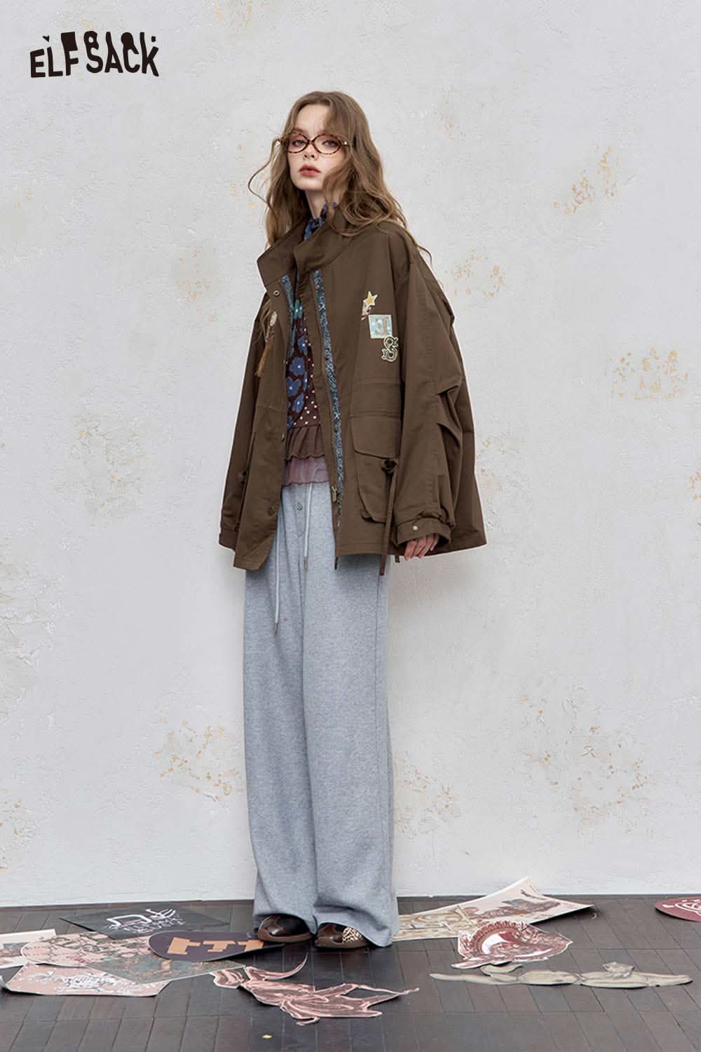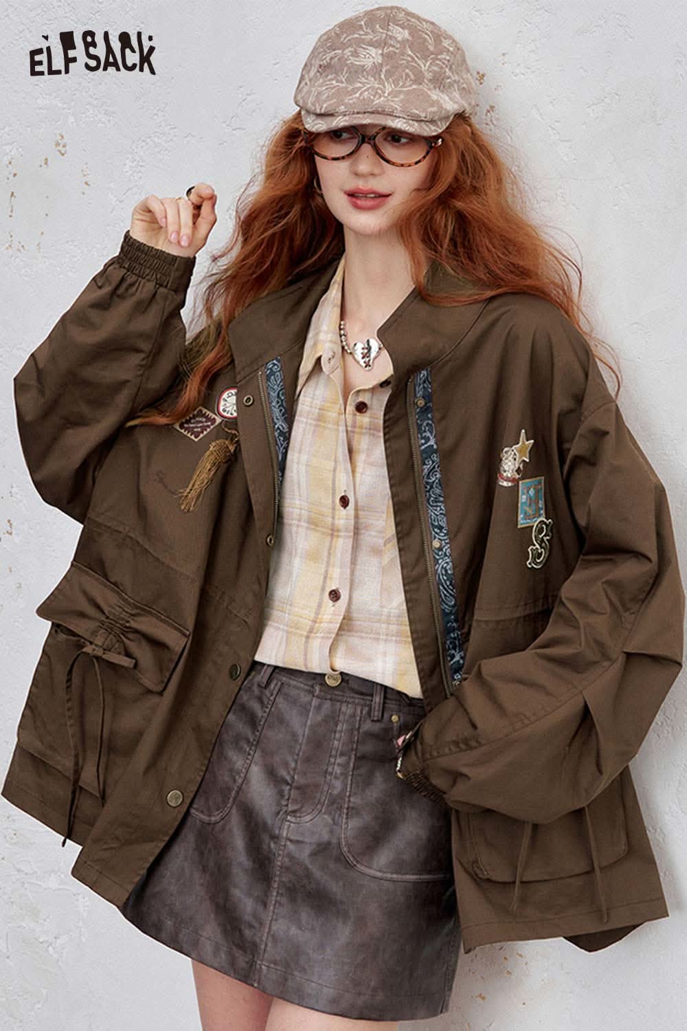 Cotton Patchwork Stand-Up Collar Streetwear Trench Coat