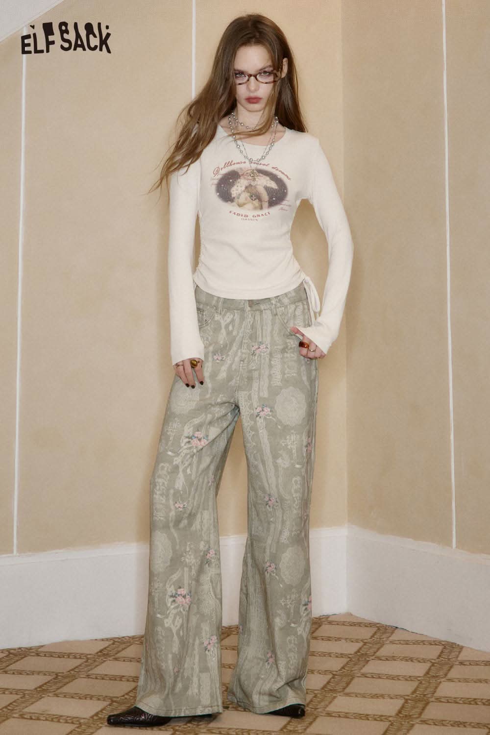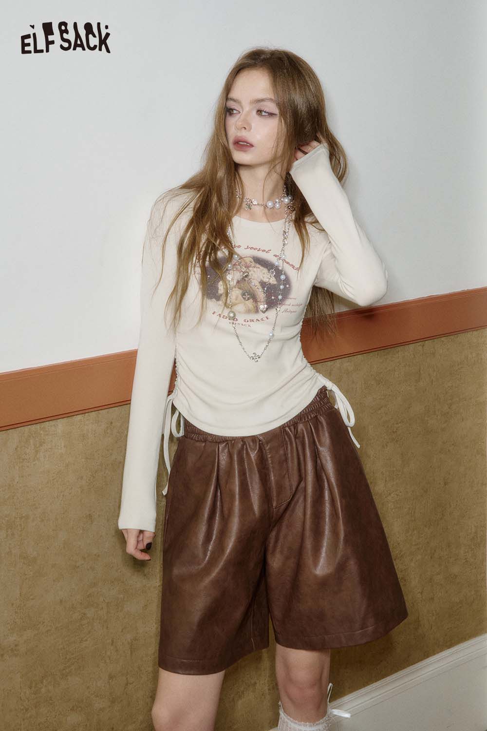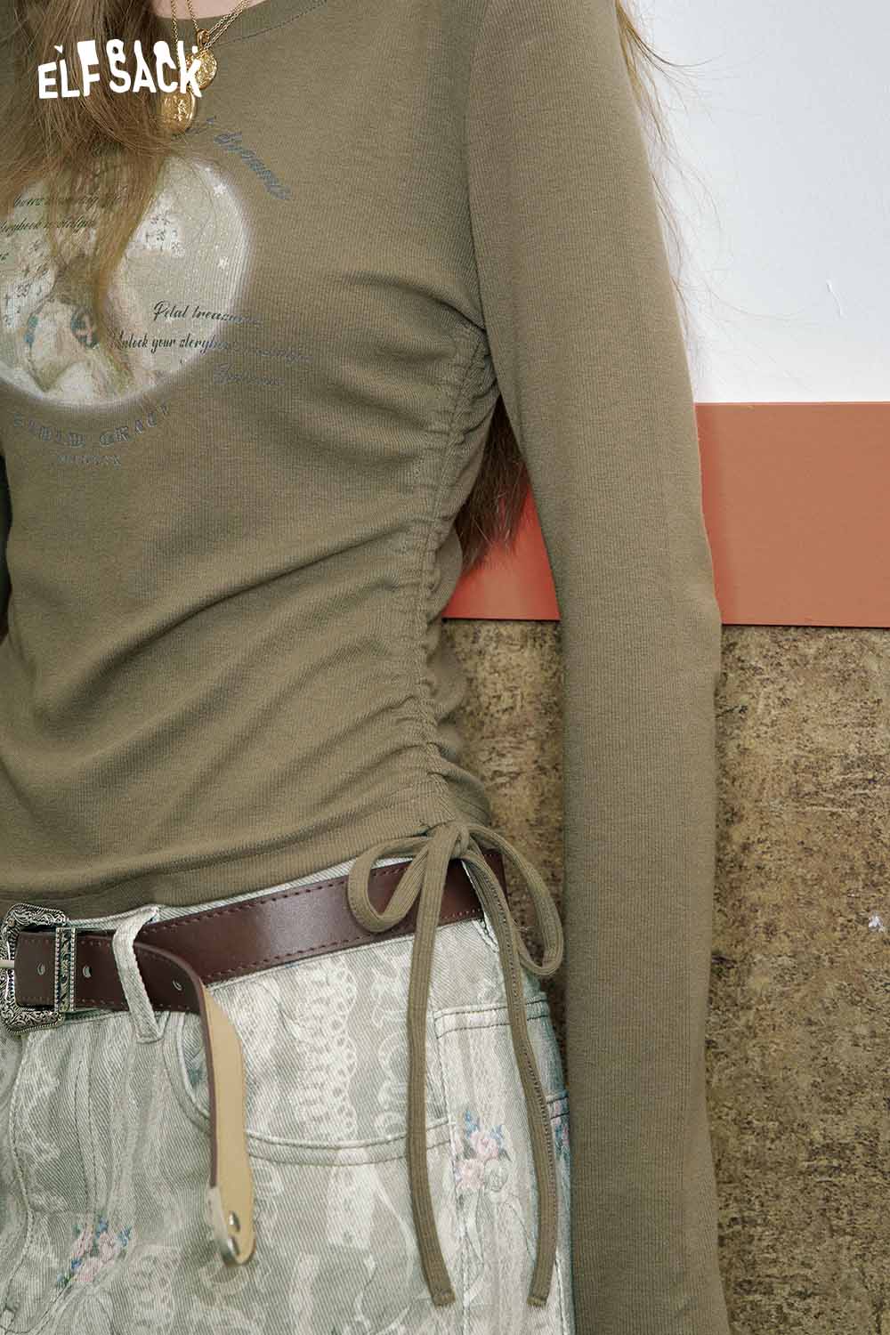 Cotton Blend Cartoon Stitch Detail Adjustable Drawcord Sleeves Fitted Tee