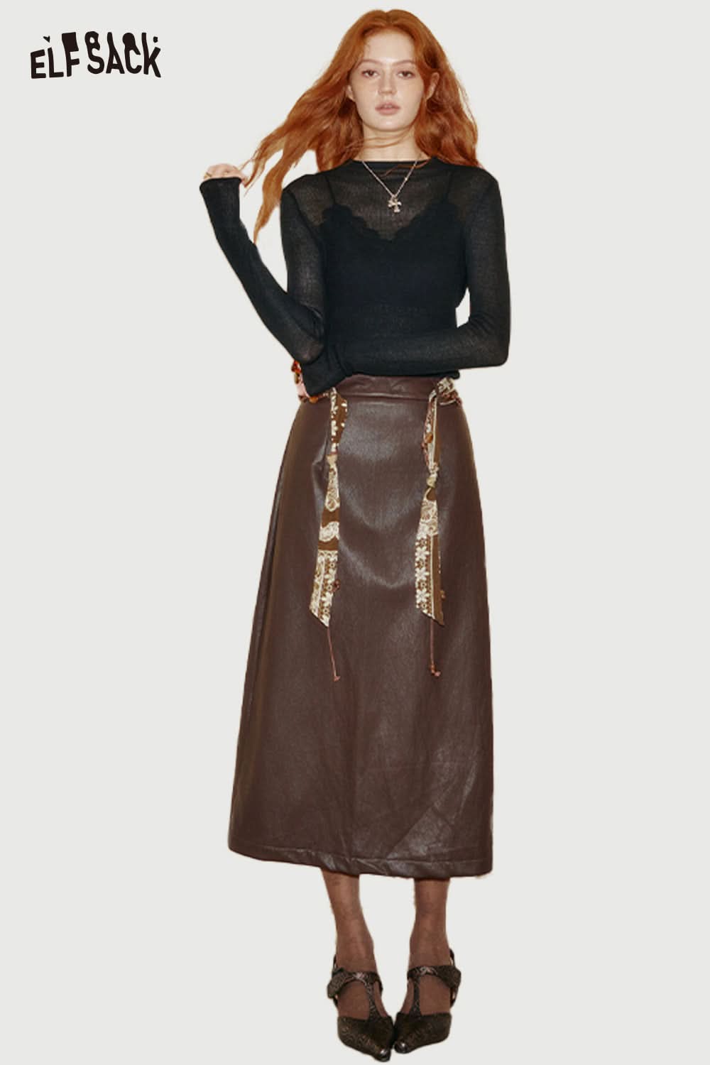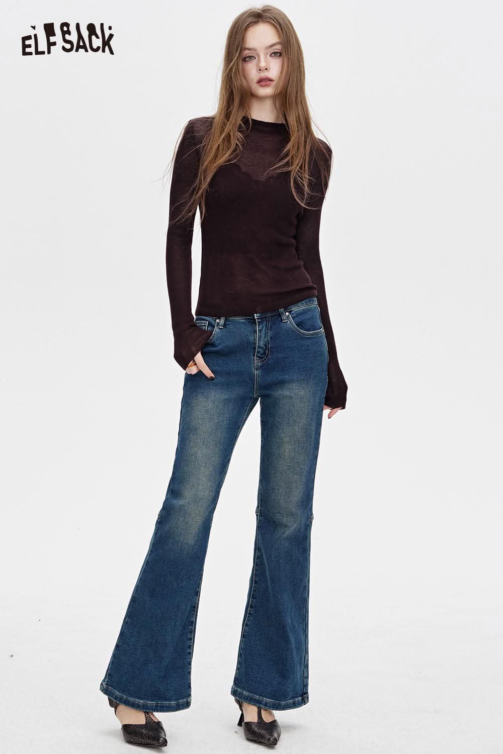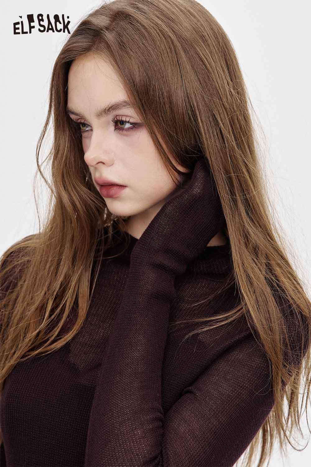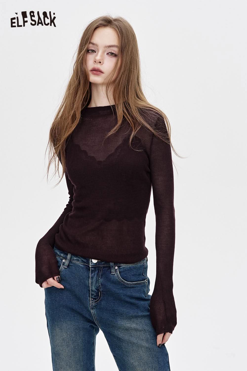Viscose Blend Semi-Sheer Fabric Relaxed Fit Base Layer Knit Top