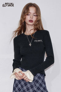Cashmere Blend Slim Fit Lace Panel Insets Knit Top
