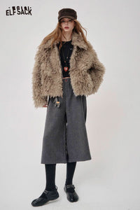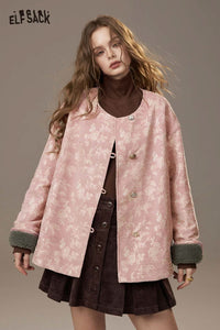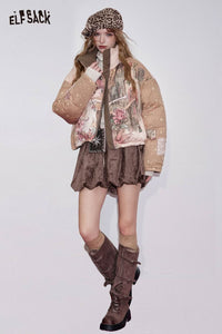Soft Back Graphic Plush Lapel Short Leather Jacket