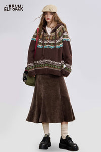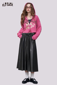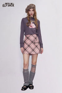 Soft Graphic Sweatshirt Solid Half Skirt Set