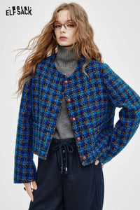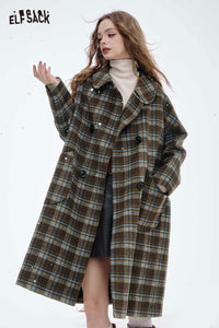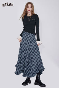 Wool Blend Fabric Contrast Plaid Pattern A-Line Midi Skirt