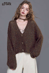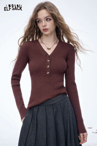 Soft Classic Slim Fit Gold Button V Neck Layering Knit Sweater