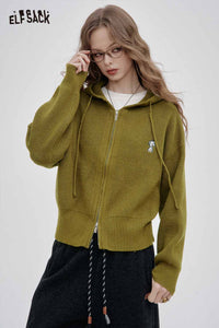 Soft Double Zip Animal Graphic Cropped Knit Sweater