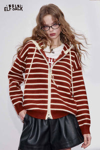 Breathable Striped Zip-up Hooded Knit Cardigan