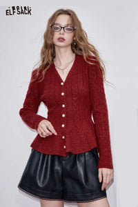 Soft Diamond Line Two Tone V Neck Long Sleeve Sweater