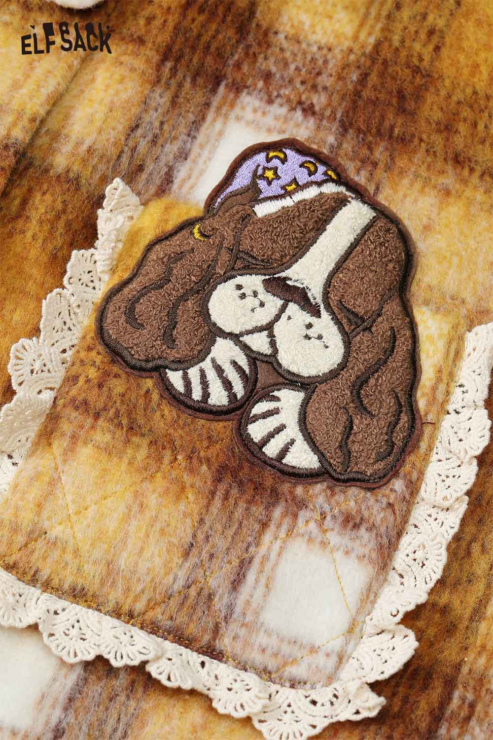 Soft Casual Stripe Dog Graphic Single Breasted Stand Collar Coat