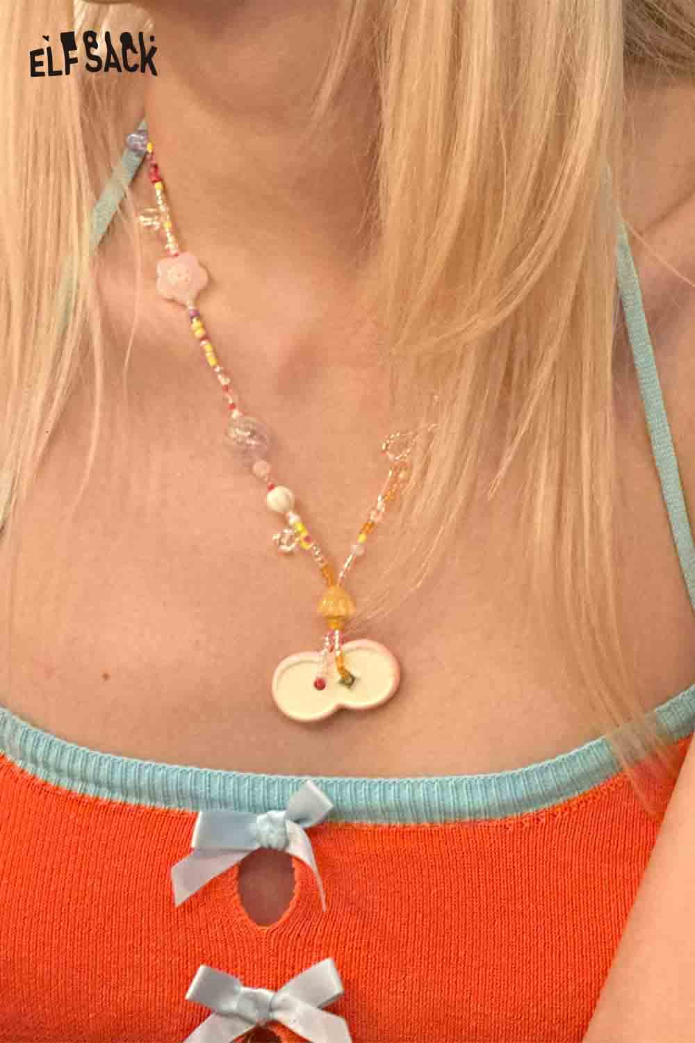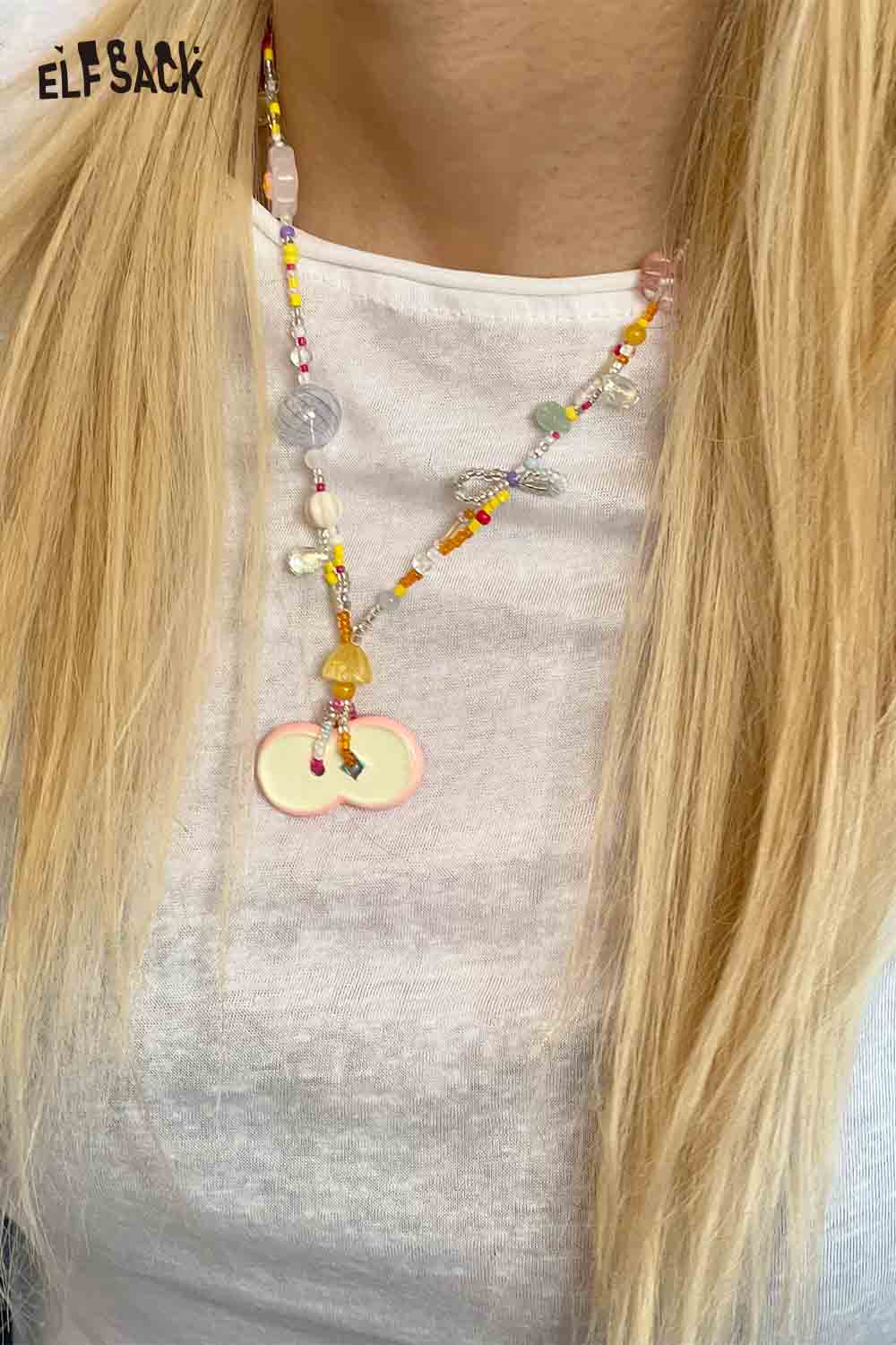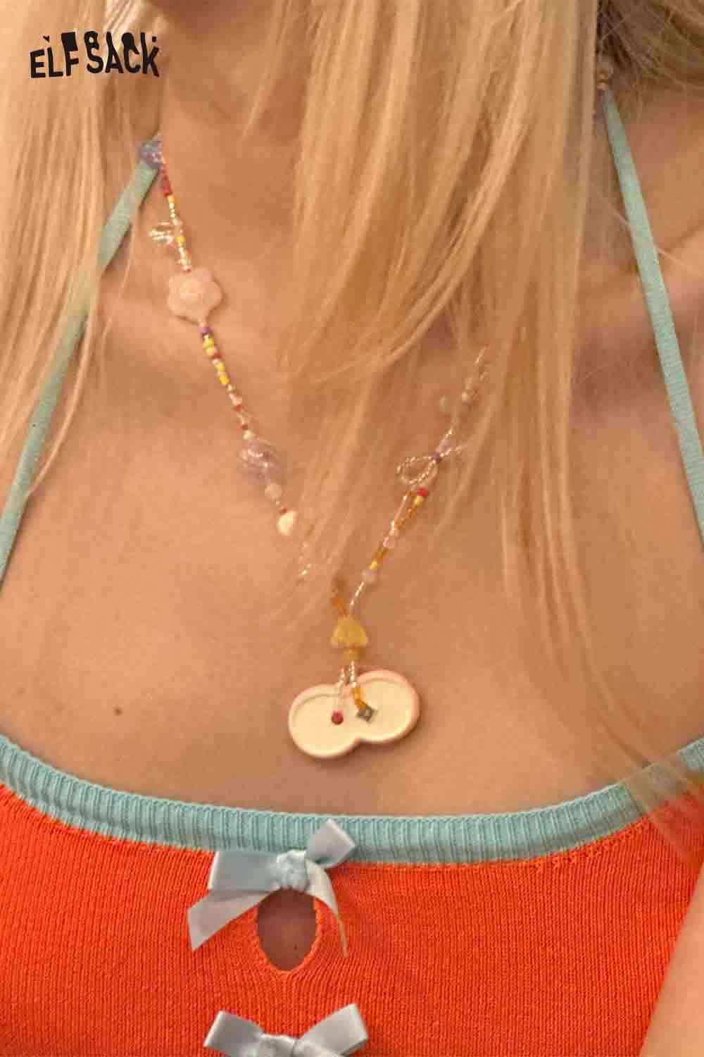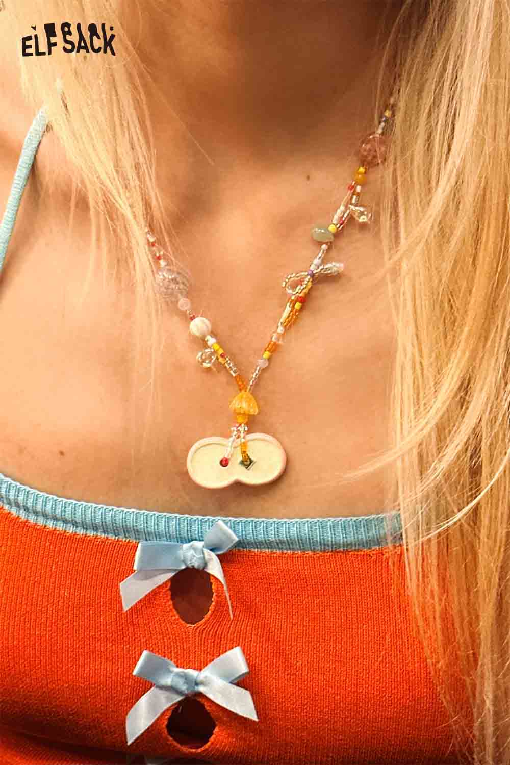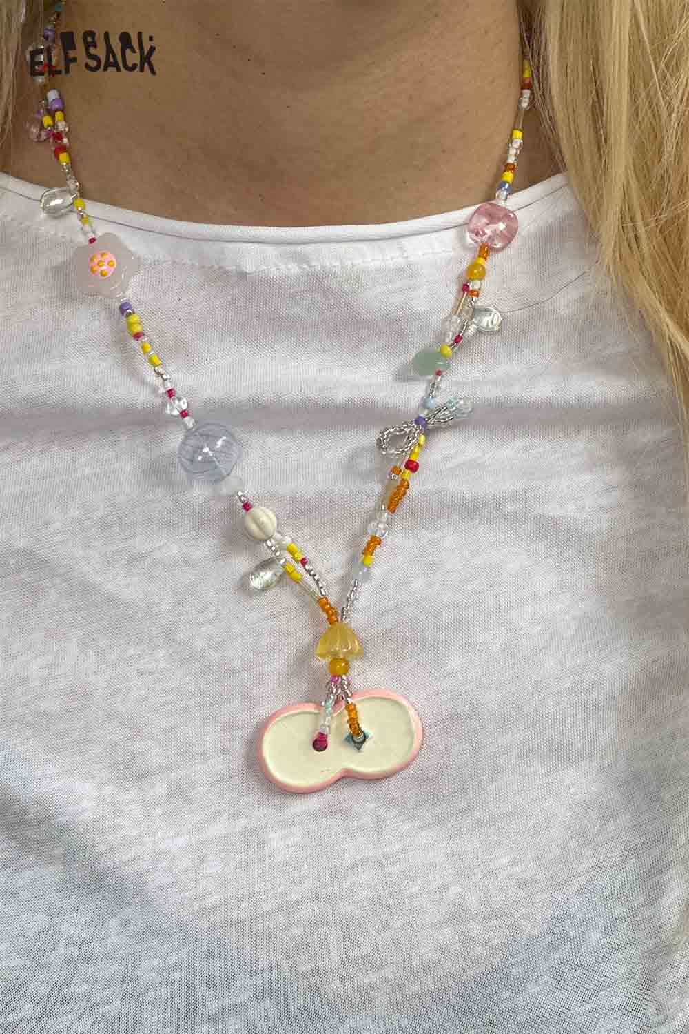 Dopamine Beaded Apple Pendant Fashion Sweet Collarbone Chain