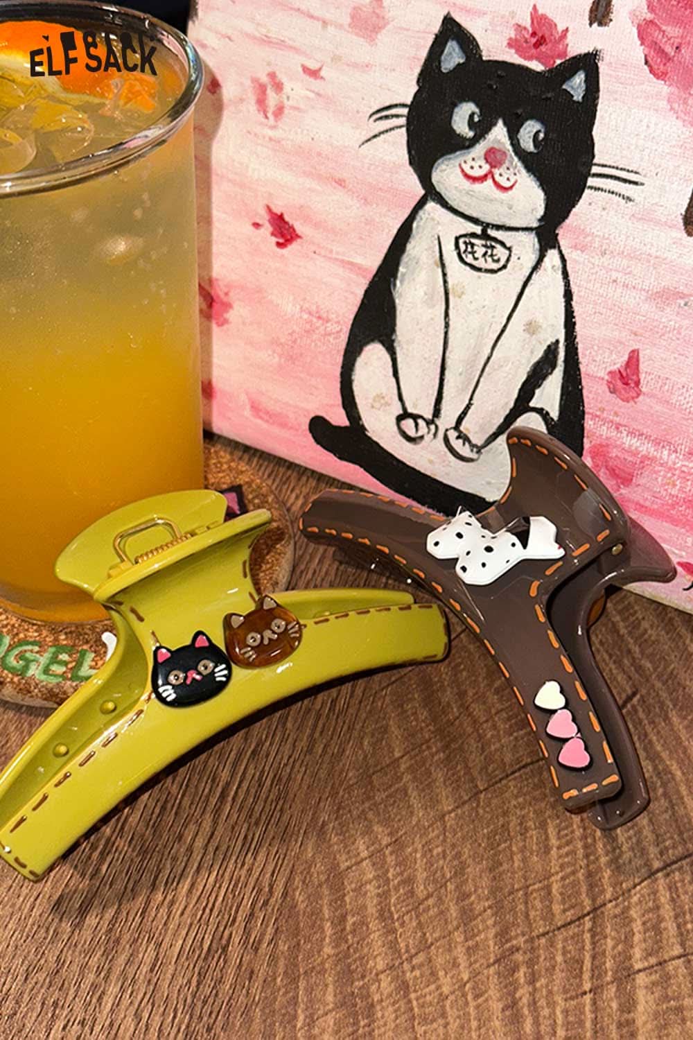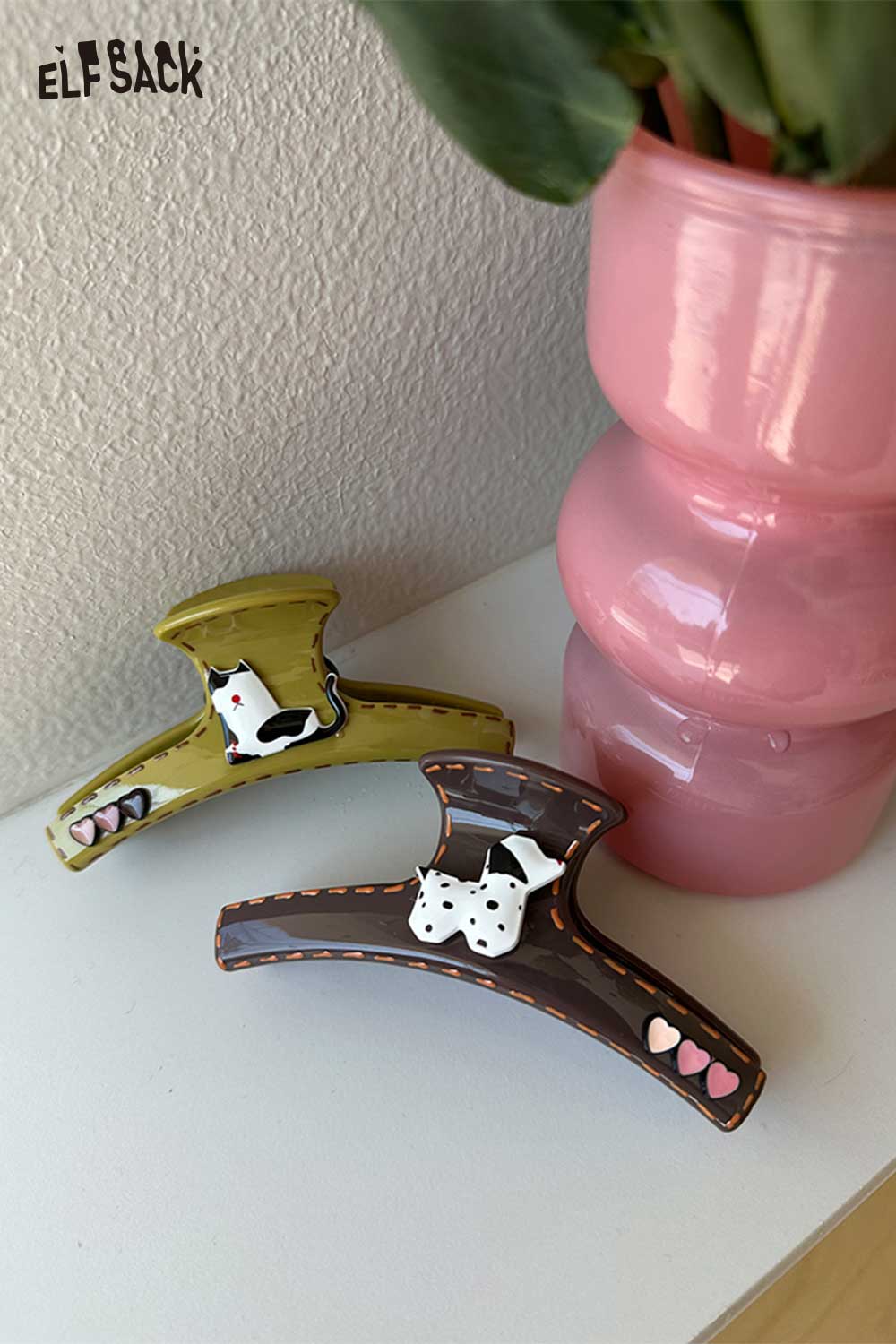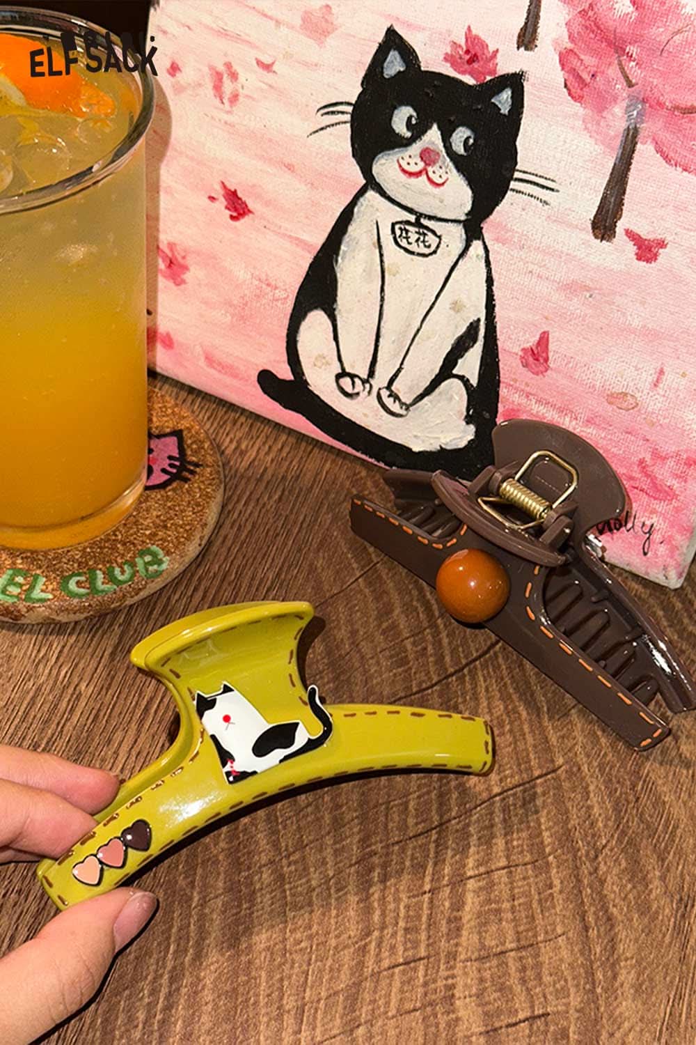 Acrylic Embossed Kitty Print Outlined Playful Hair Claw