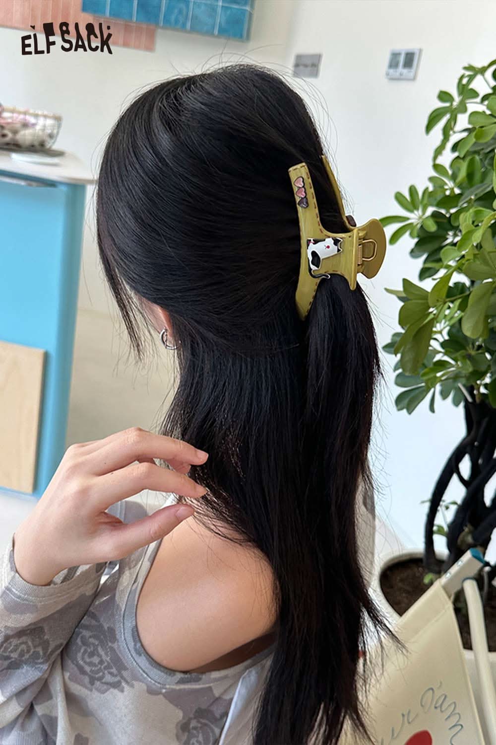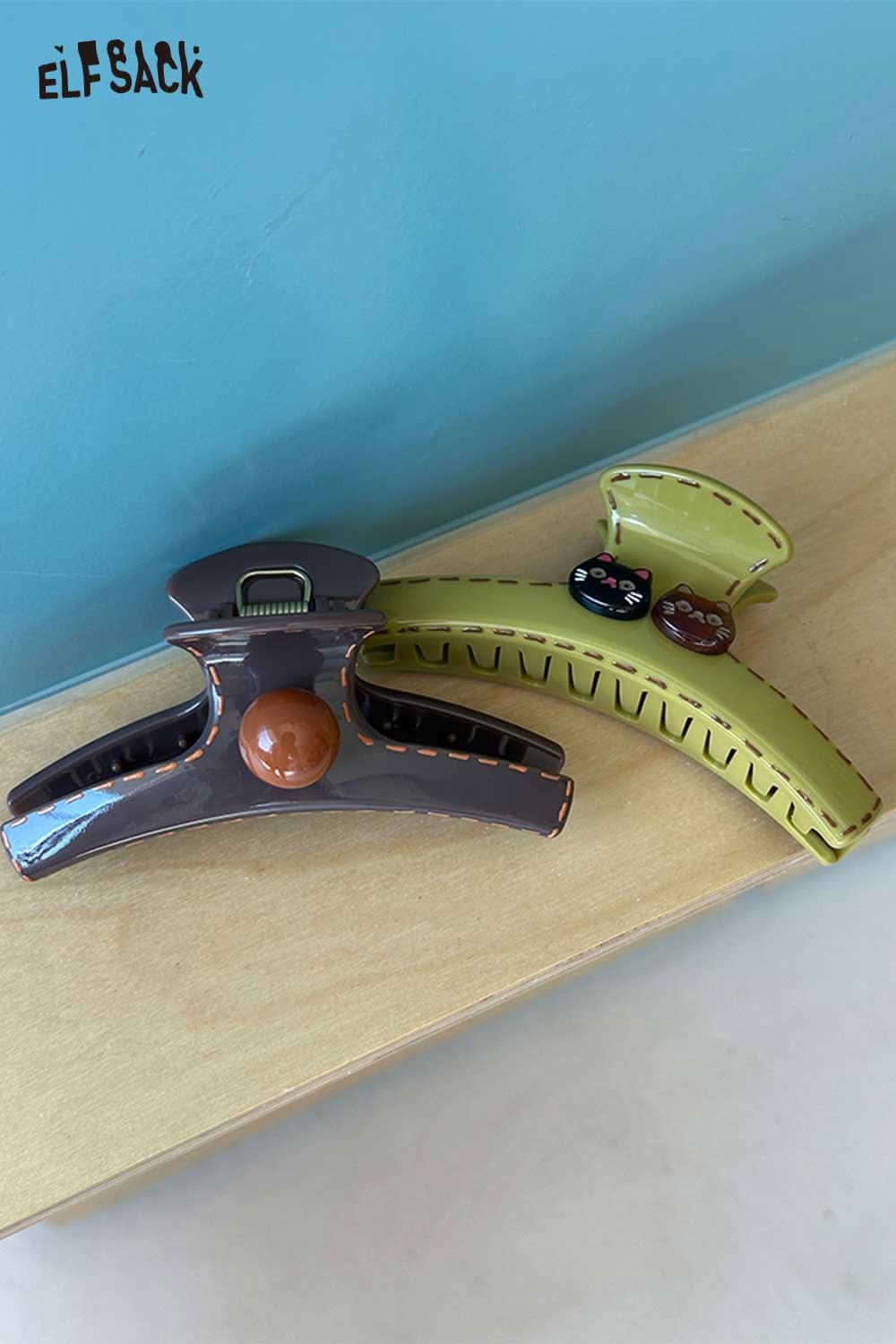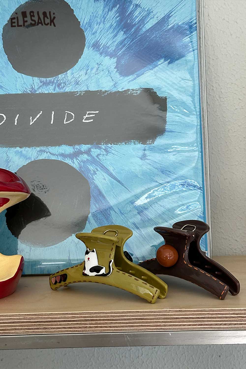 Acrylic Embossed Kitty Print Outlined Playful Hair Claw